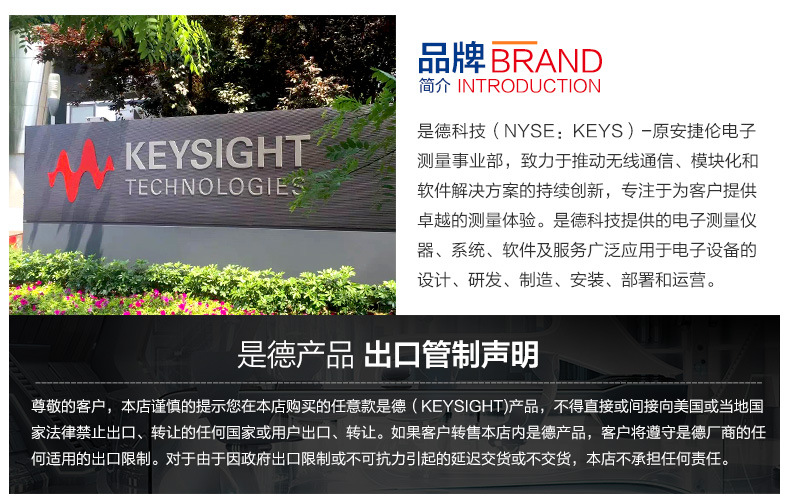 温馨提示:由于是德科技产品为进口仪器产品,精密仪器的特殊性,商品包装都是对应仪器的唯一包装,经过特殊封装工艺封装,商品一旦开箱即影响二次销售,将不再支持7天无理由退换货,请确认产品配置后再开箱(仅主机硬件产品在7天无理由退换货范围内。探头,附件,软件,定制等均不在其范围。)