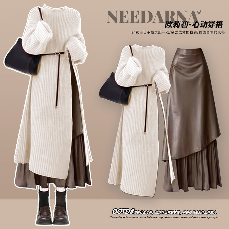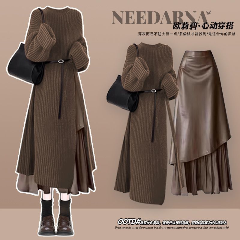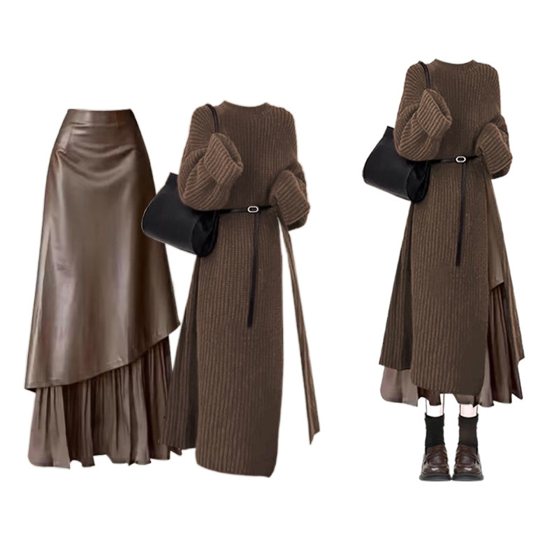 Коричневая юбка-свитер + коричневая юбка-комплект из двух предметов; Абрикосовая юбка-свитер + коричневая юбка, комплект из двух предметов; Коричневый свитер, юбка, цельная.; Абрикосовая юбка-свитер, цельная; Коричневая юбка цельная.; 6591 белая верхняя цельная часть; Белый верх, цельная часть