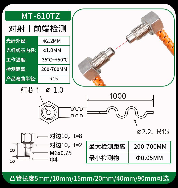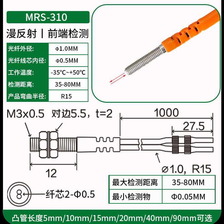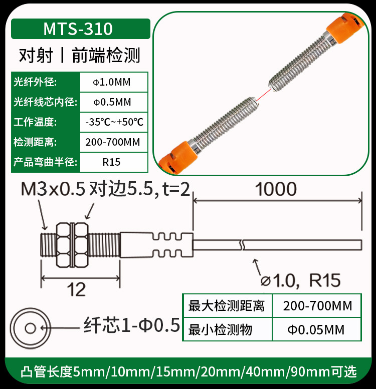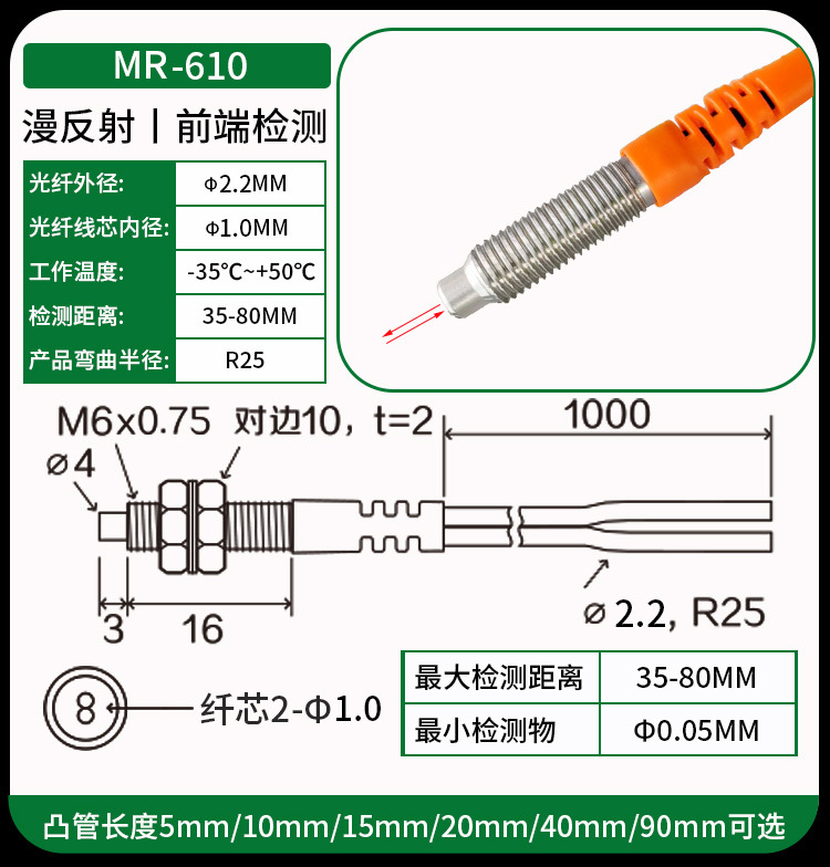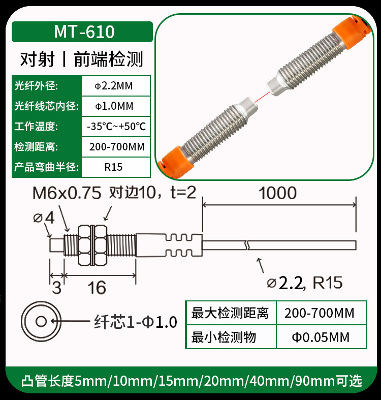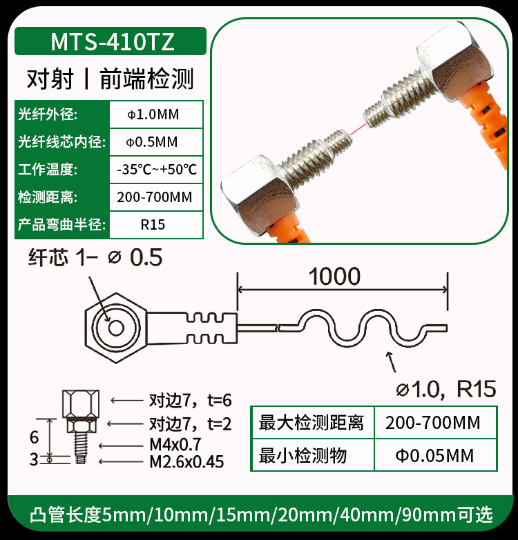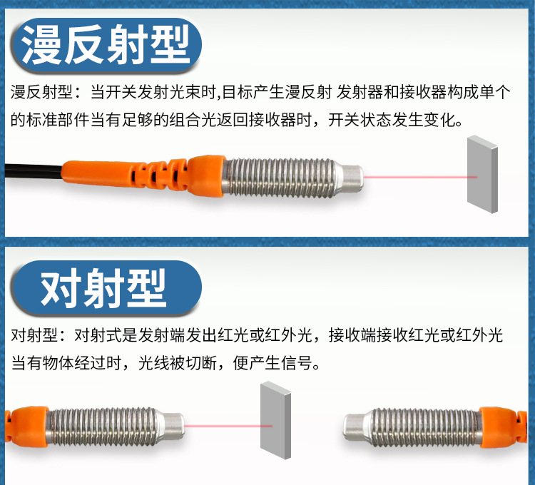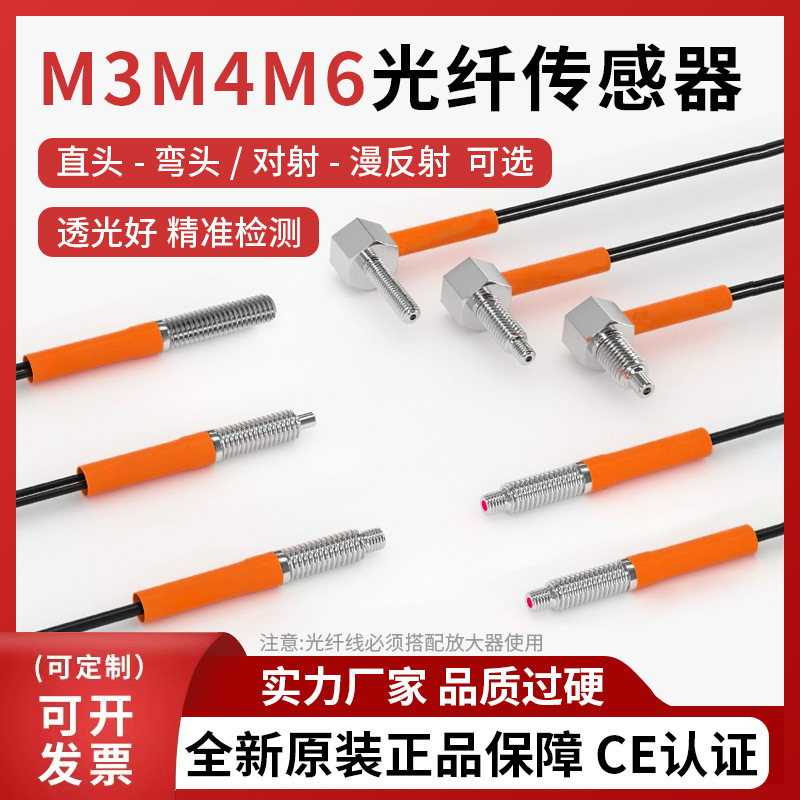 M3M4M6 оптоволоконный датчик диффузного отражения, игольчатого типа с проходящим через луч светом, с выпуклым трубчатым оптоволоконным кабелем, усилителем высокой точности.
