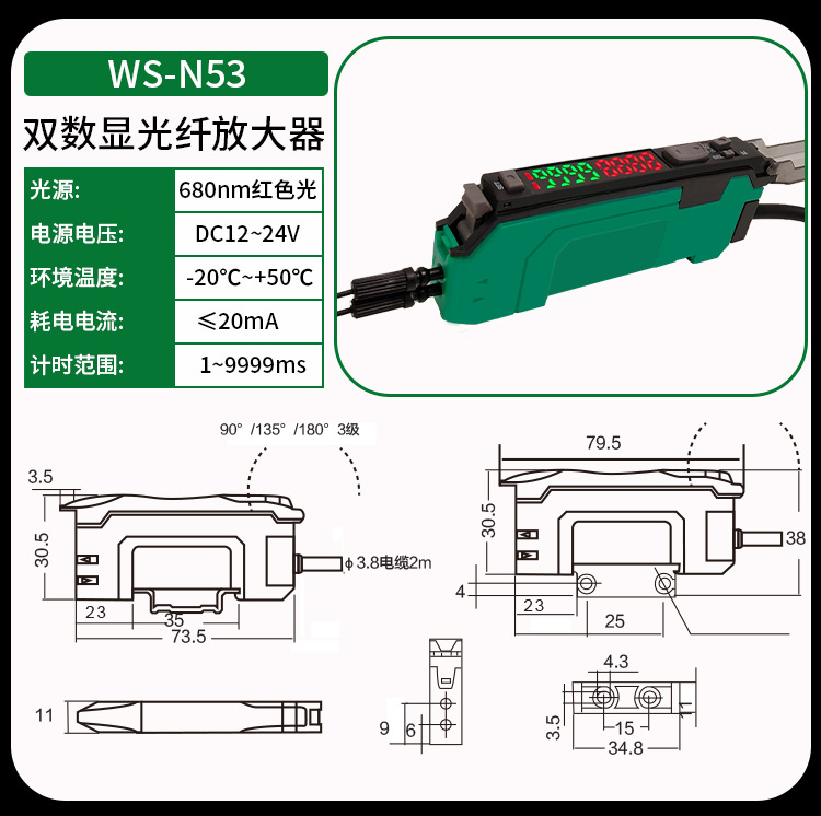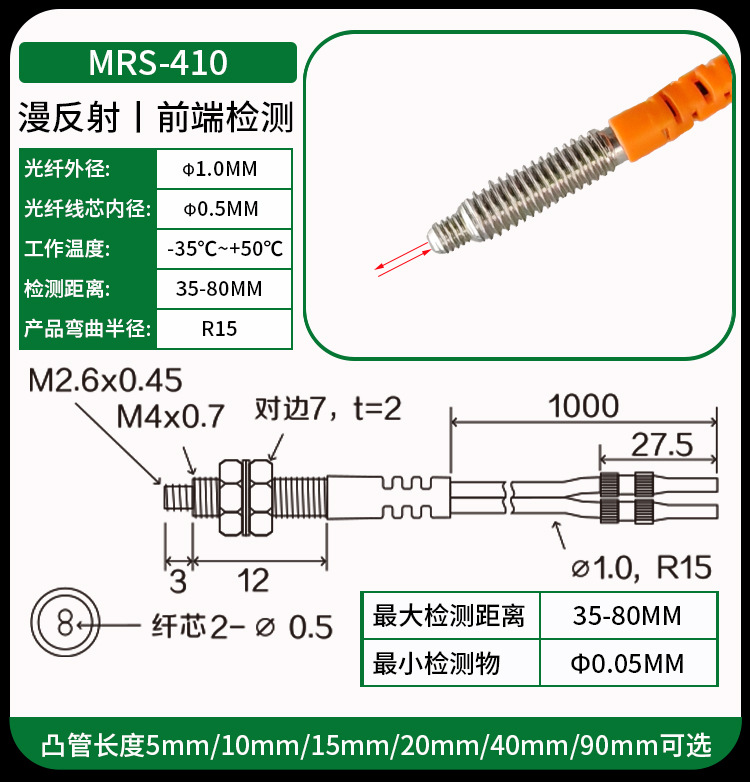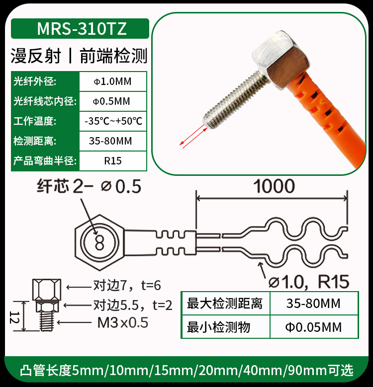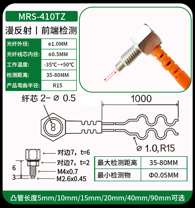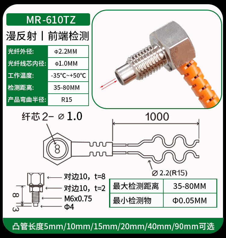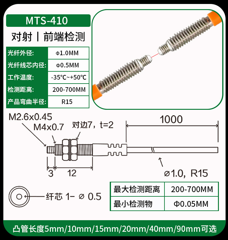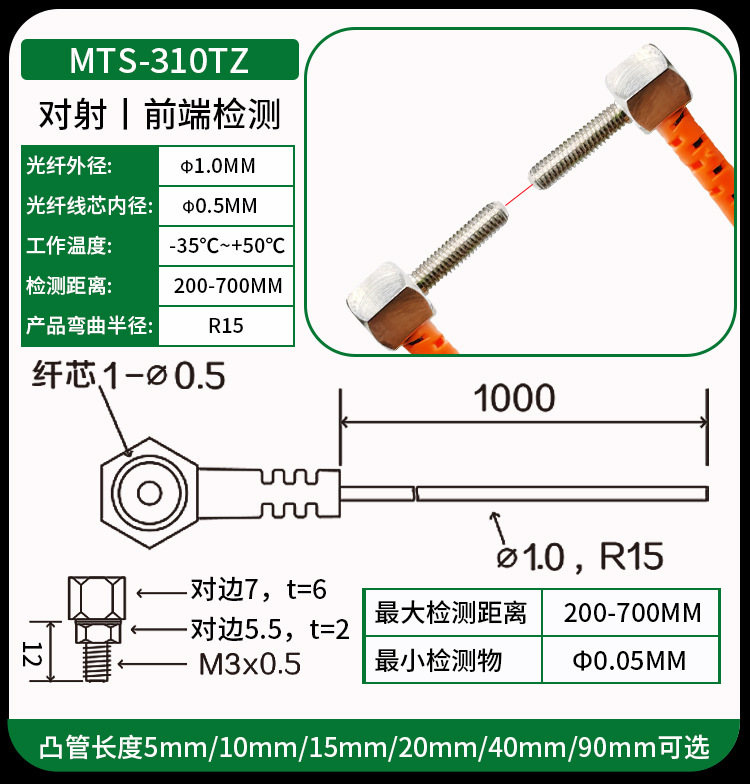 M3M4M6 оптоволоконный датчик диффузного отражения, игольчатого типа с проходящим через луч светом, с выпуклым трубчатым оптоволоконным кабелем, усилителем высокой точности.