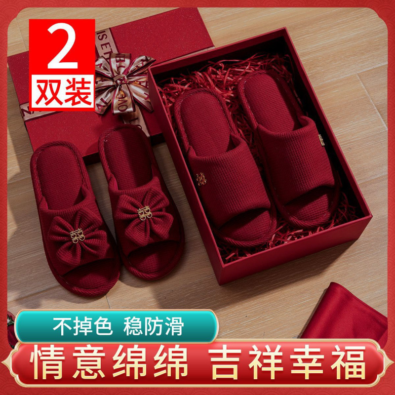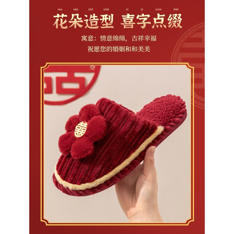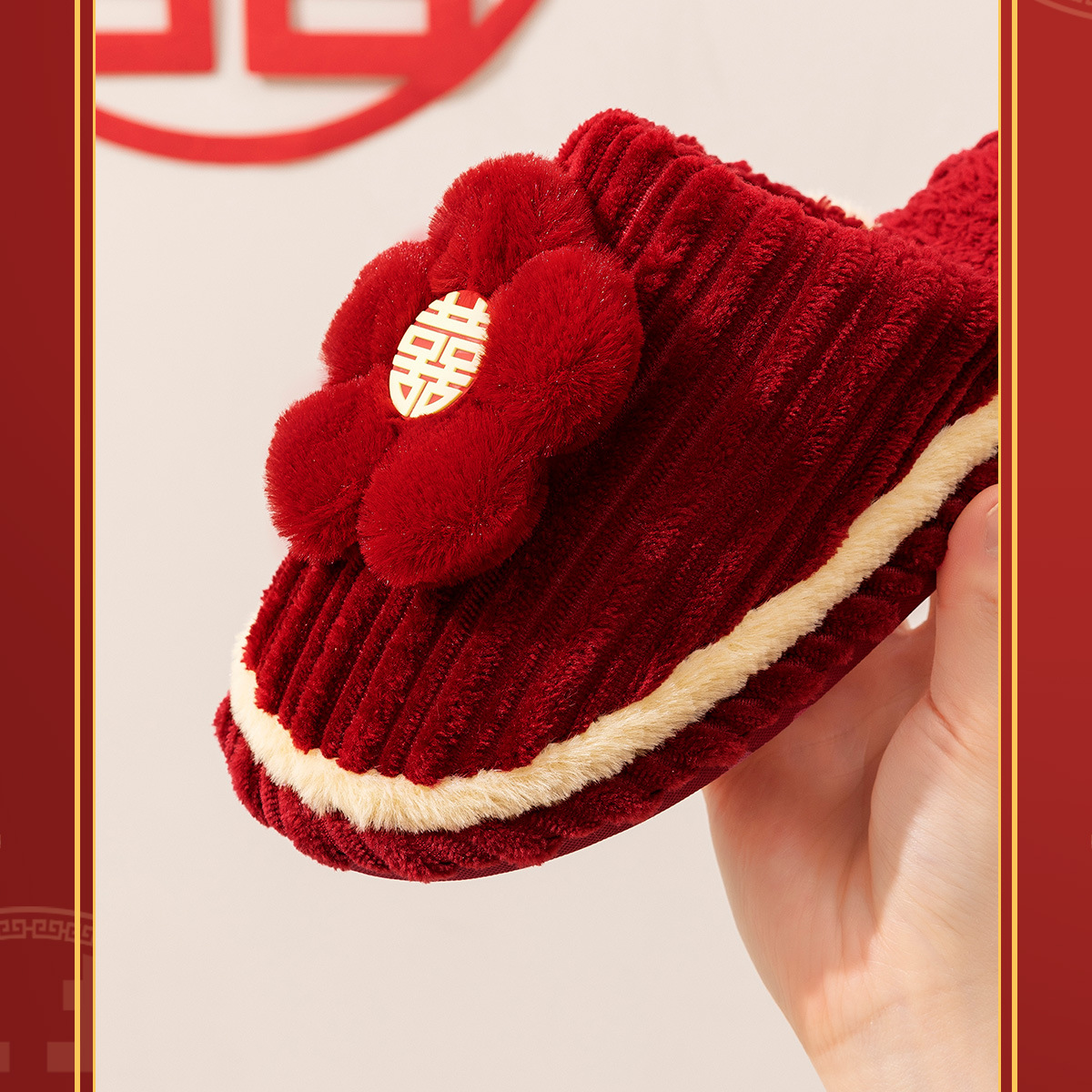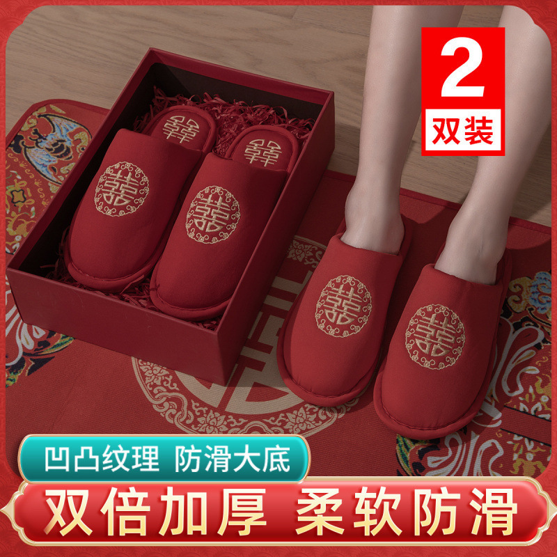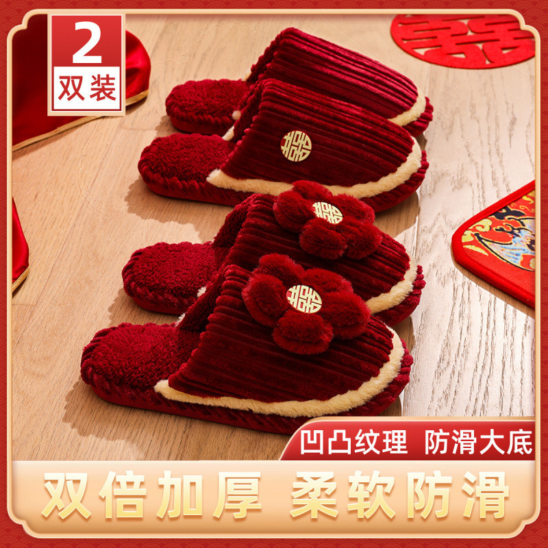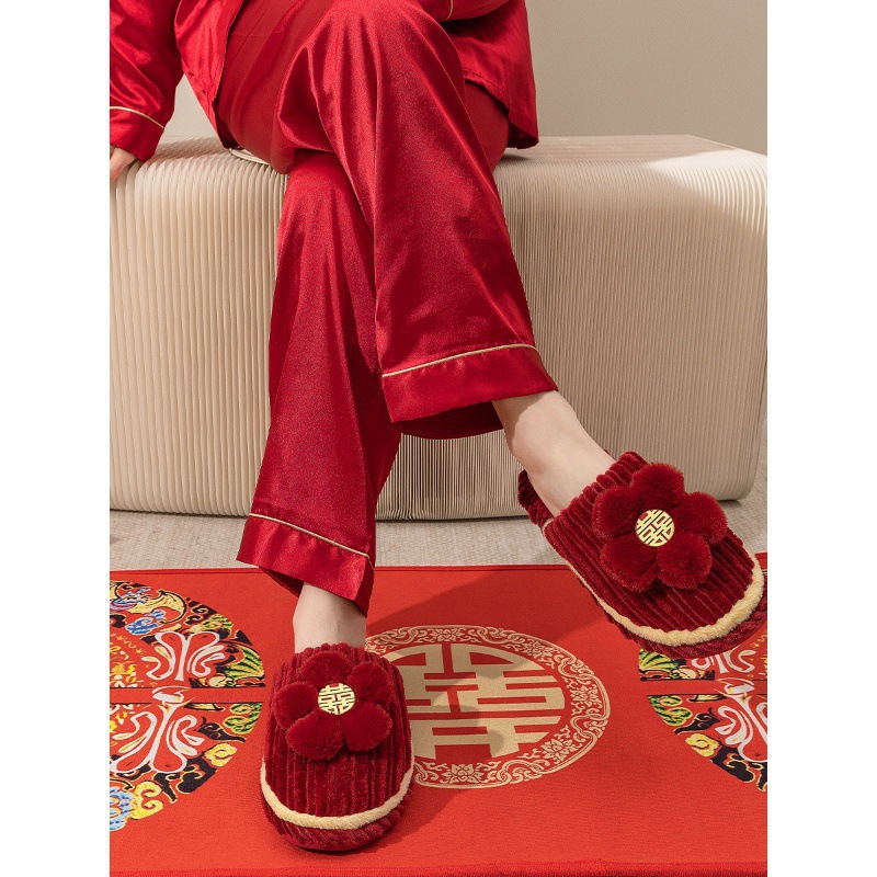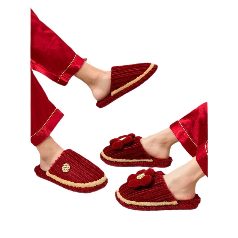 Хлопчатобумажные тапочки, чтобы жениться на паре женщин зимой новый праздничный приданый новобрачные пижамы пара красные свадебные туфли зимой