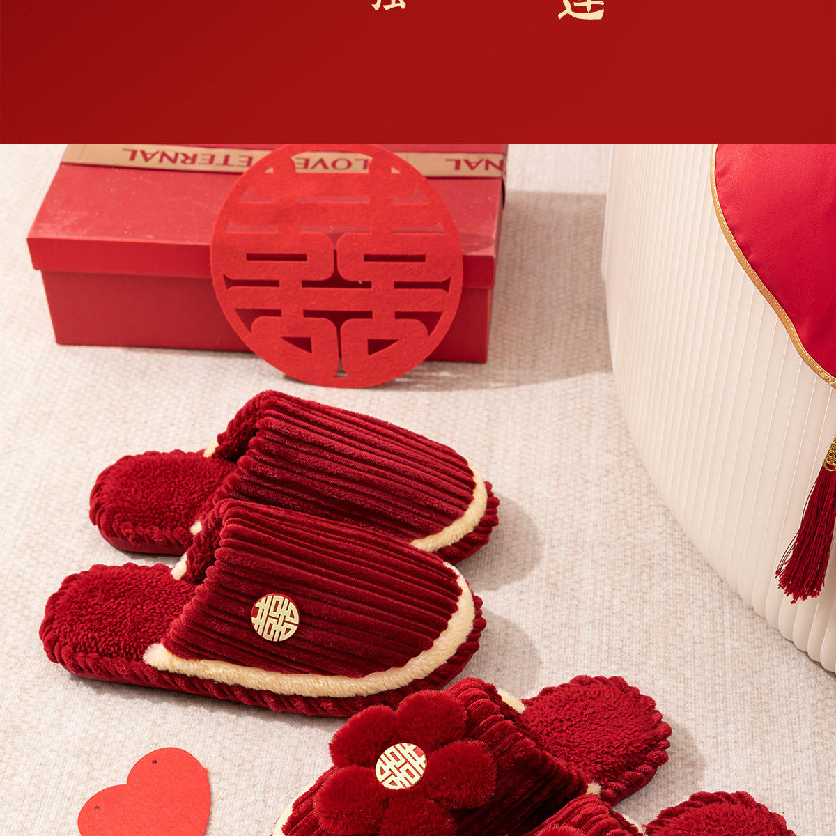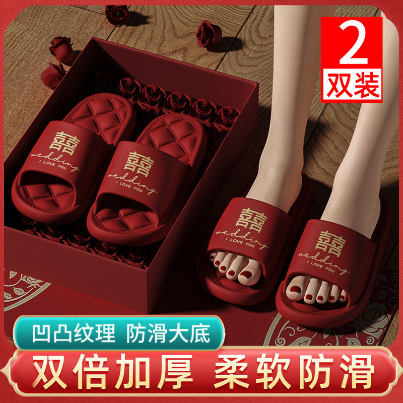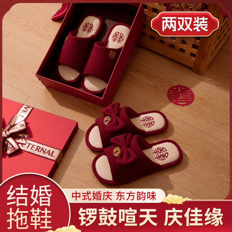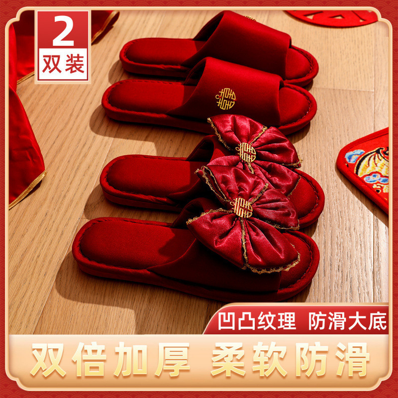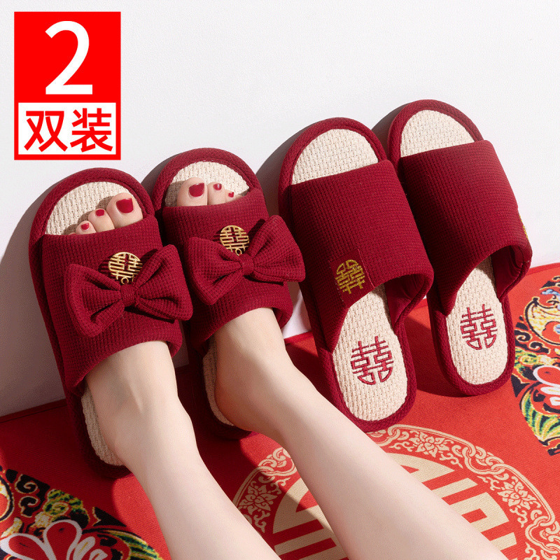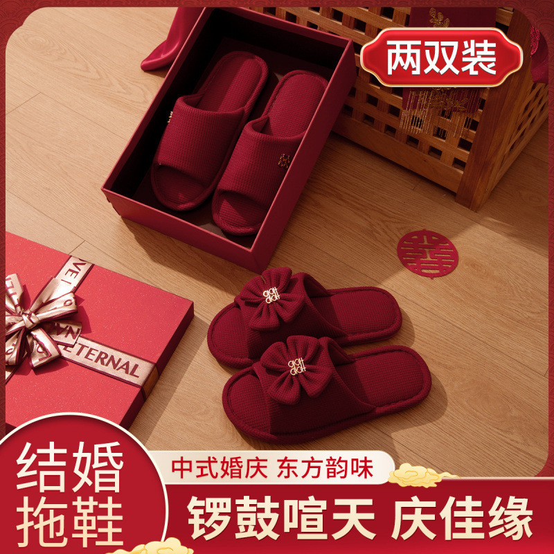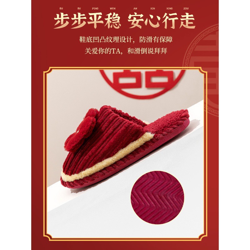 Хлопчатобумажные тапочки, чтобы жениться на паре женщин зимой новый праздничный приданый новобрачные пижамы пара красные свадебные туфли зимой