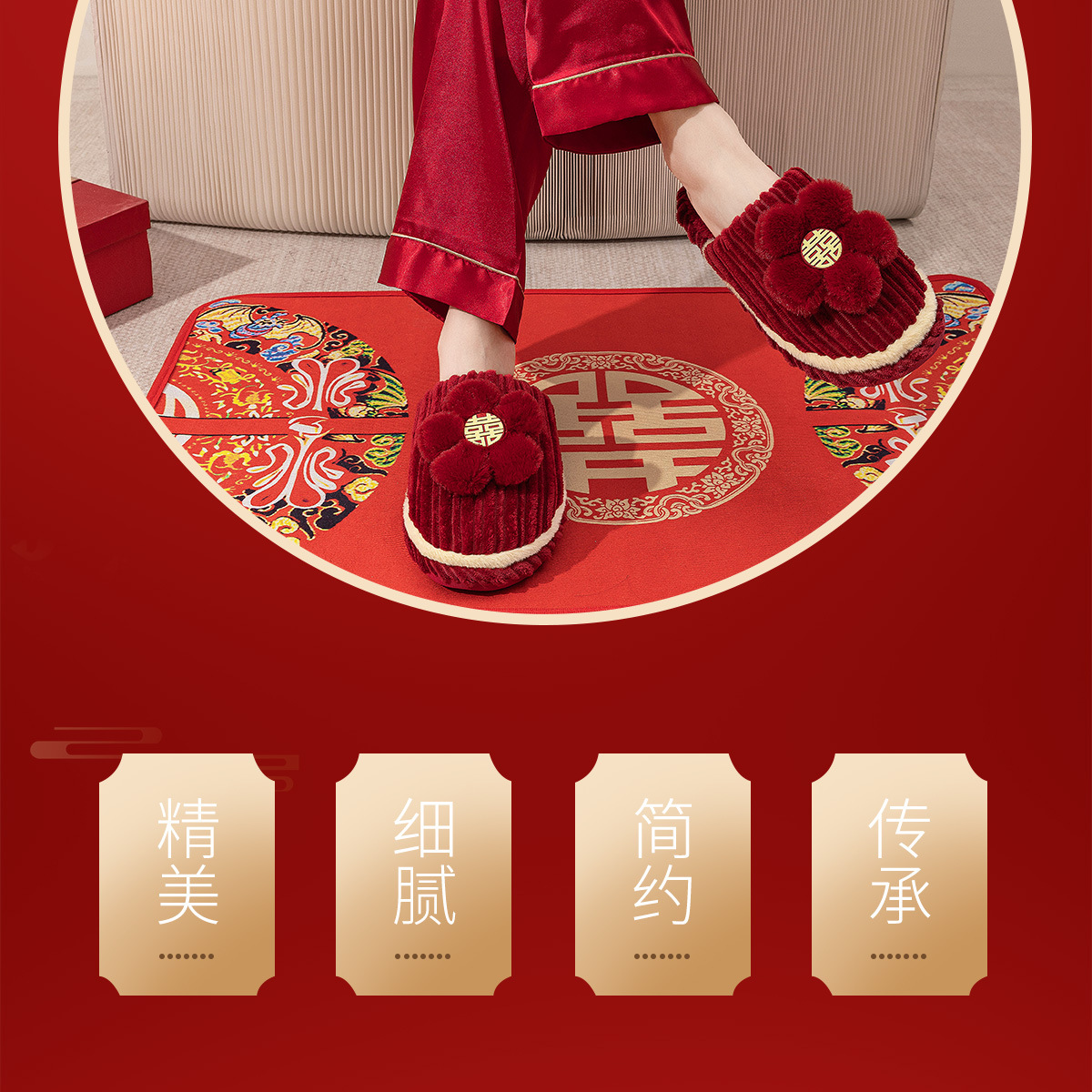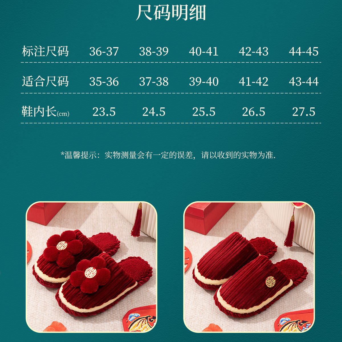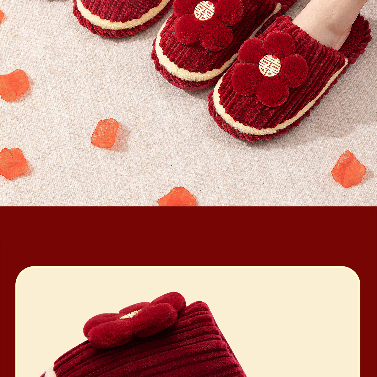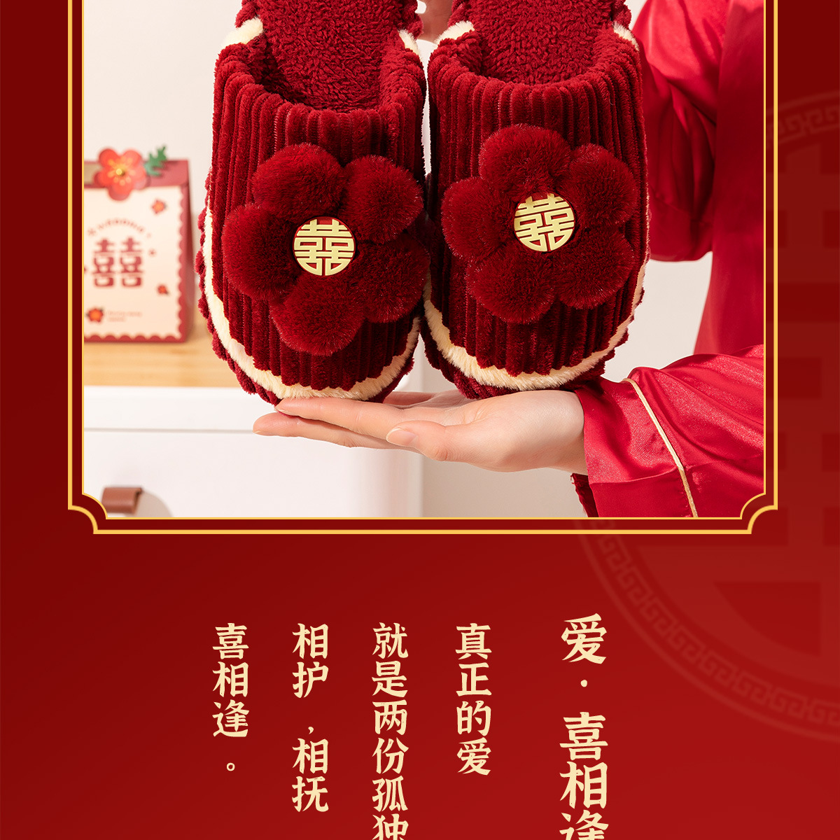 Хлопчатобумажные тапочки, чтобы жениться на паре женщин зимой новый праздничный приданый новобрачные пижамы пара красные свадебные туфли зимой