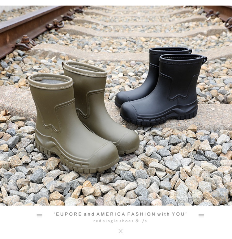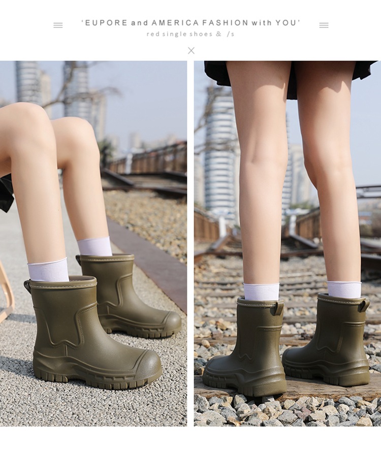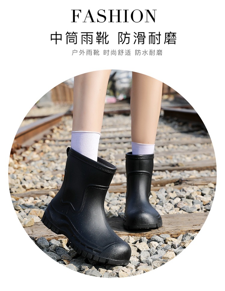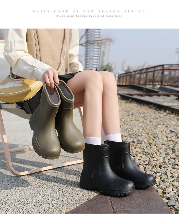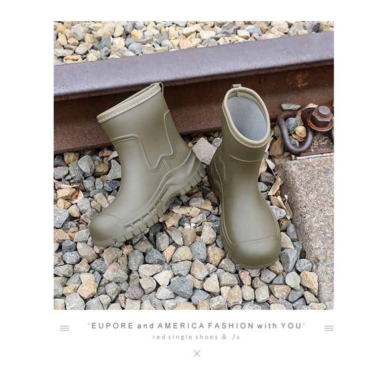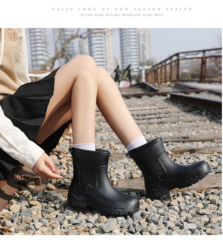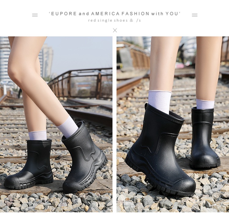 Трансграничные сапоги от дождя женские модные средние трубочки водонепроницаемые рукава нескользящие туфли с толстой подошвой износостойкие водяные сапоги для взрослых повседневные надеть сапоги от дождя