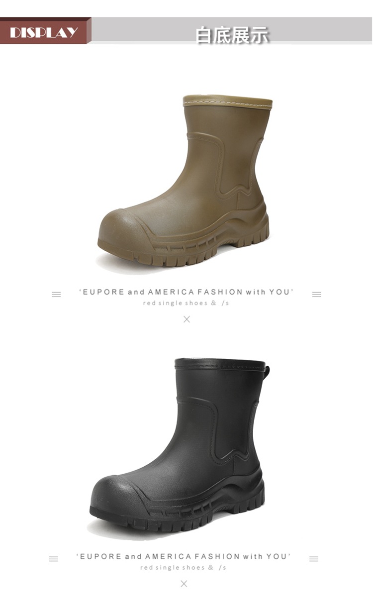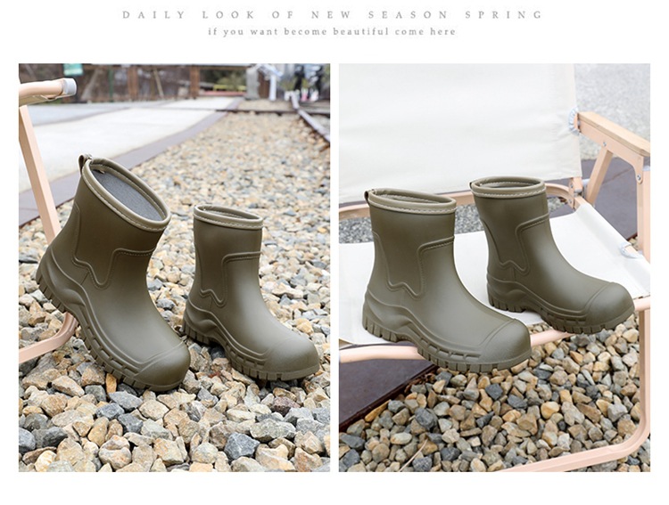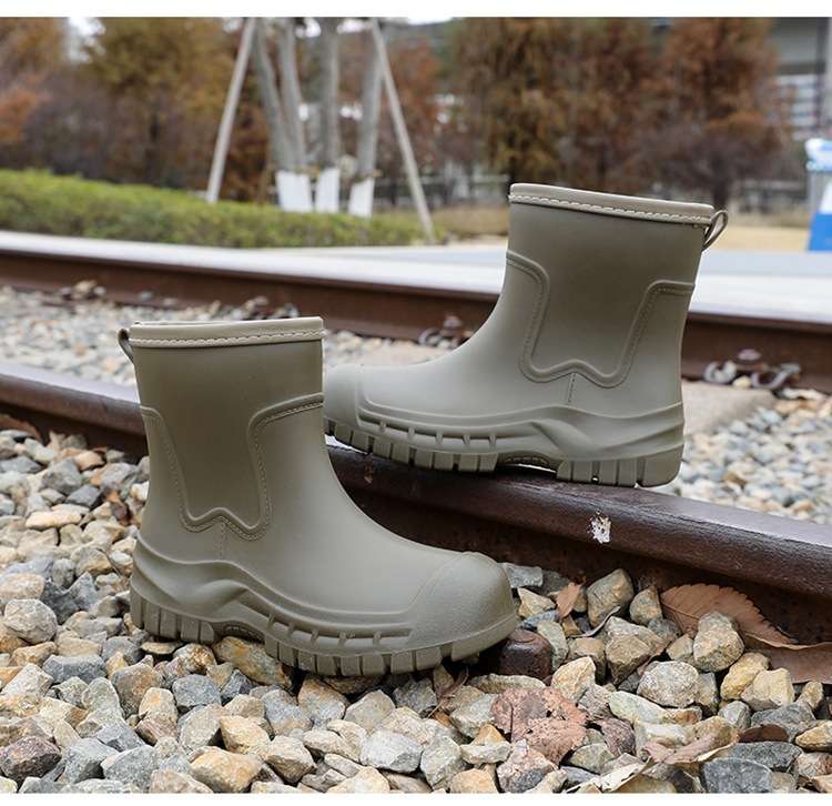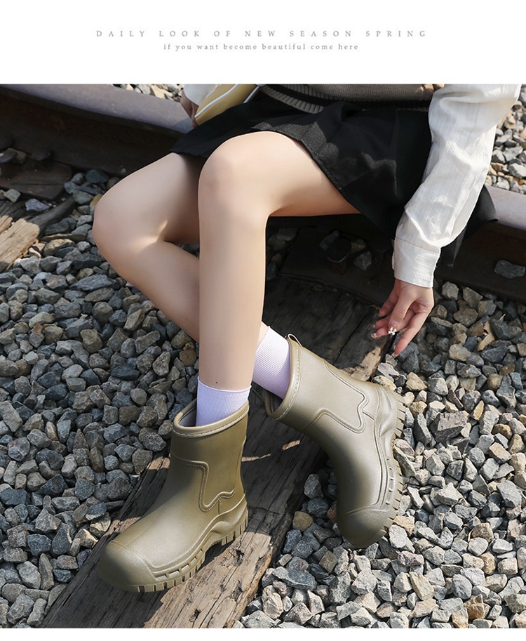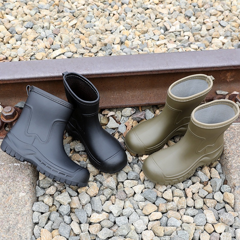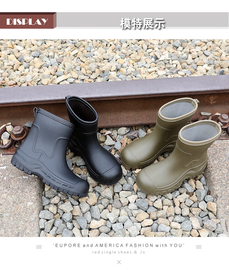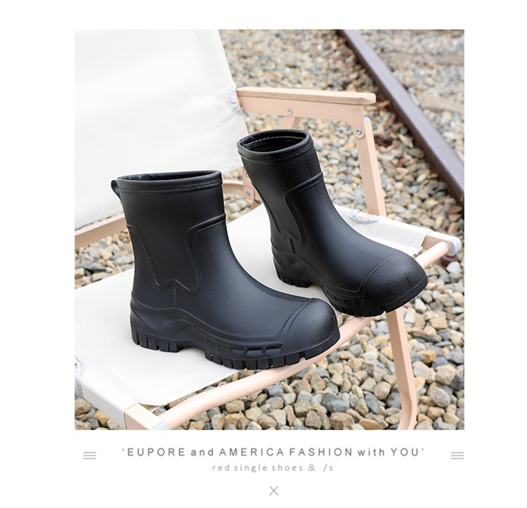 Трансграничные сапоги от дождя женские модные средние трубочки водонепроницаемые рукава нескользящие туфли с толстой подошвой износостойкие водяные сапоги для взрослых повседневные надеть сапоги от дождя