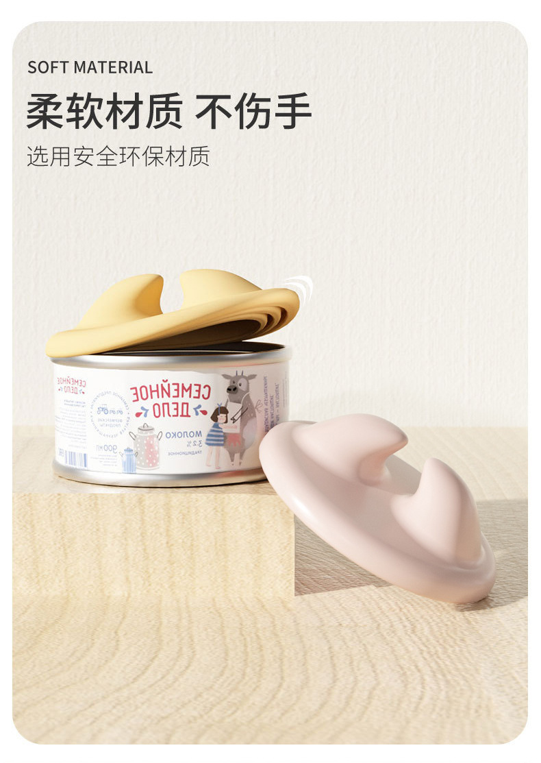 желтая консервированная ложка; розовая консервированная ложка; серая консервированная ложка; крышка желтой банки; розовая крышка банки; крышка серой банки
