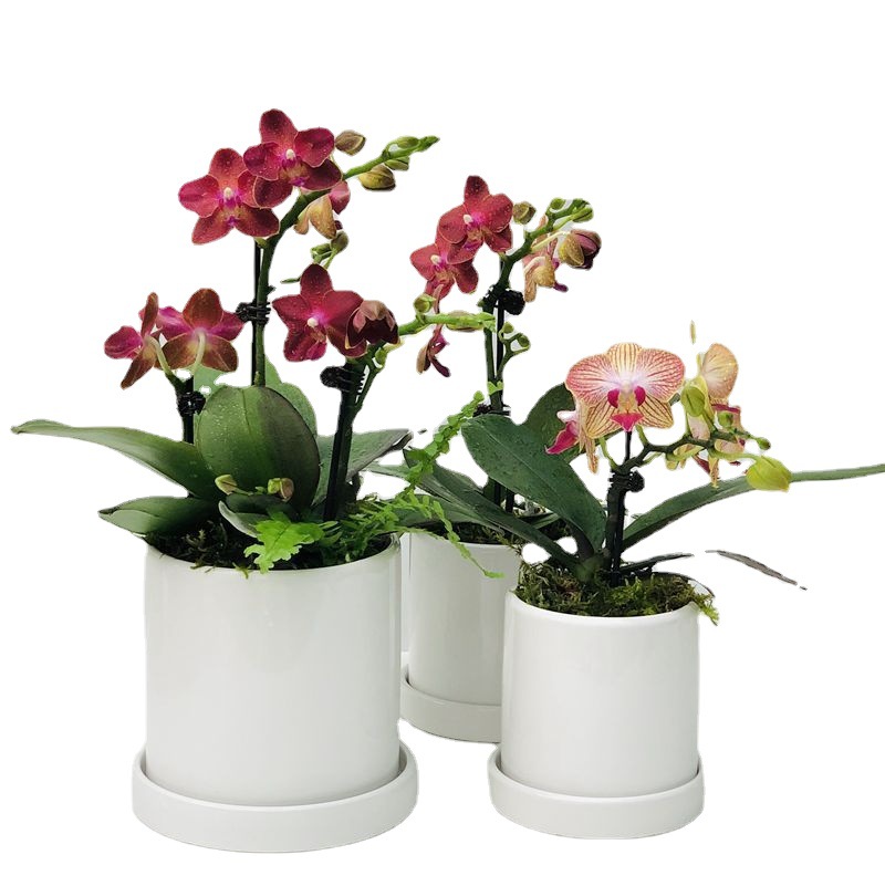 Фаленопсис в горшке, четырехсезонное растение с многолетним цветением, комнатное растение с зелеными листьями, простое в уходе.