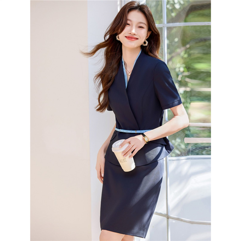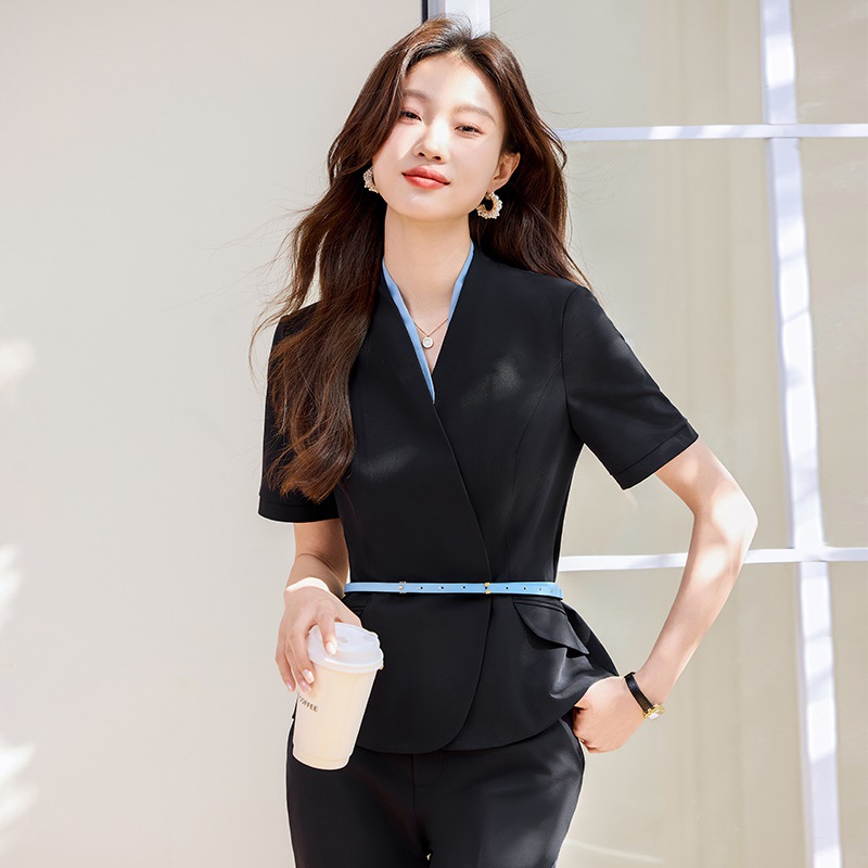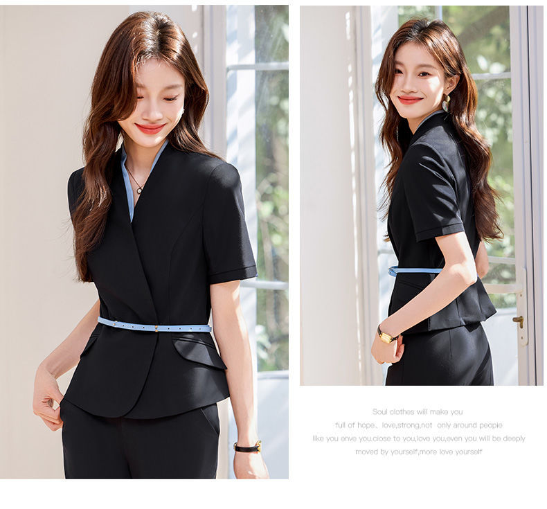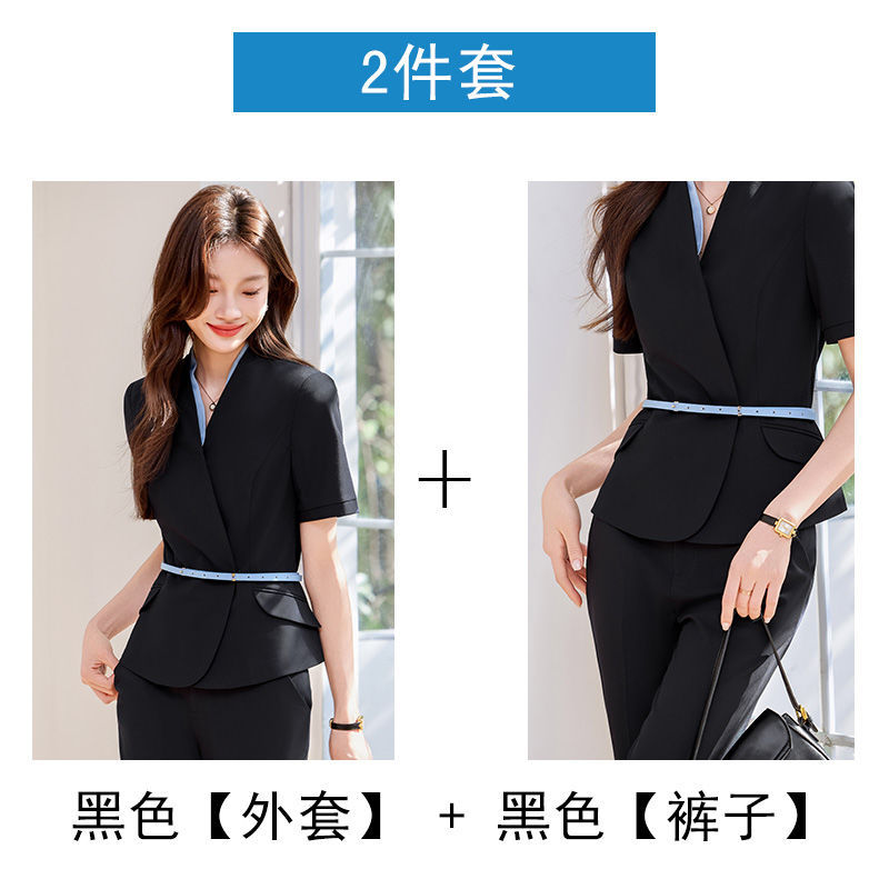 Черный костюм с короткими рукавами женский 2025 весна лето новый дизайн темпераментный профессиональный костюм костюм