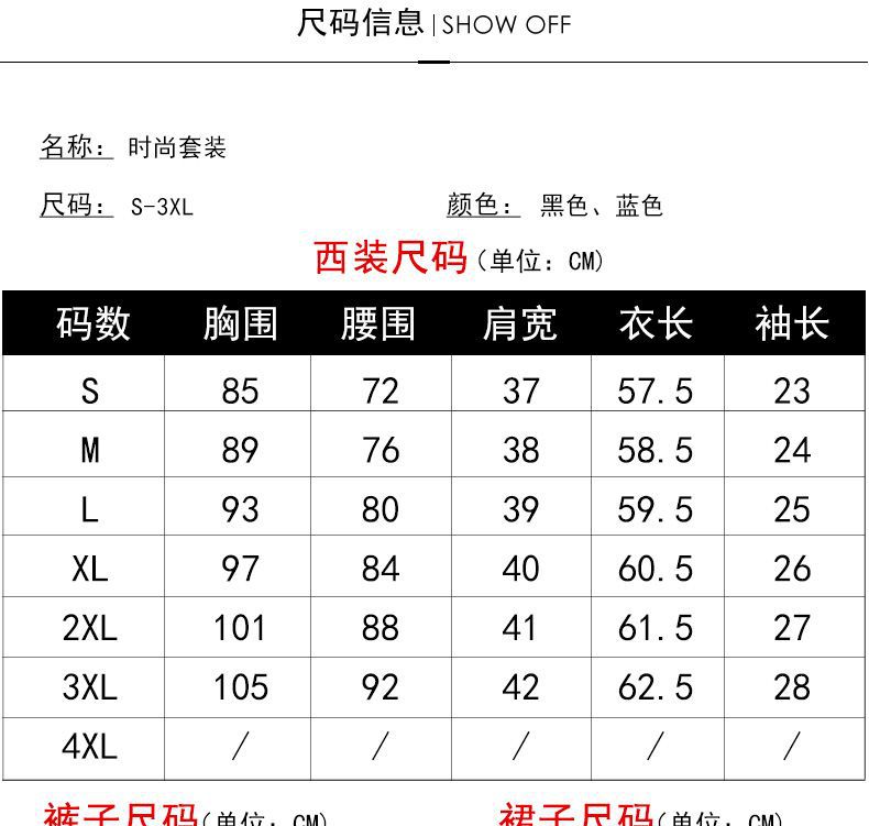 Черный костюм + пояс; Темно-синий костюм + пояс; Черный костюм + юбка + пояс; Темно-синий костюм + юбка + пояс; Черный костюм + брюки + пояс; Темно-синий костюм + брюки + пояс