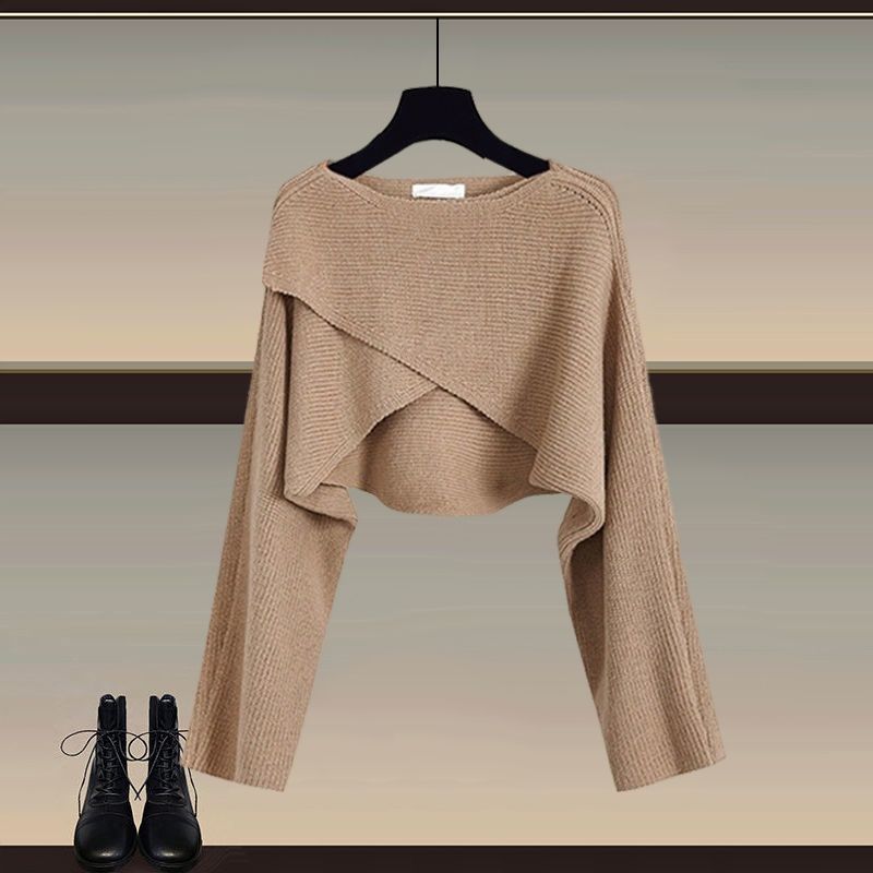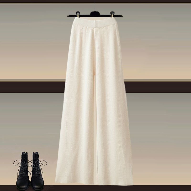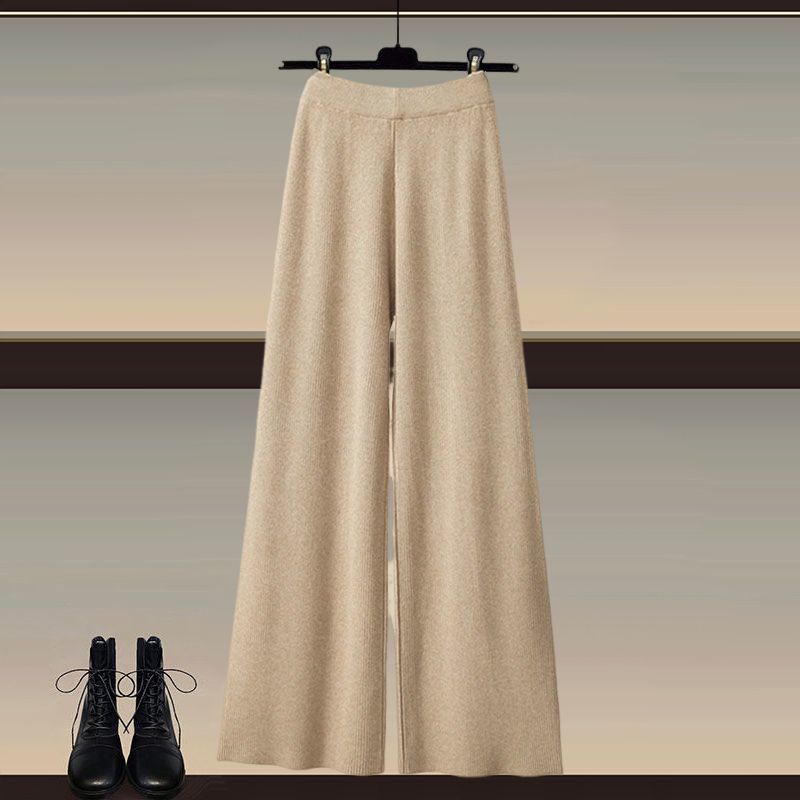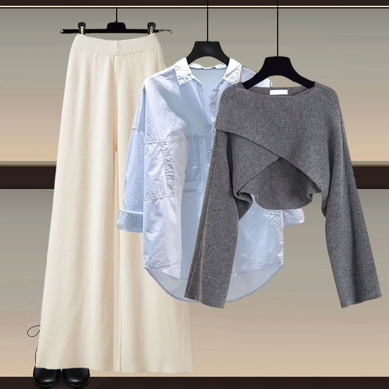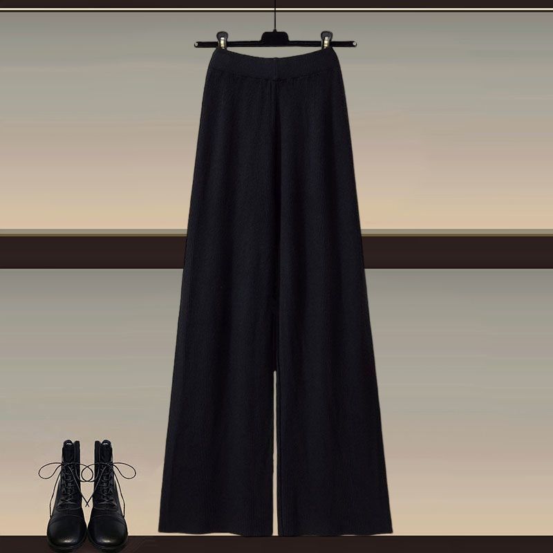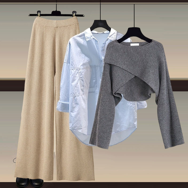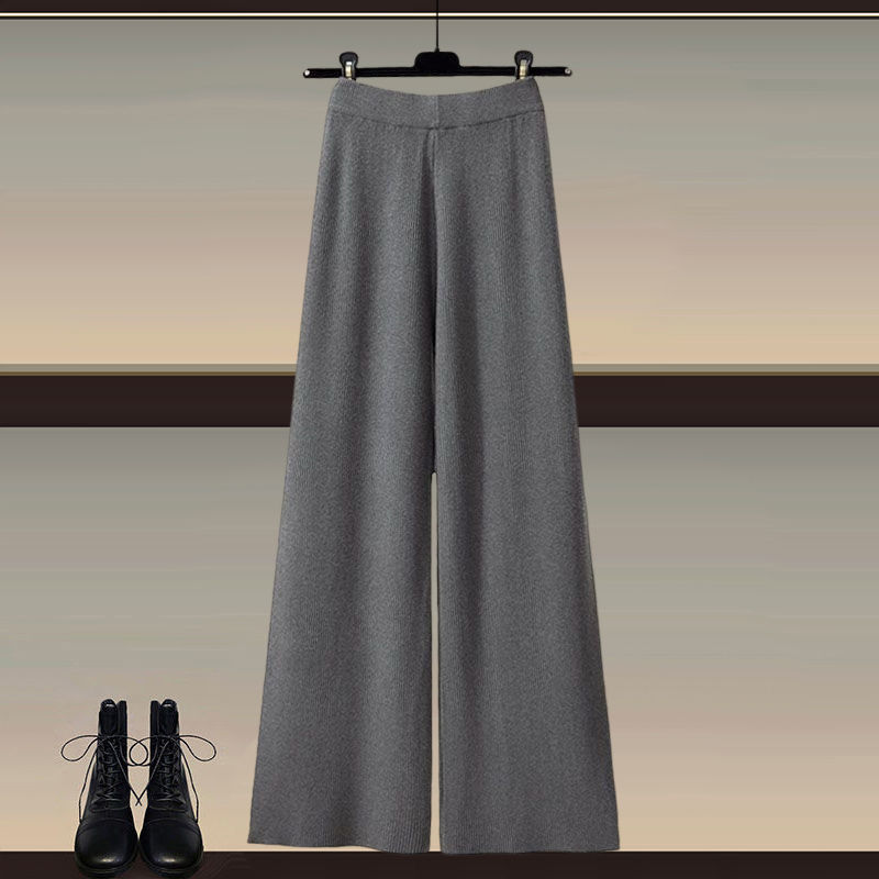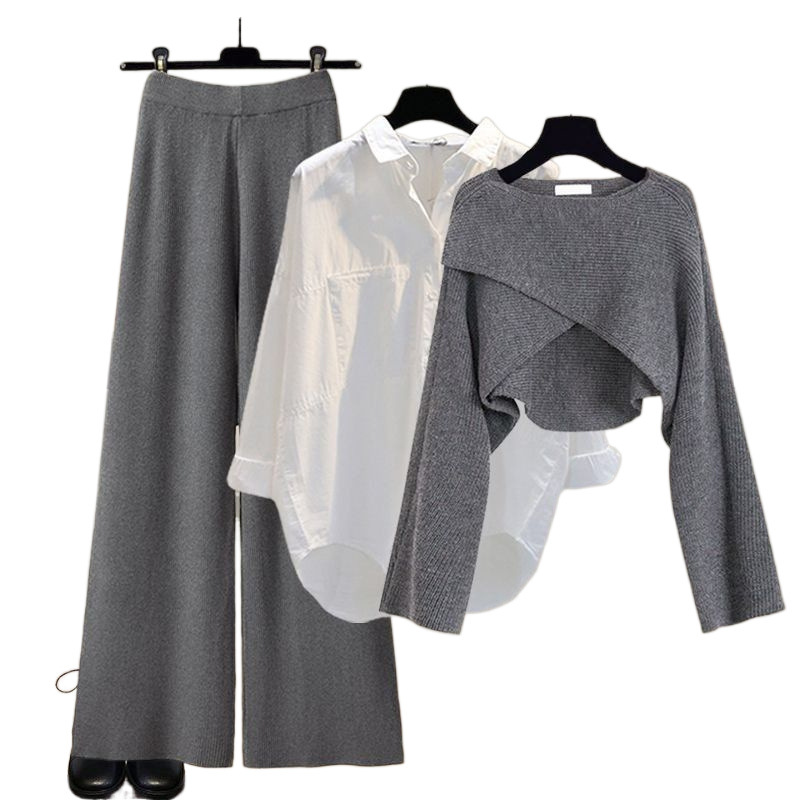 Осенний и зимний набор женский 2024 новый большой размер женский вязаный свитер женский мода тонкая рубашка широкие брюки три комплекта