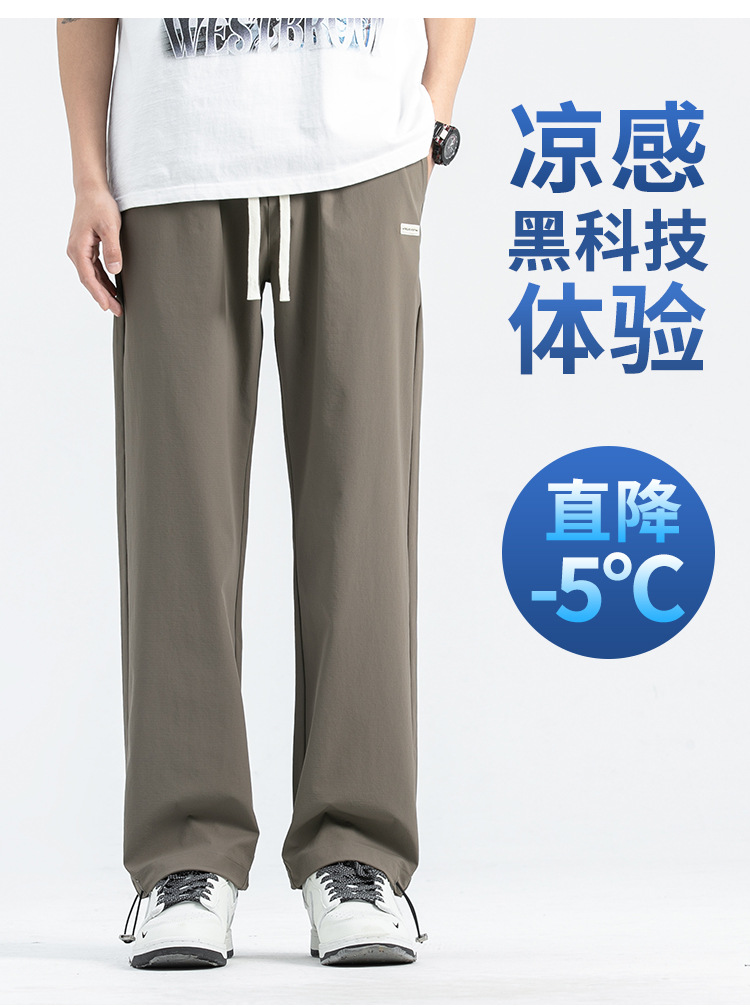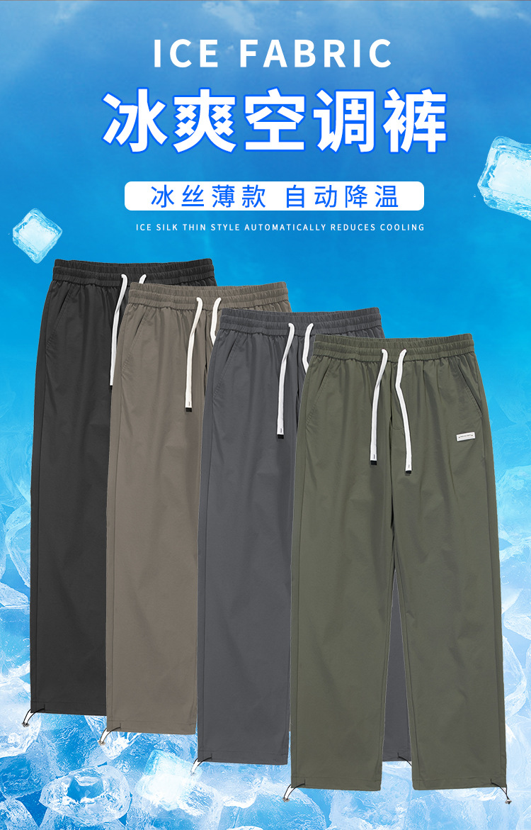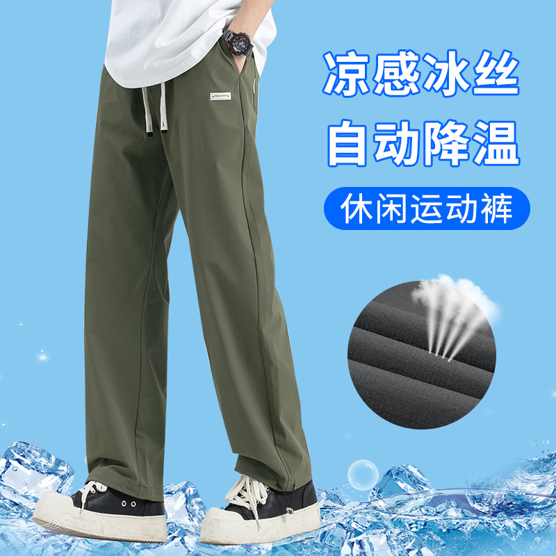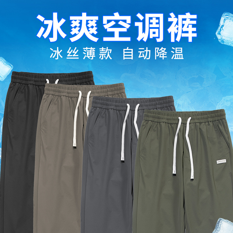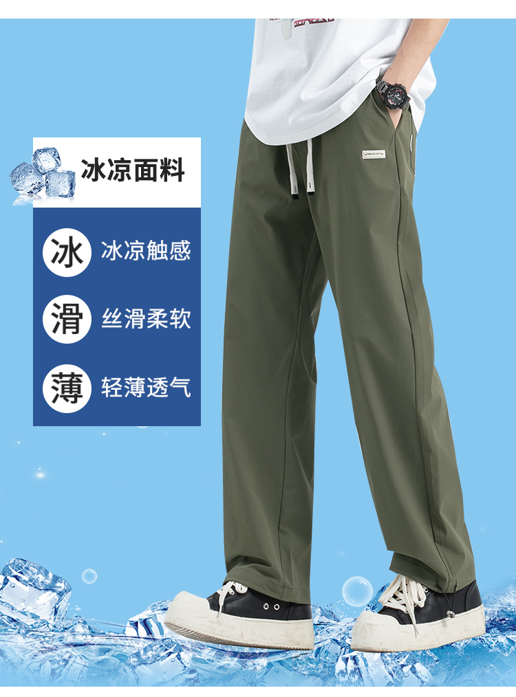 Брюки мужские тонкие летние повседневные брюки большого размера свободные прямые вертикальные мужские ледяные шелковые спортивные штаны с кондиционером