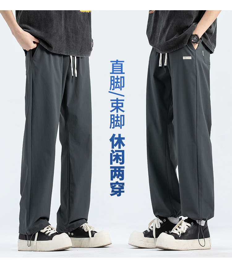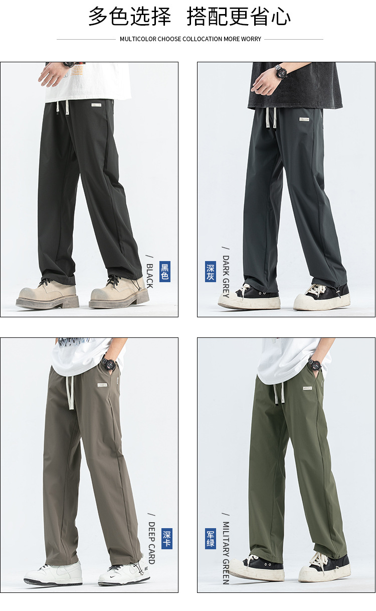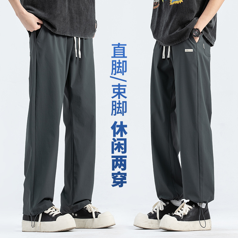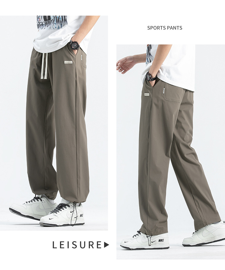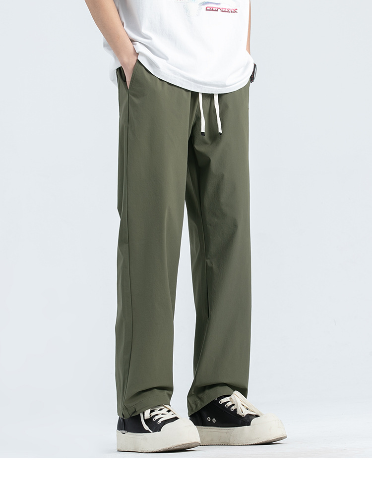 Брюки мужские тонкие летние повседневные брюки большого размера свободные прямые вертикальные мужские ледяные шелковые спортивные штаны с кондиционером