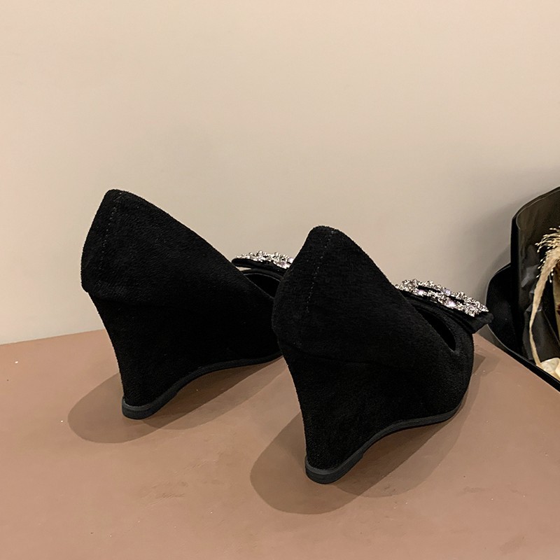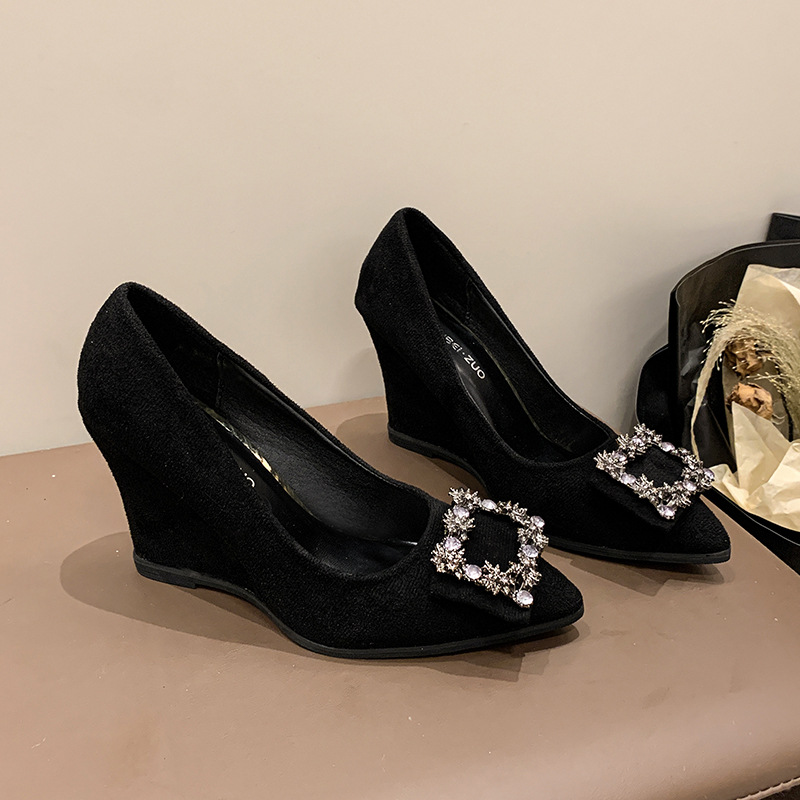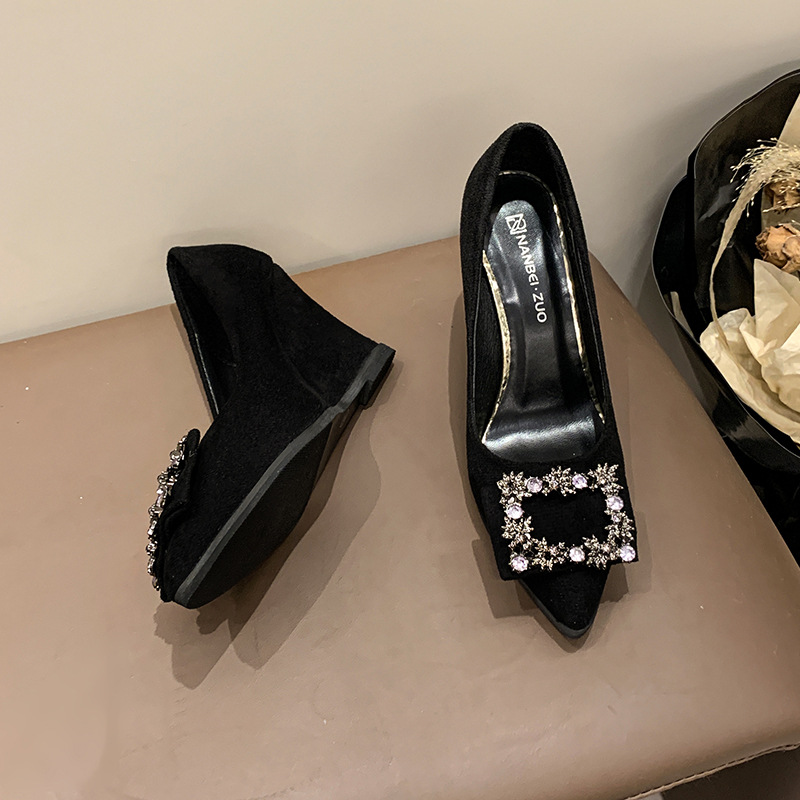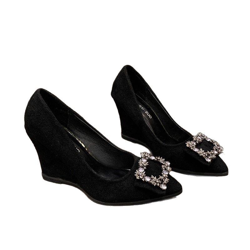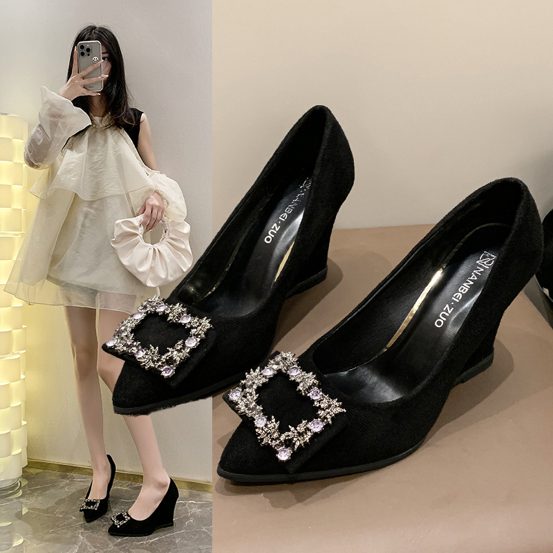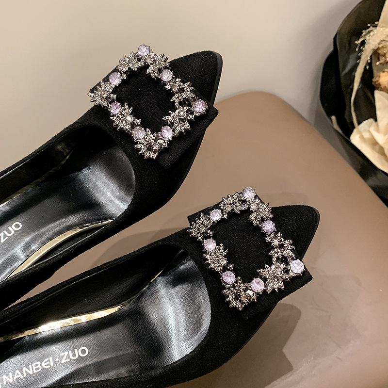 Весенние и осенние маленькие ароматные наклоны на каблуках модные одиночные туфли женские черные туфли на высоких каблуках со стразами
