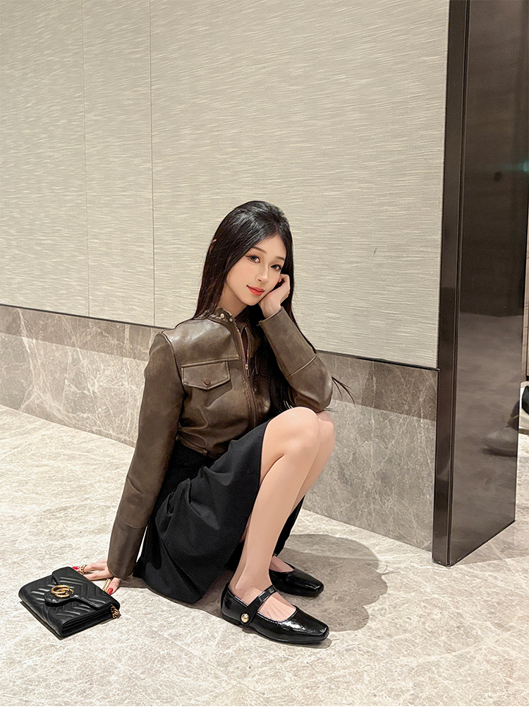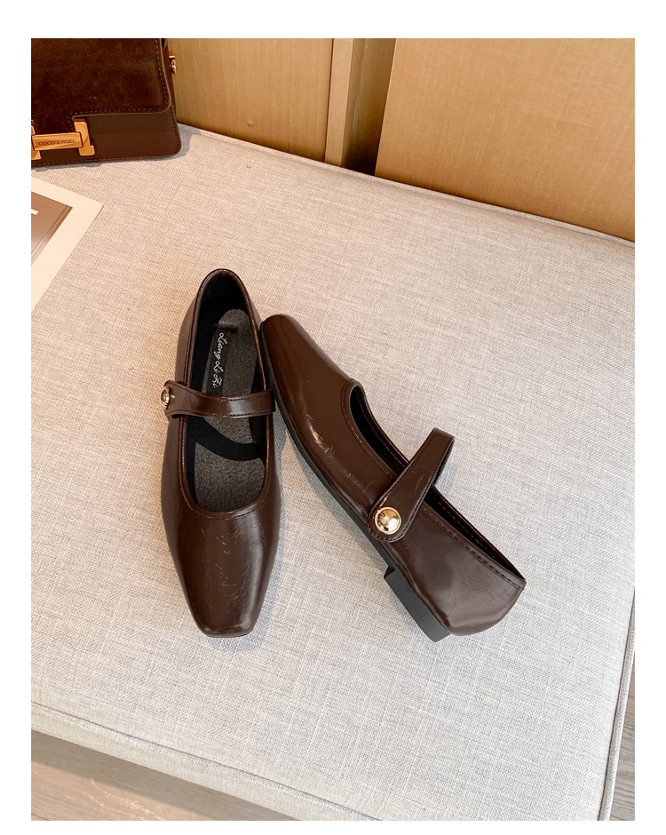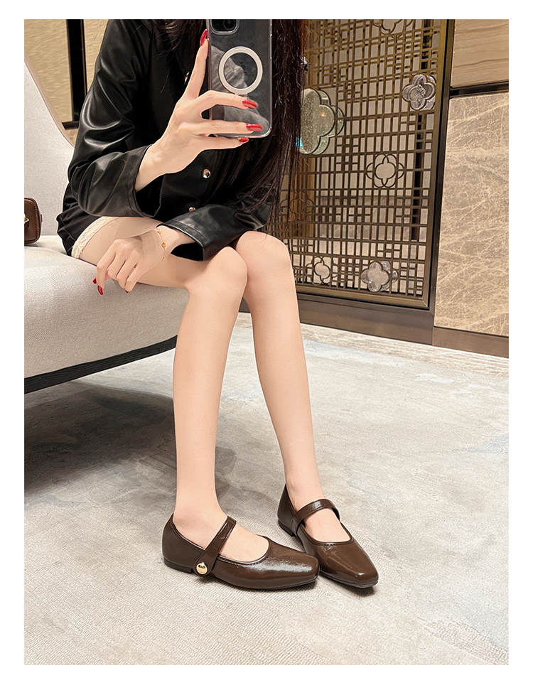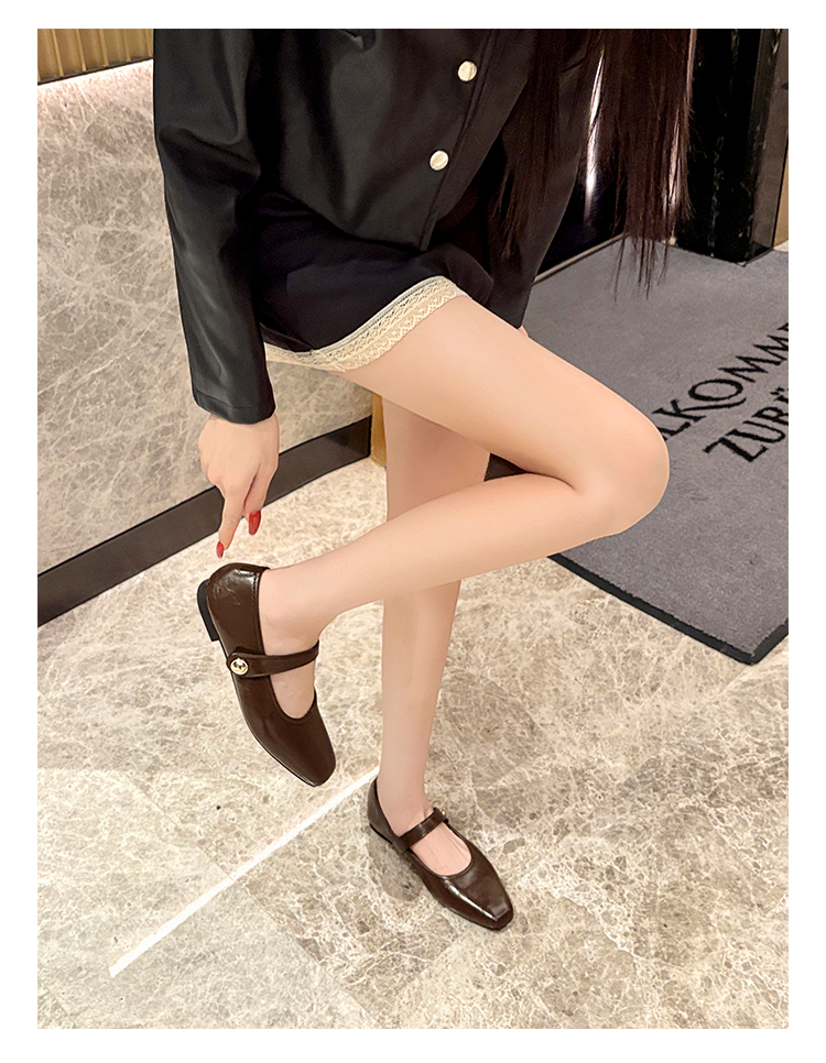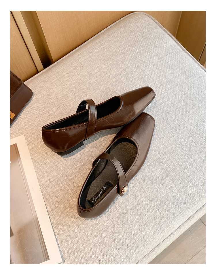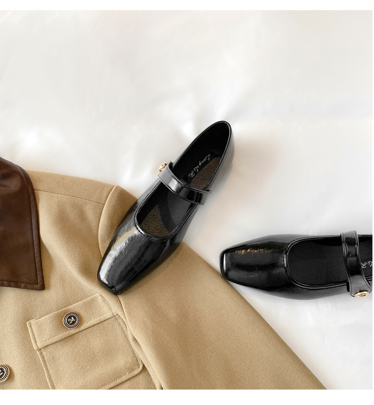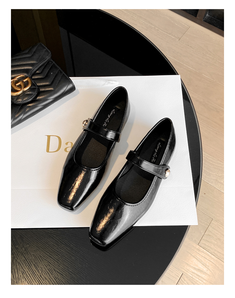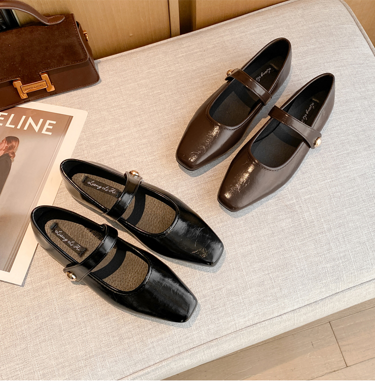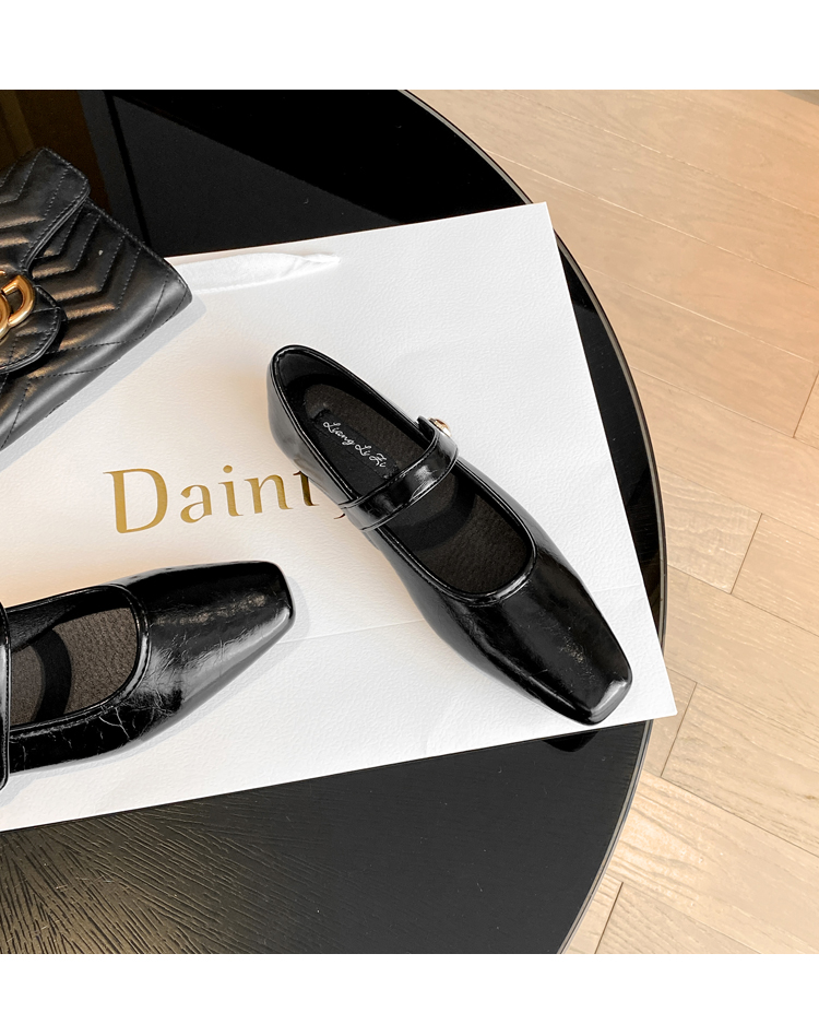 Овчинная версия ~ Ретро французские туфли Мэри Джейн женские пригородные квадратные головы весной плоское дно с неглубоким ртом вечерние туфли