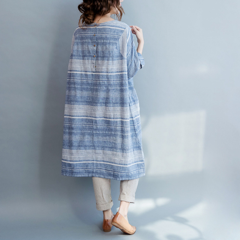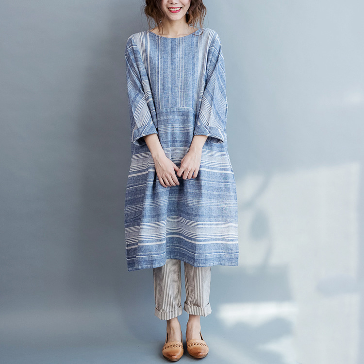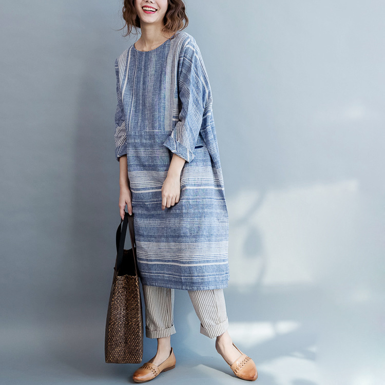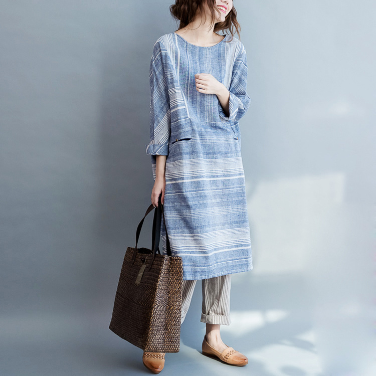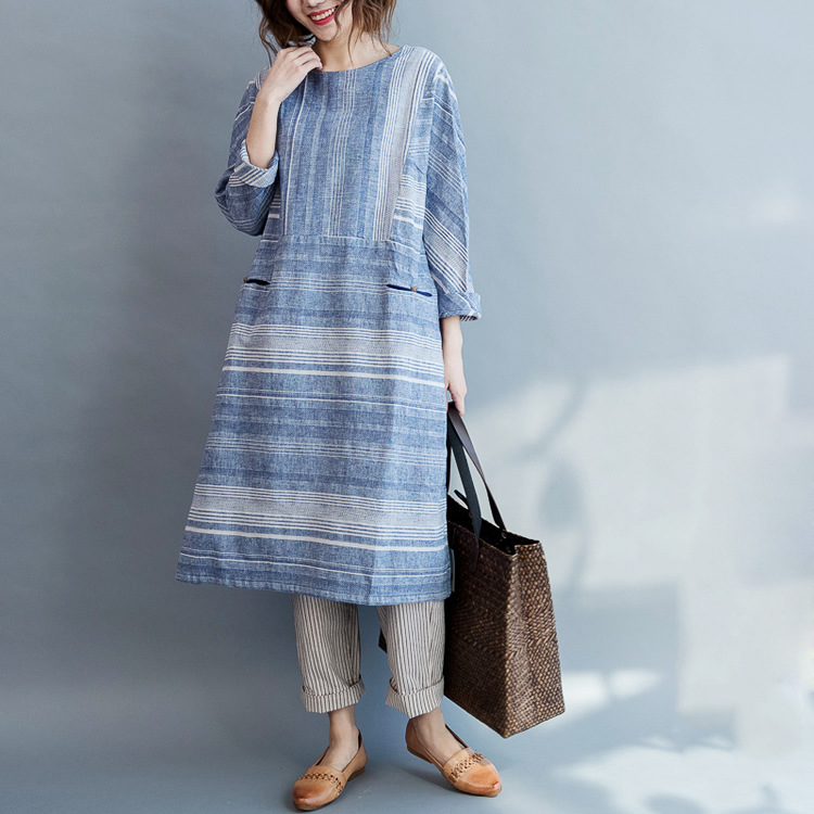 Пятно новое весеннее 2025 корейское литературное минималистское модное полосатое платье