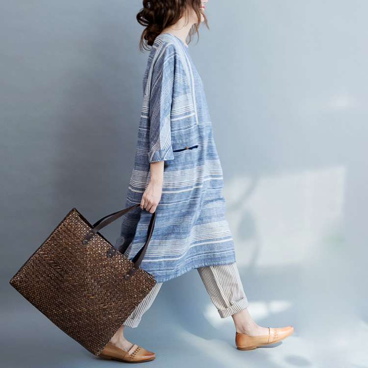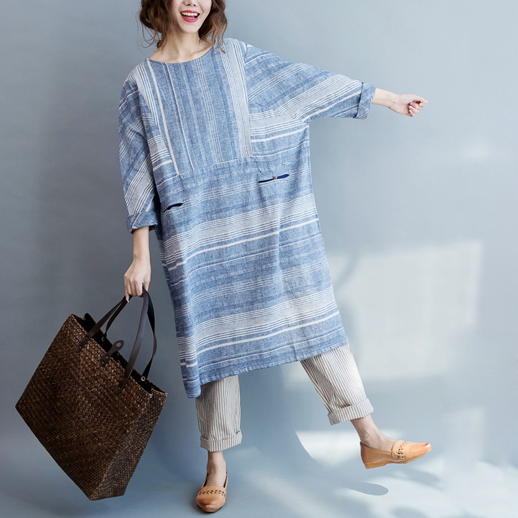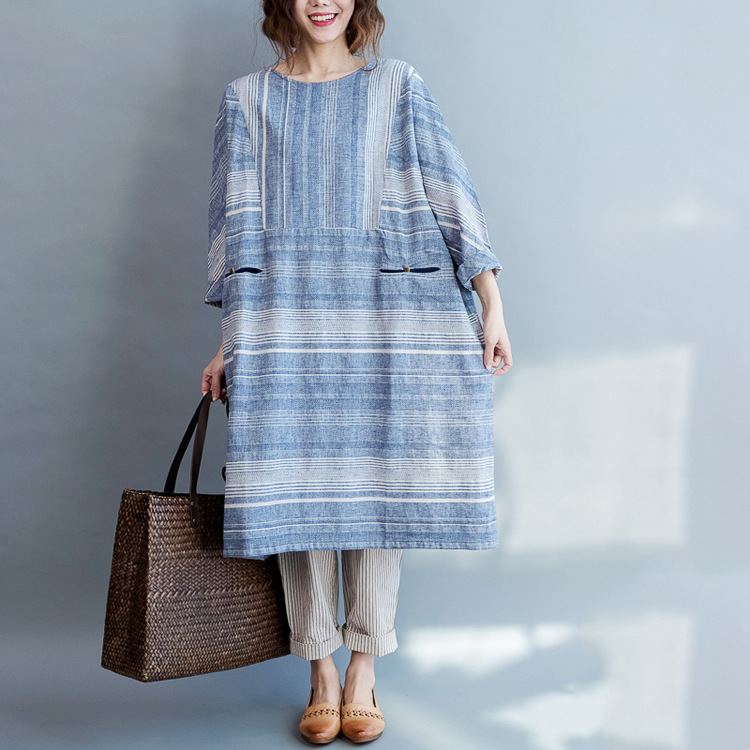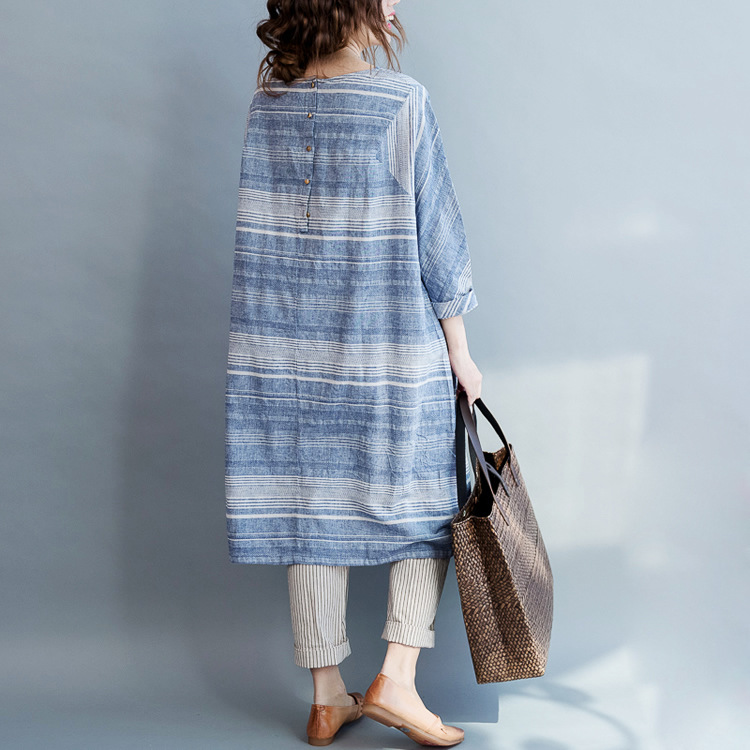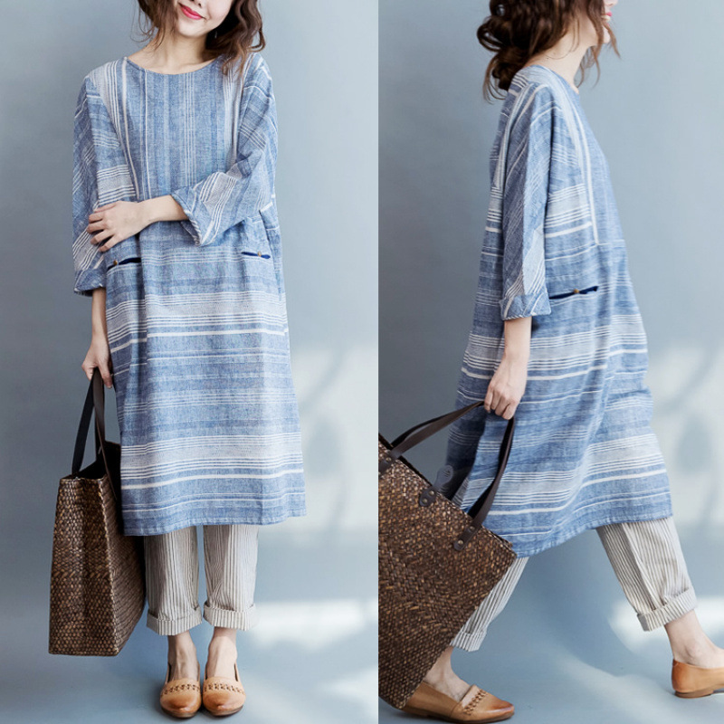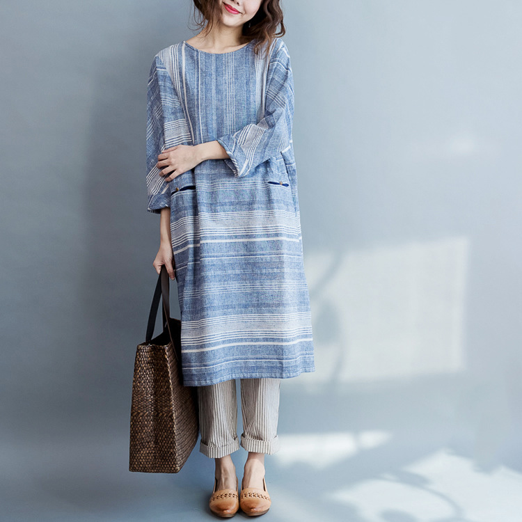 Пятно новое весеннее 2025 корейское литературное минималистское модное полосатое платье