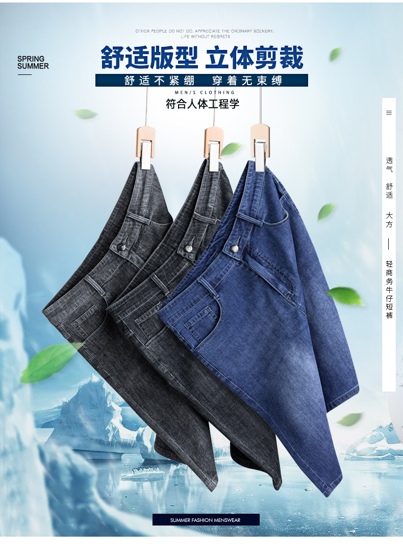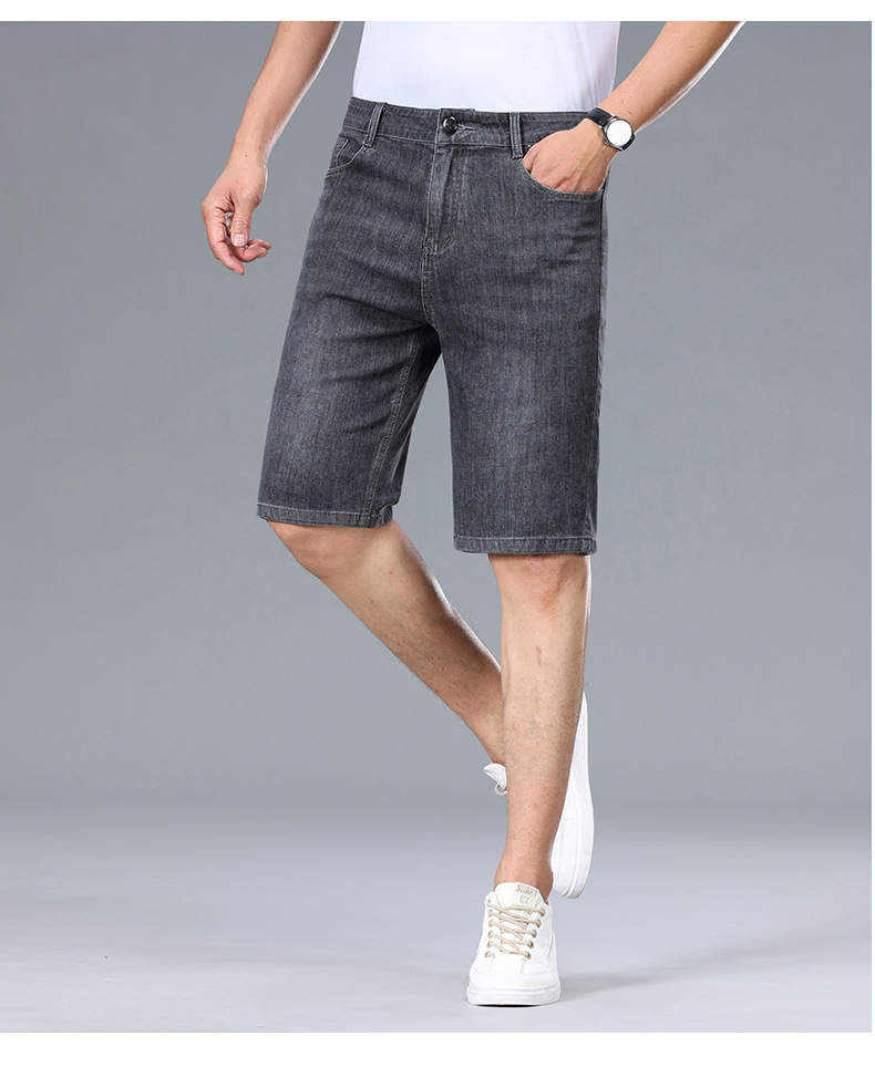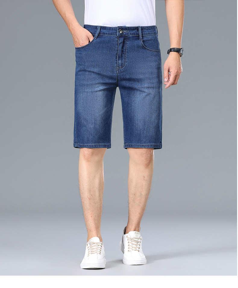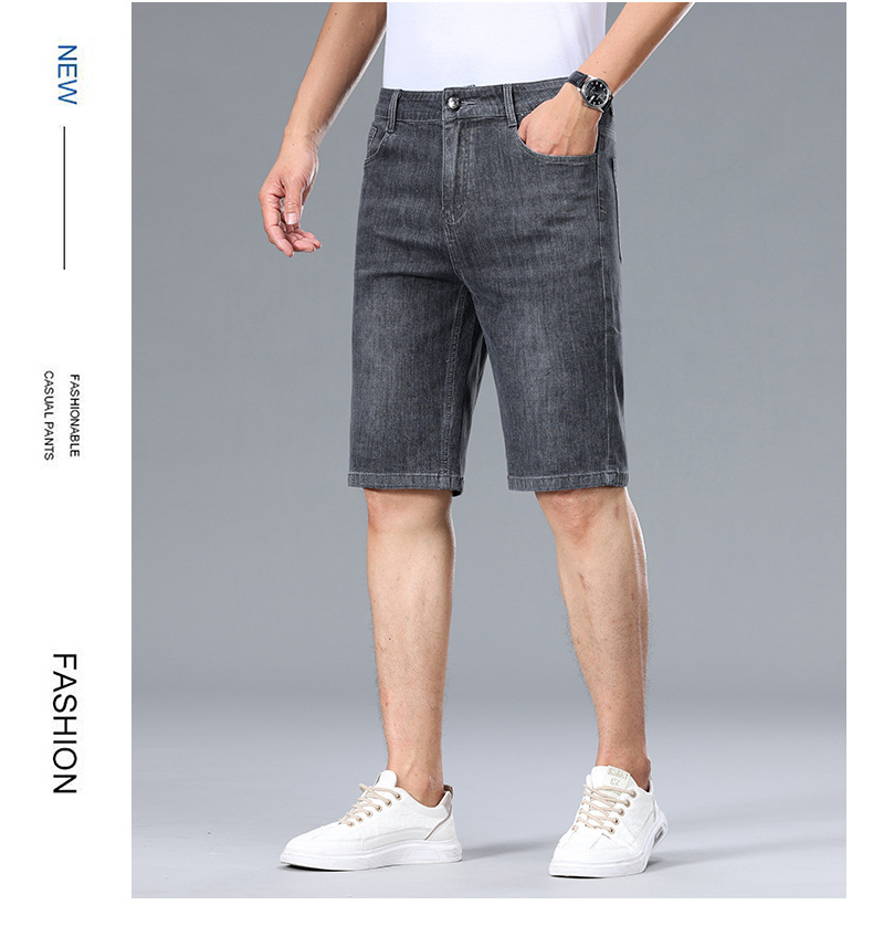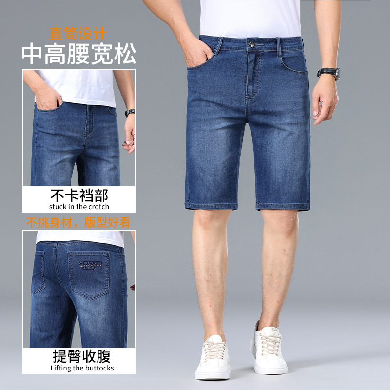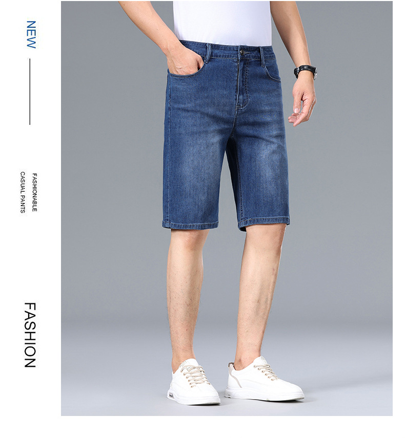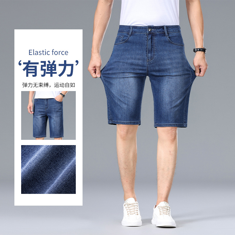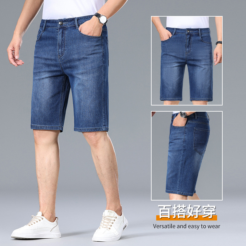 Летние тонкие мужские эластичные пятикратные джинсовые шорты новый тренд ретро свободные повседневные брюки мужчины