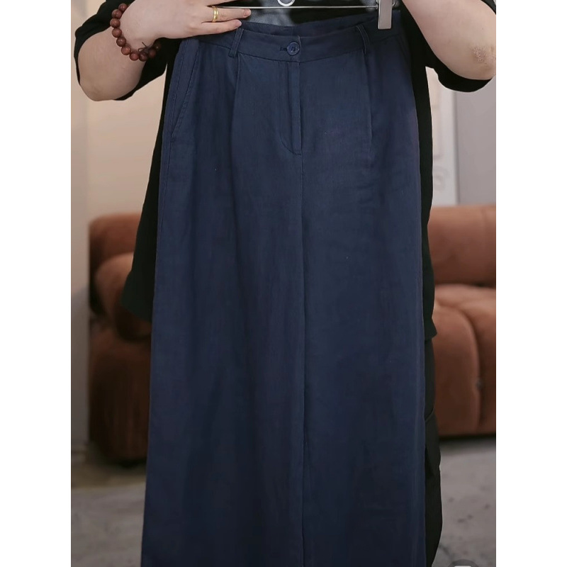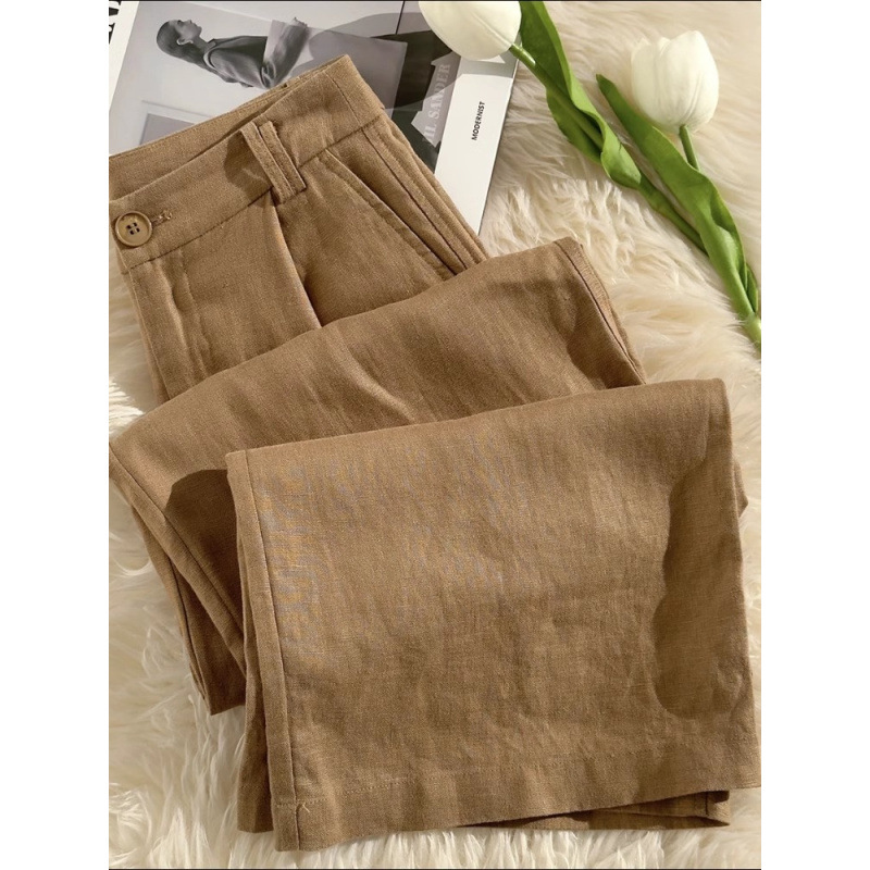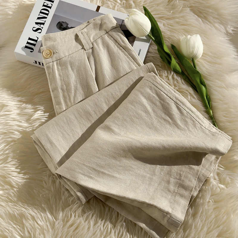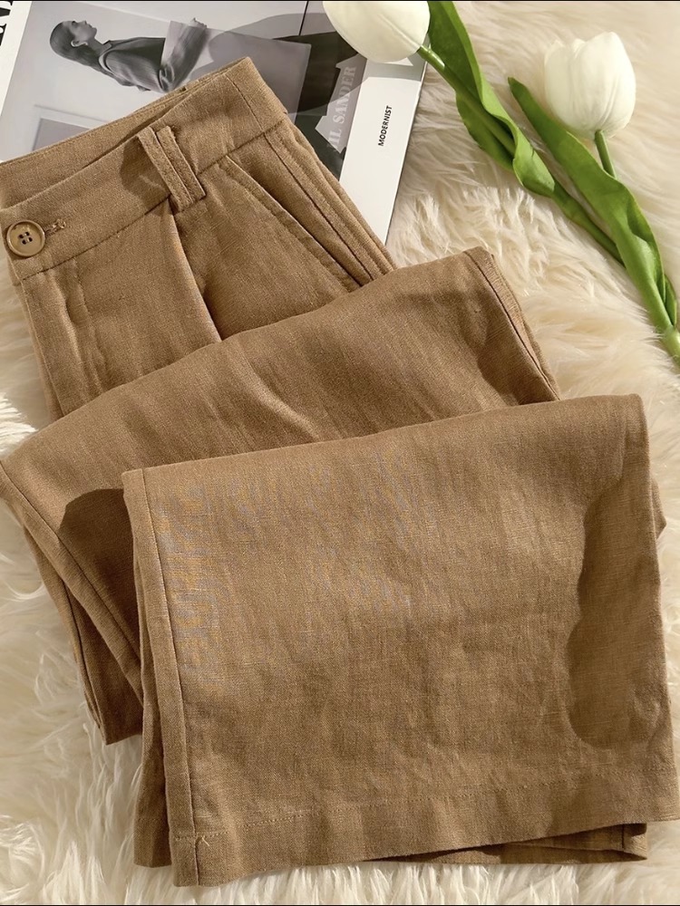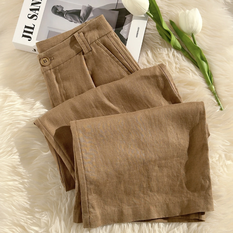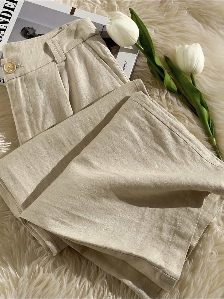 Лето 2025 Тонкие хлопковые и льняные повседневные брюки большого размера с высокой талией