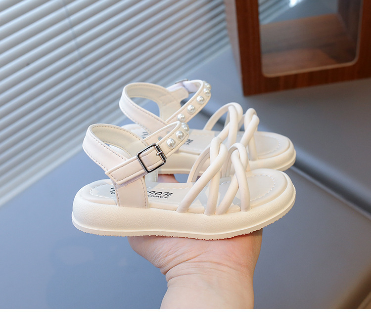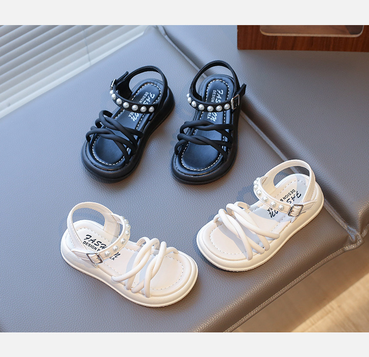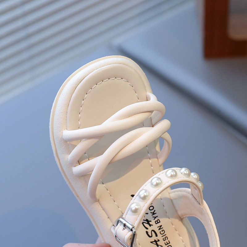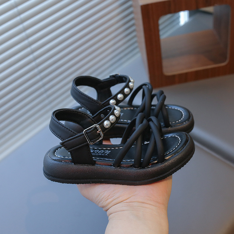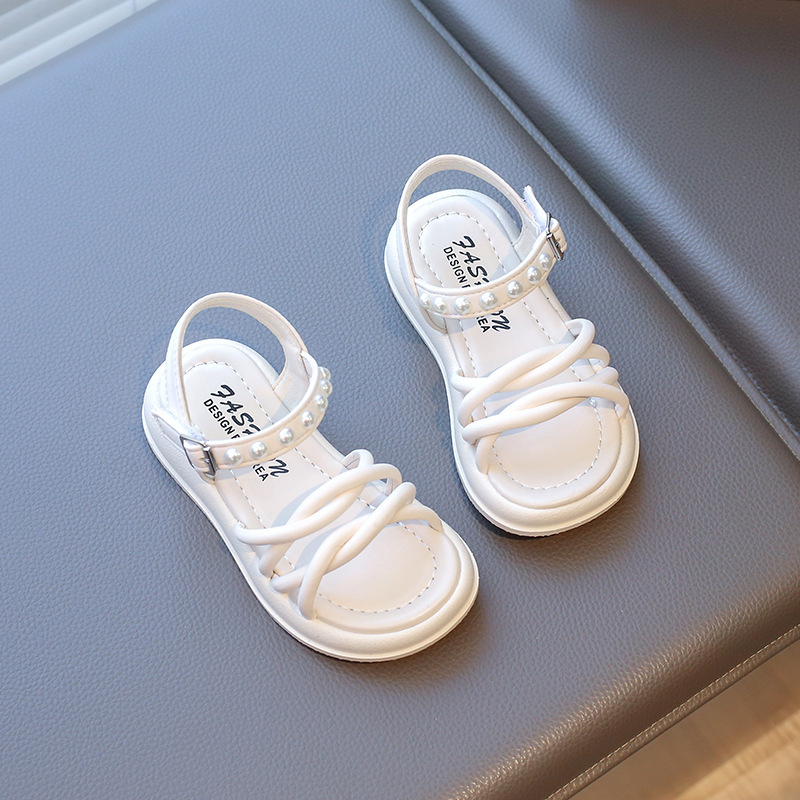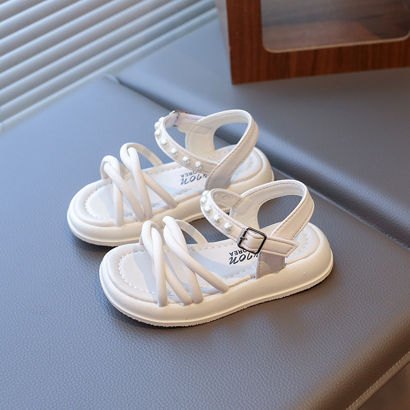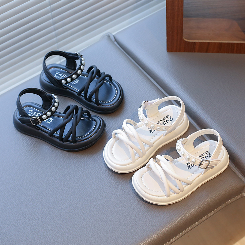 Детские жемчужные сандалии римские кроссовки женские летние носки 2025 новые корейские дикие модные сандалии для девочек на толстой подошве