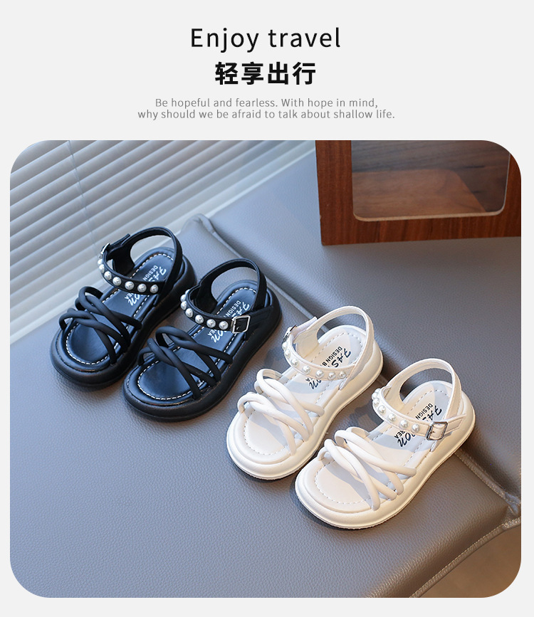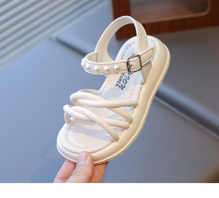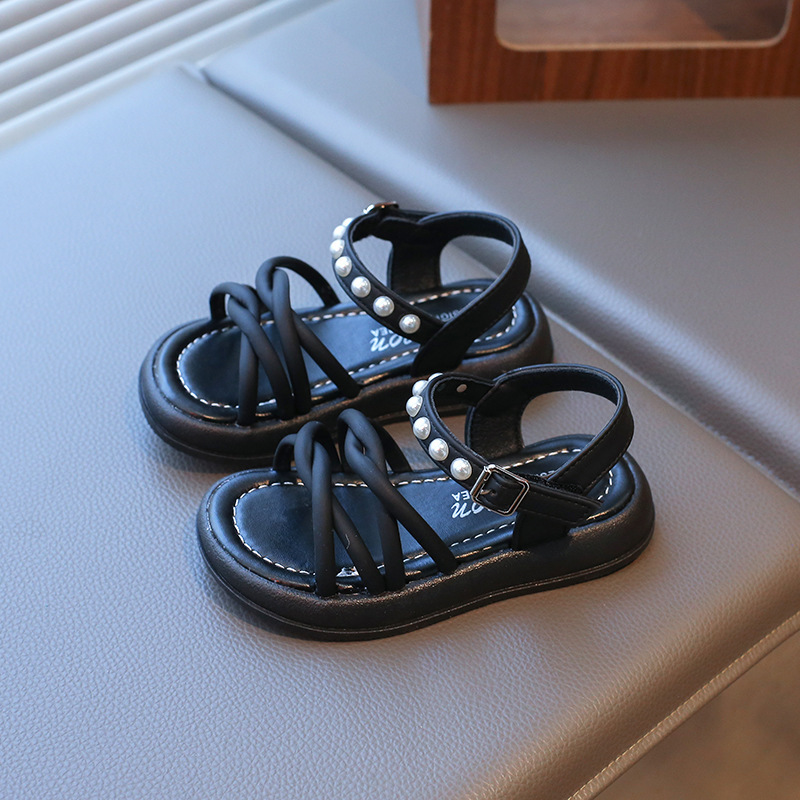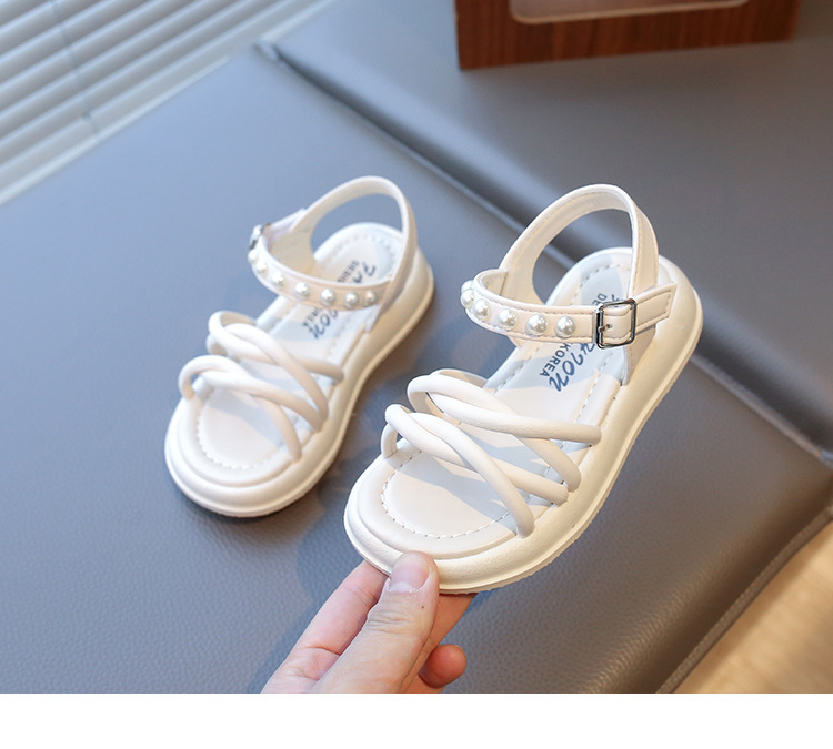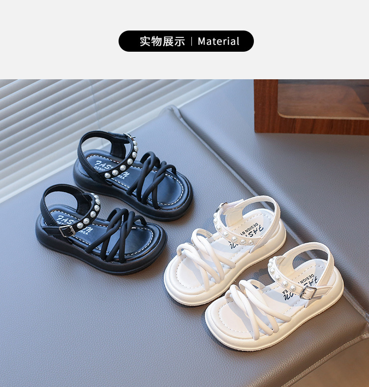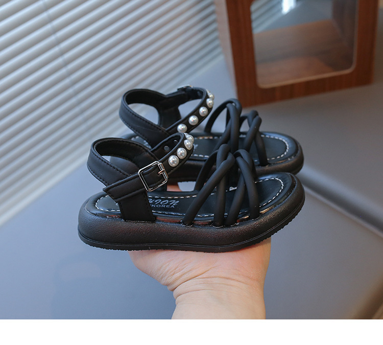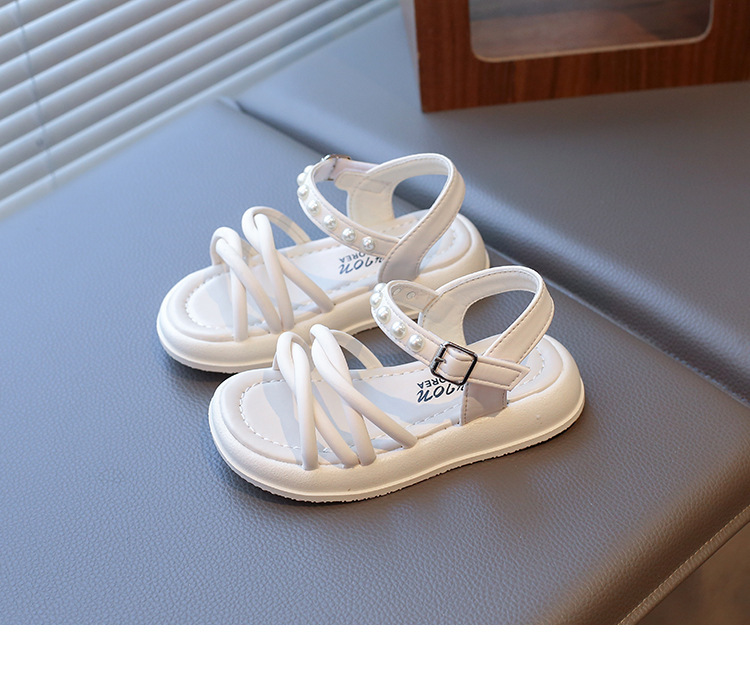 Детские жемчужные сандалии римские кроссовки женские летние носки 2025 новые корейские дикие модные сандалии для девочек на толстой подошве