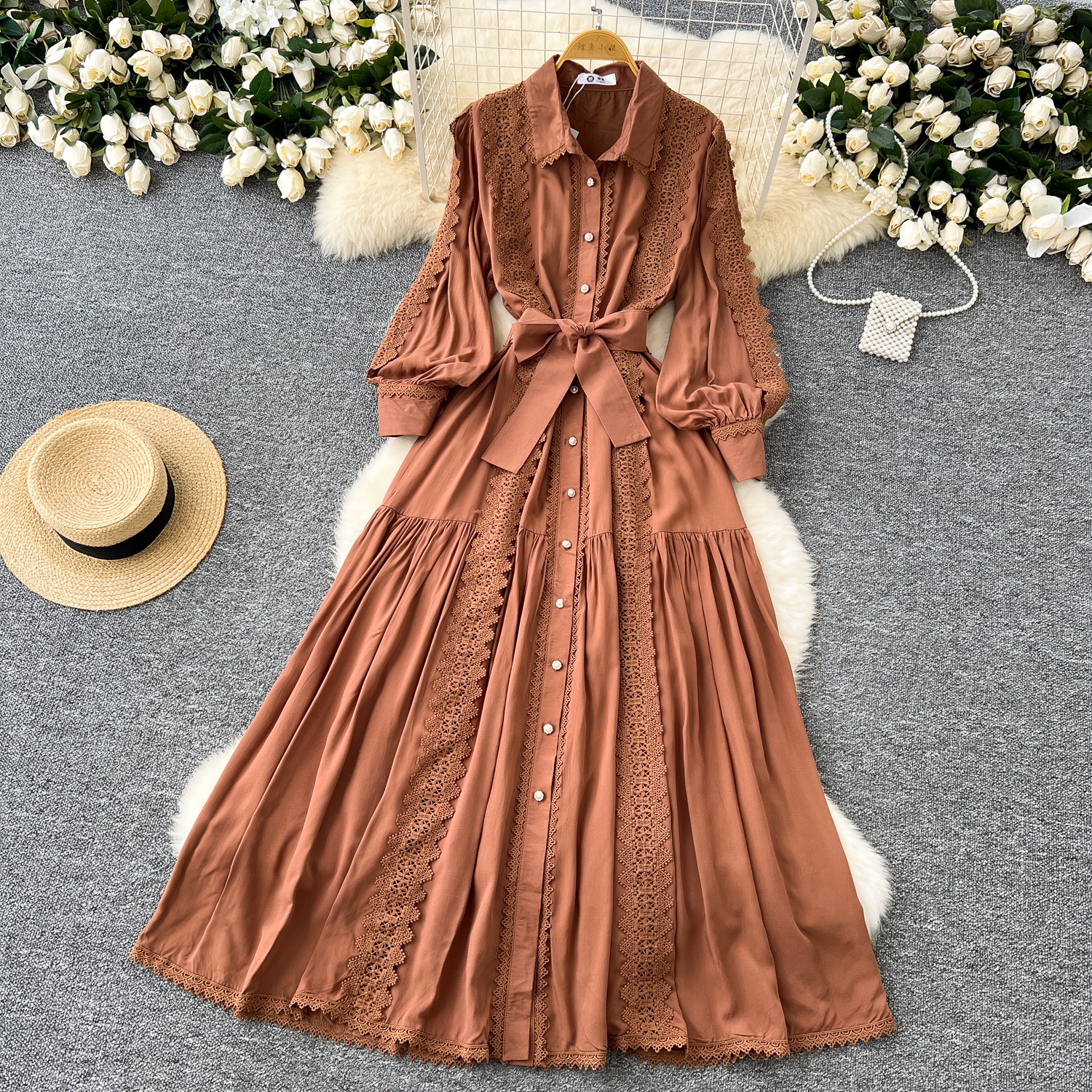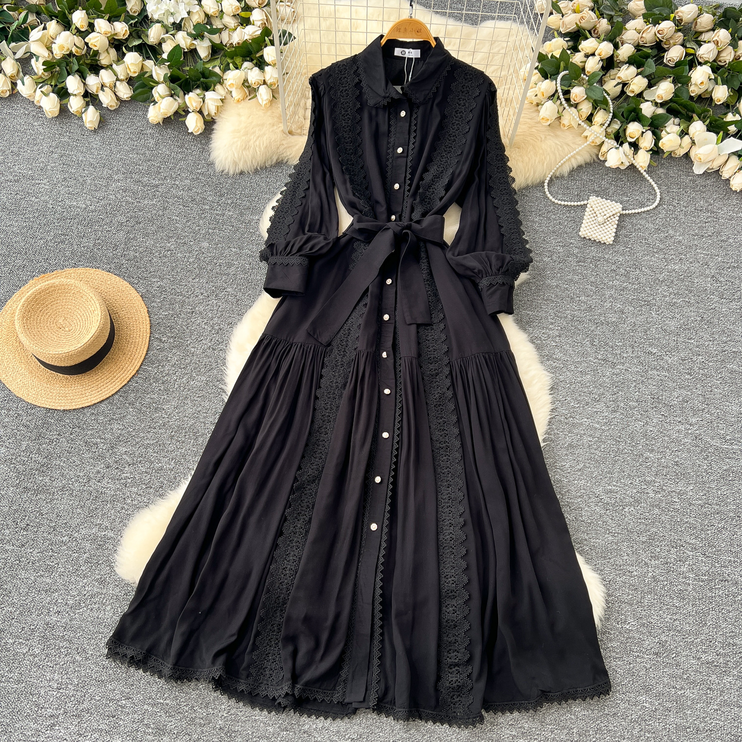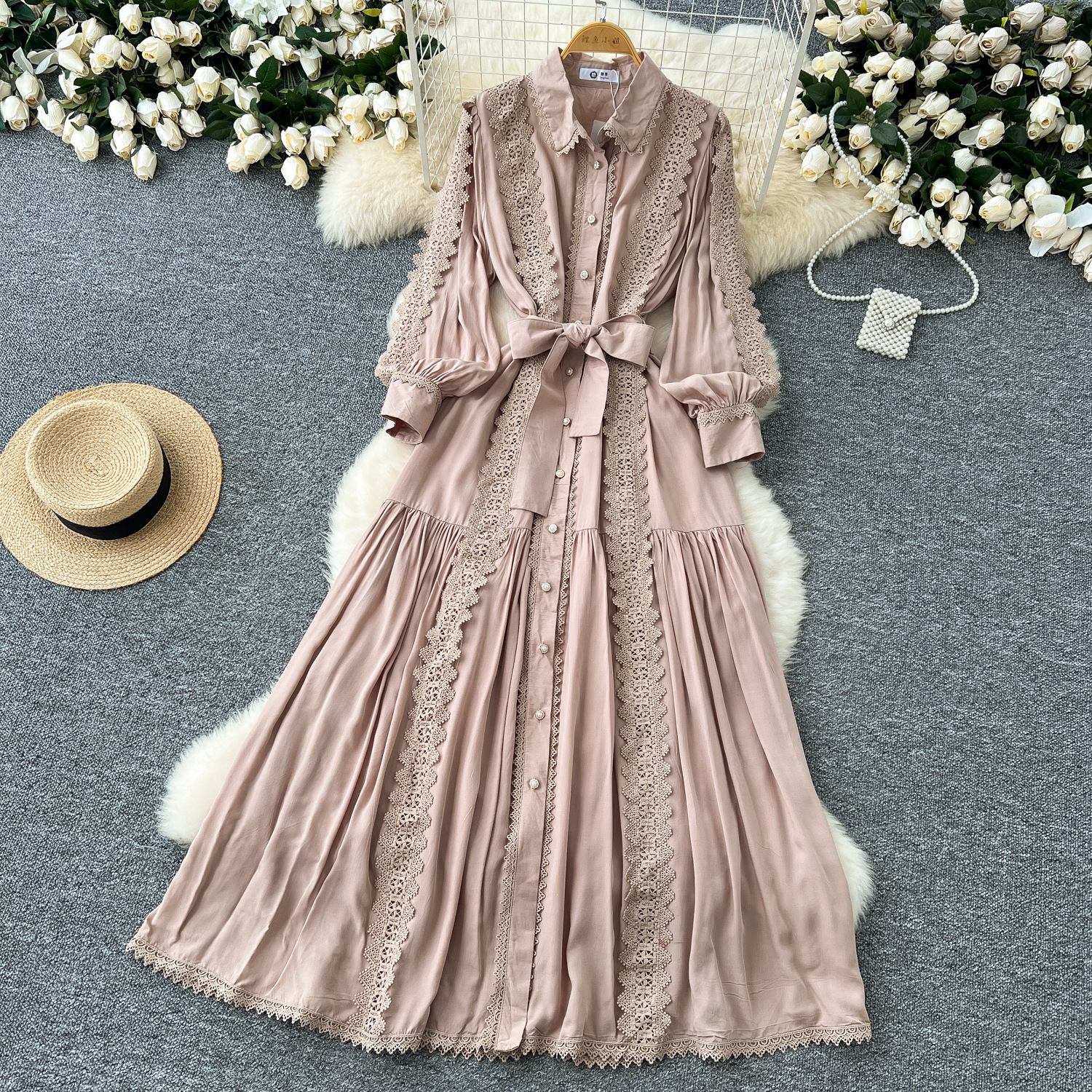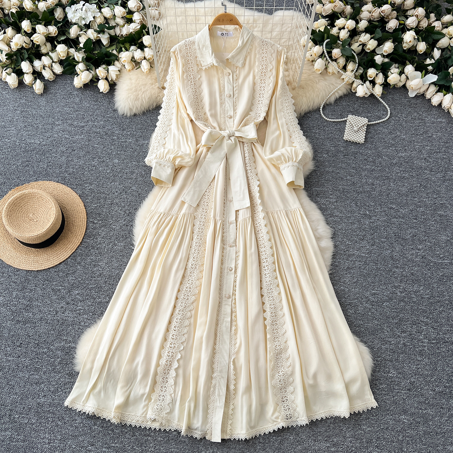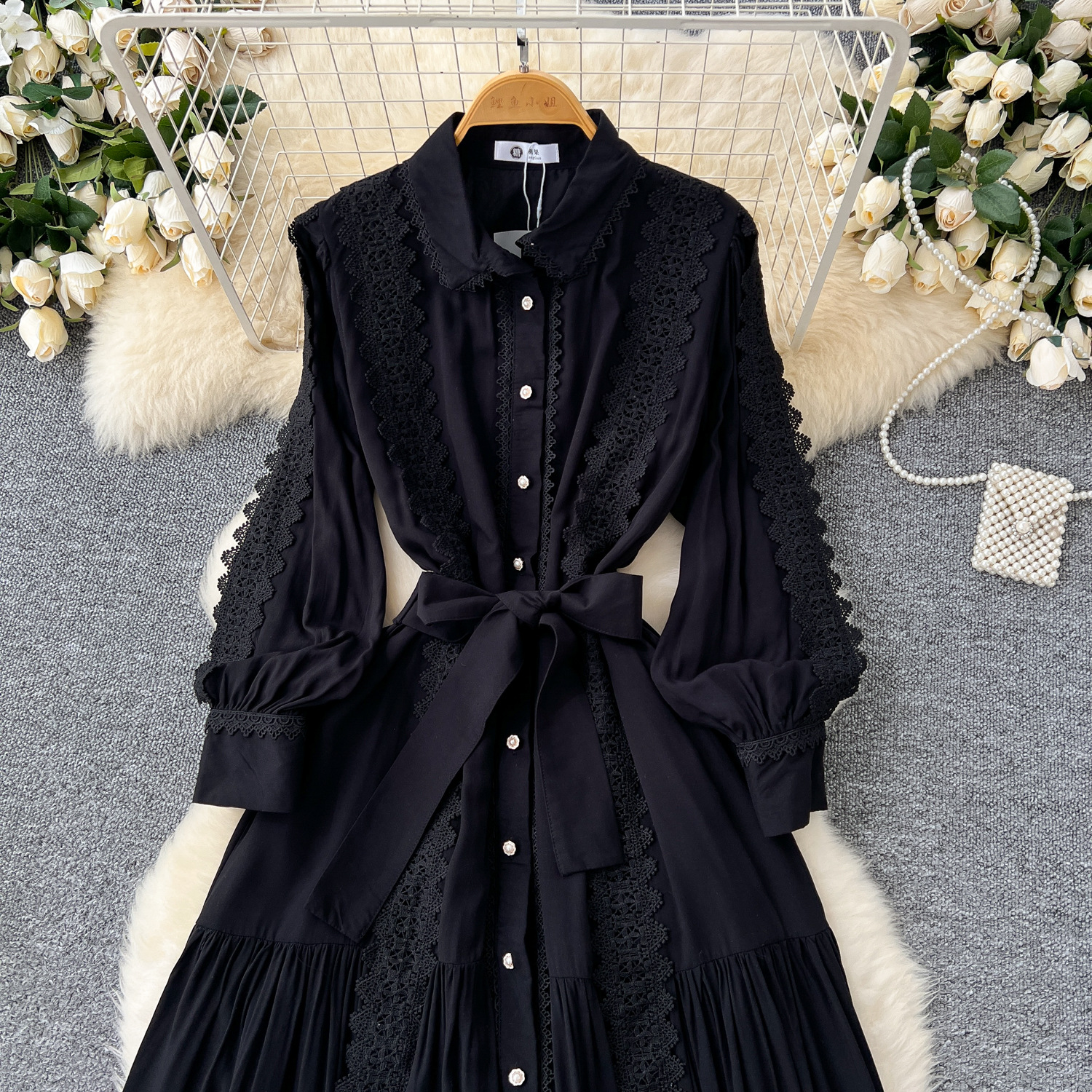 Французское элегантное платье женская осенняя леди нишевые старшее кружевное сшивание однобортное платье
