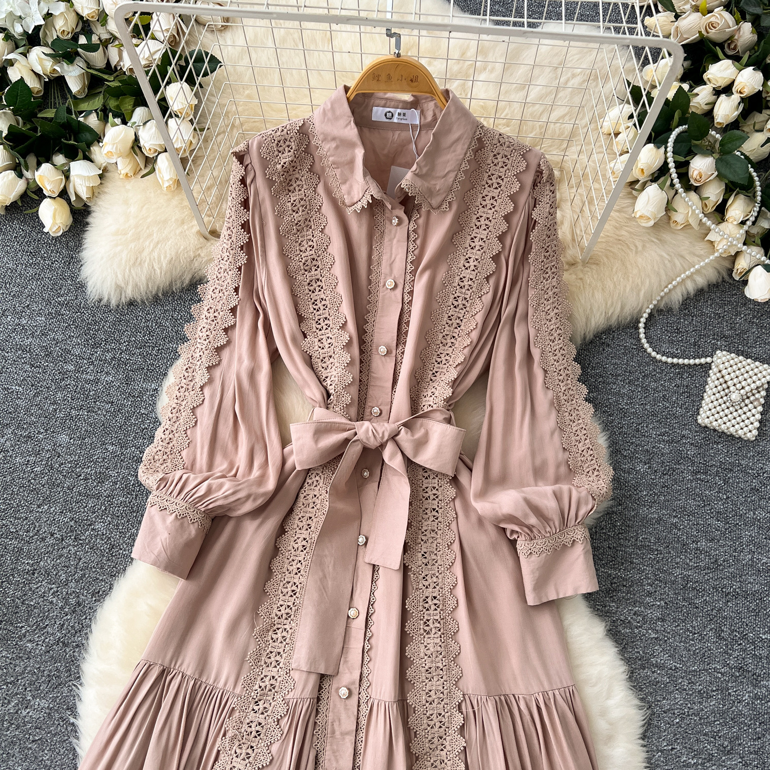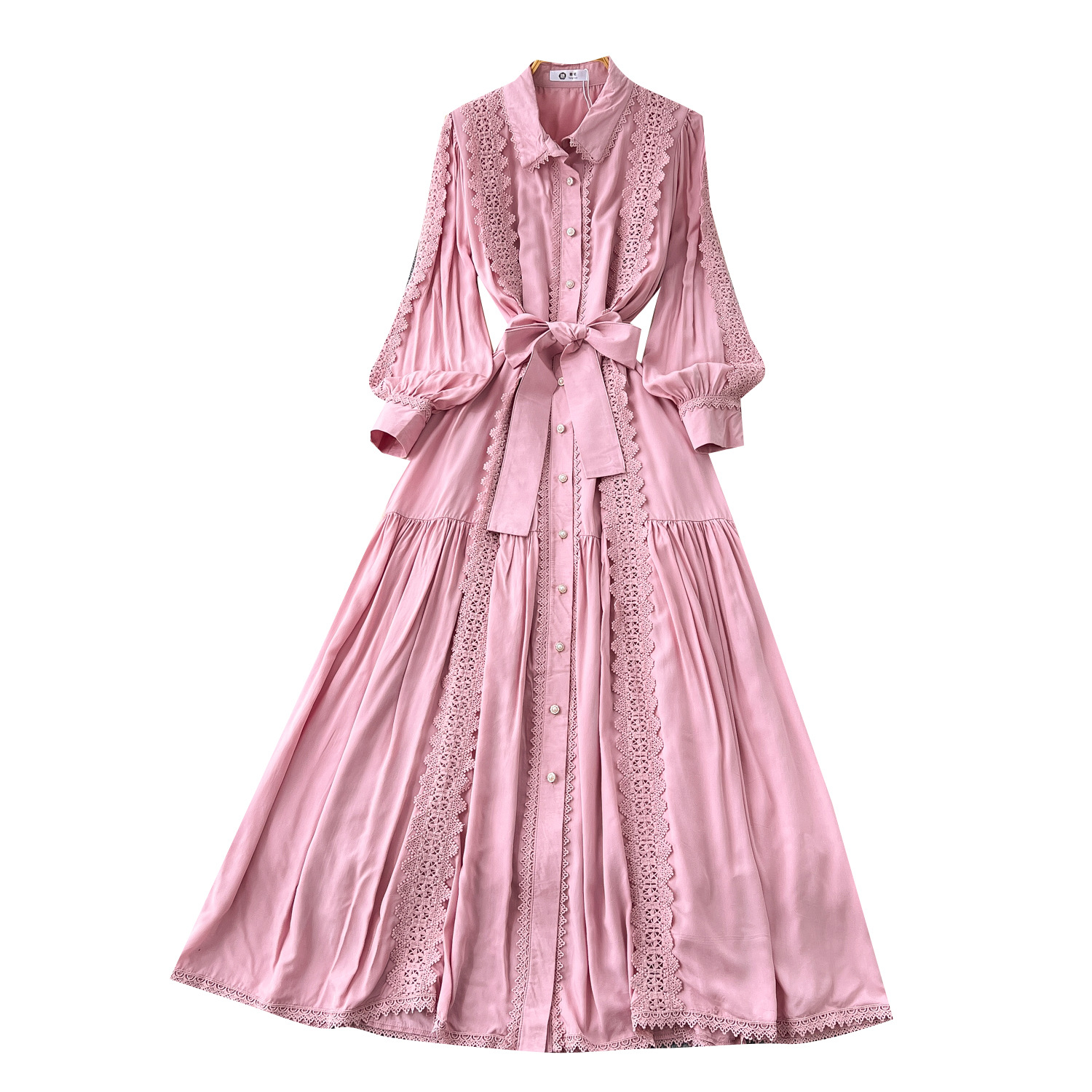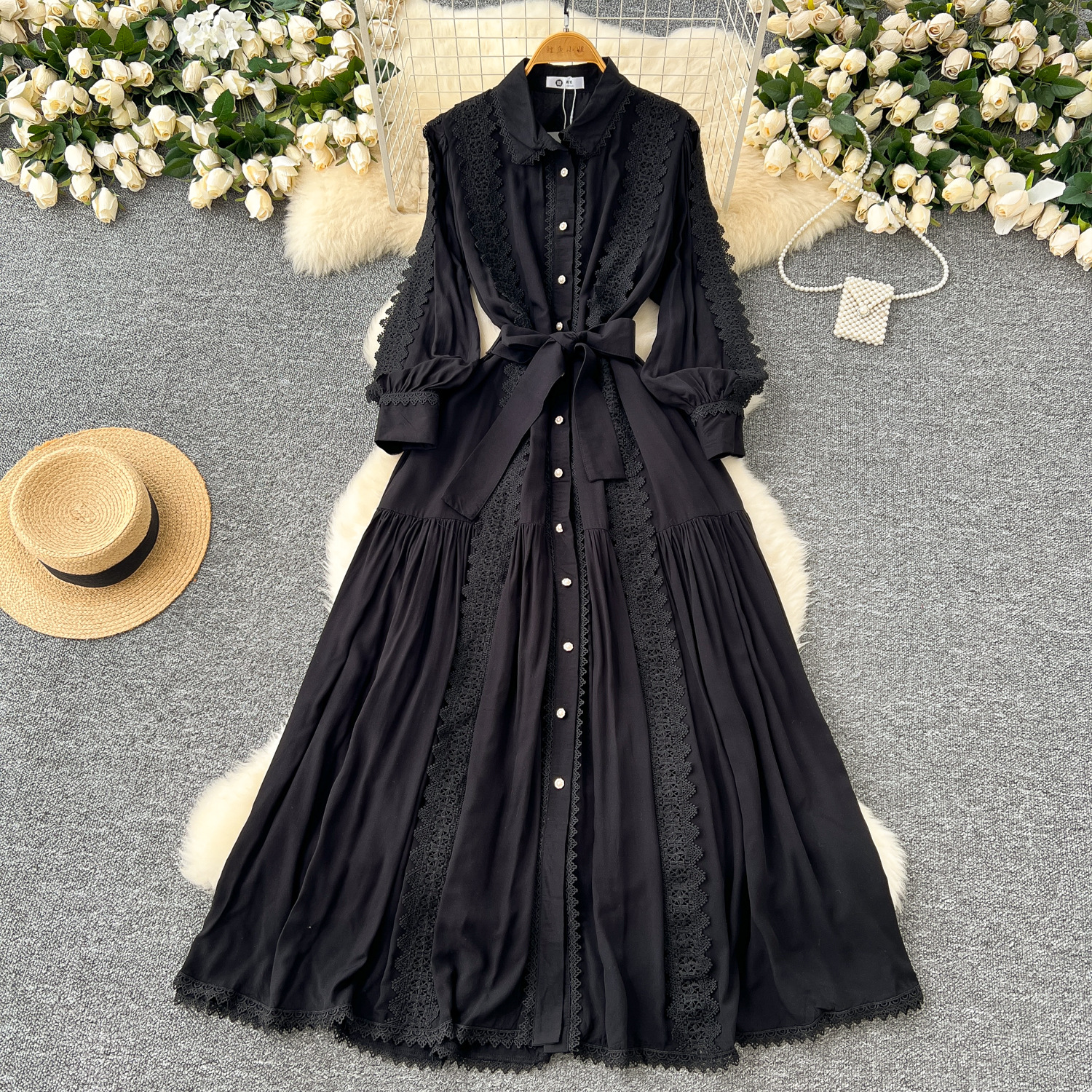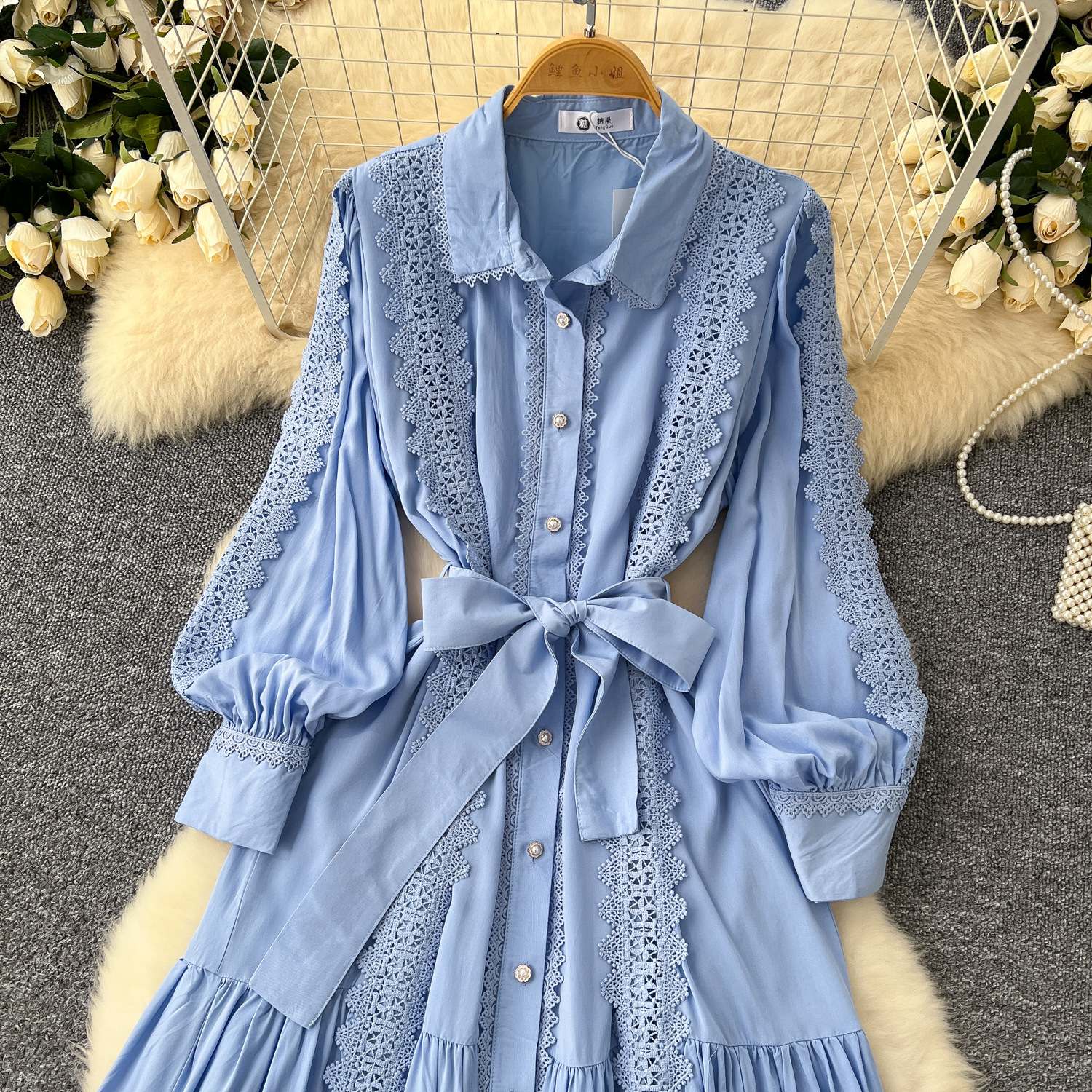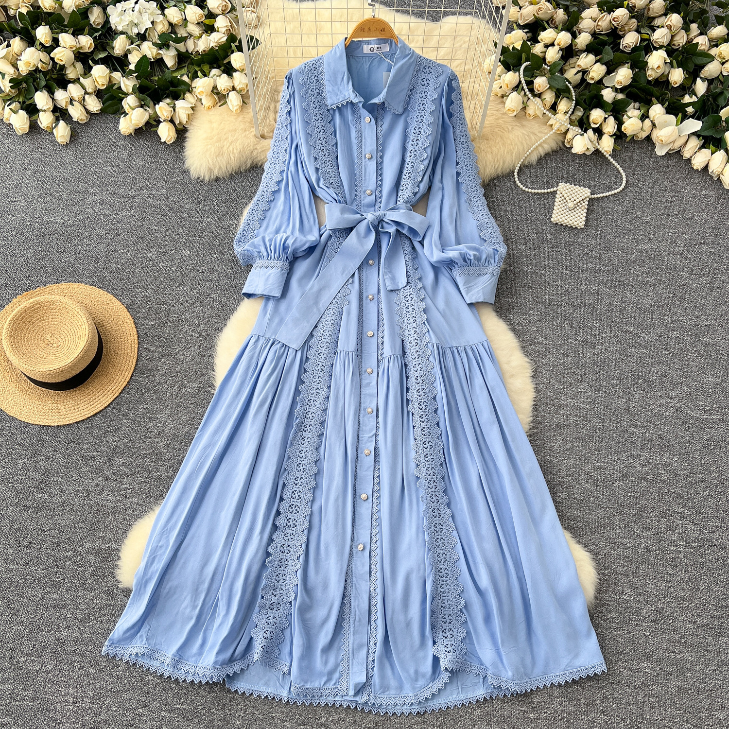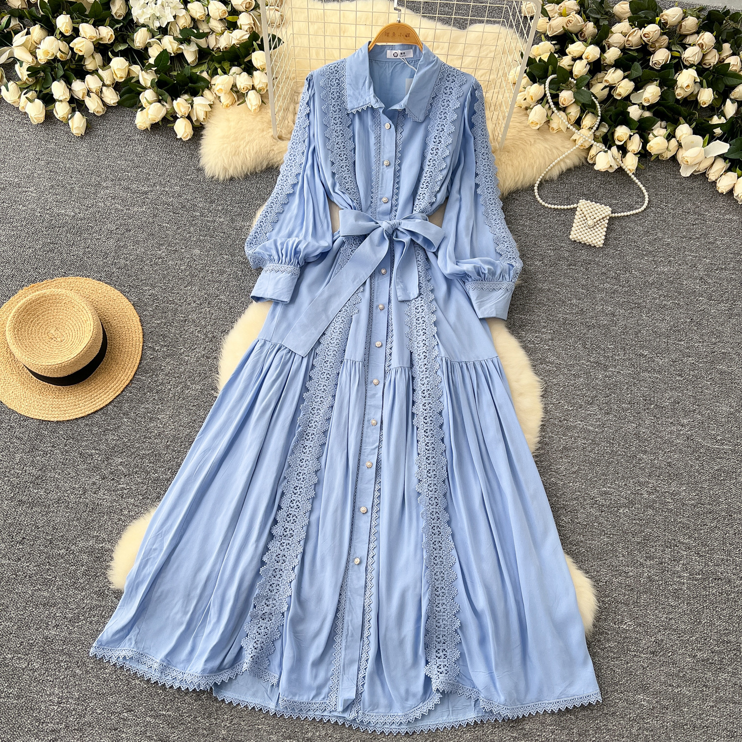 Французское элегантное платье женская осенняя леди нишевые старшее кружевное сшивание однобортное платье