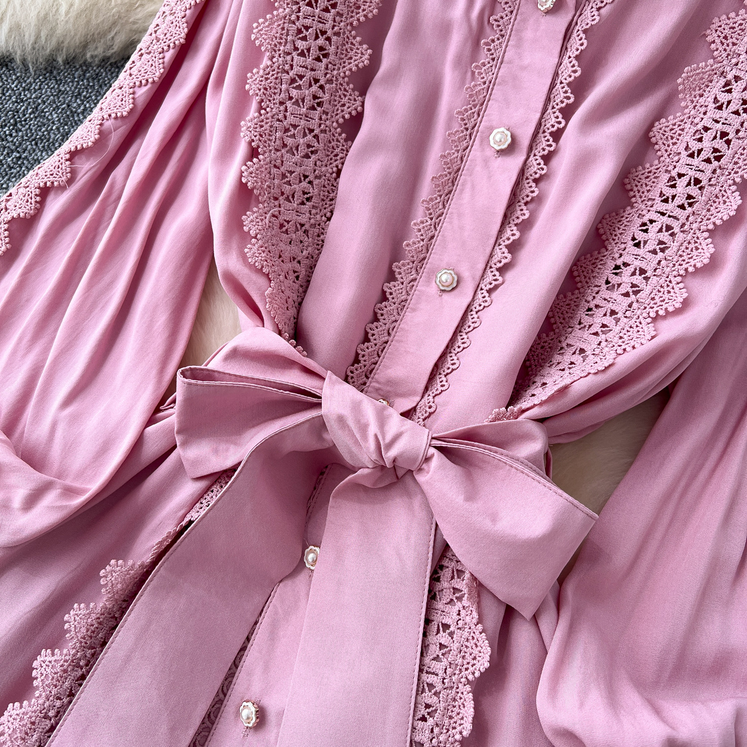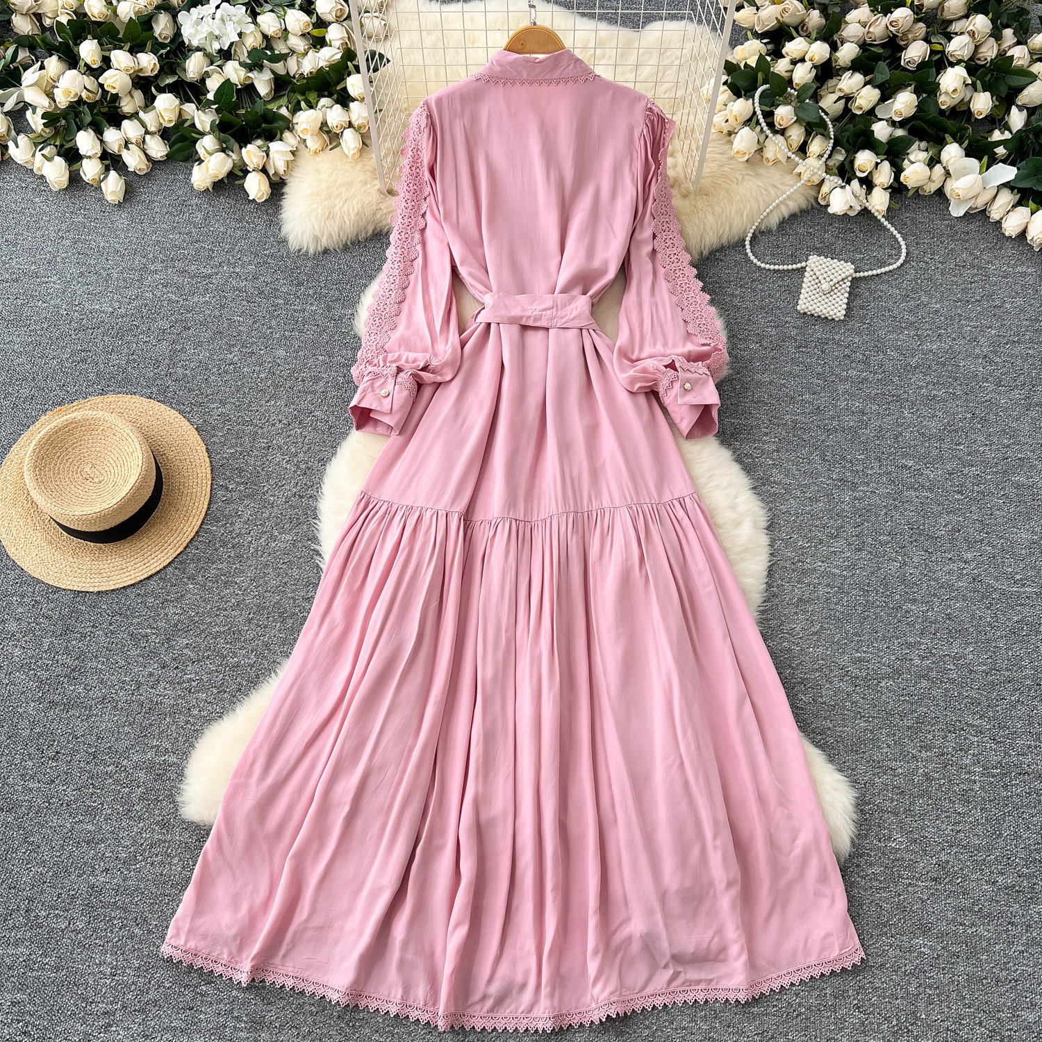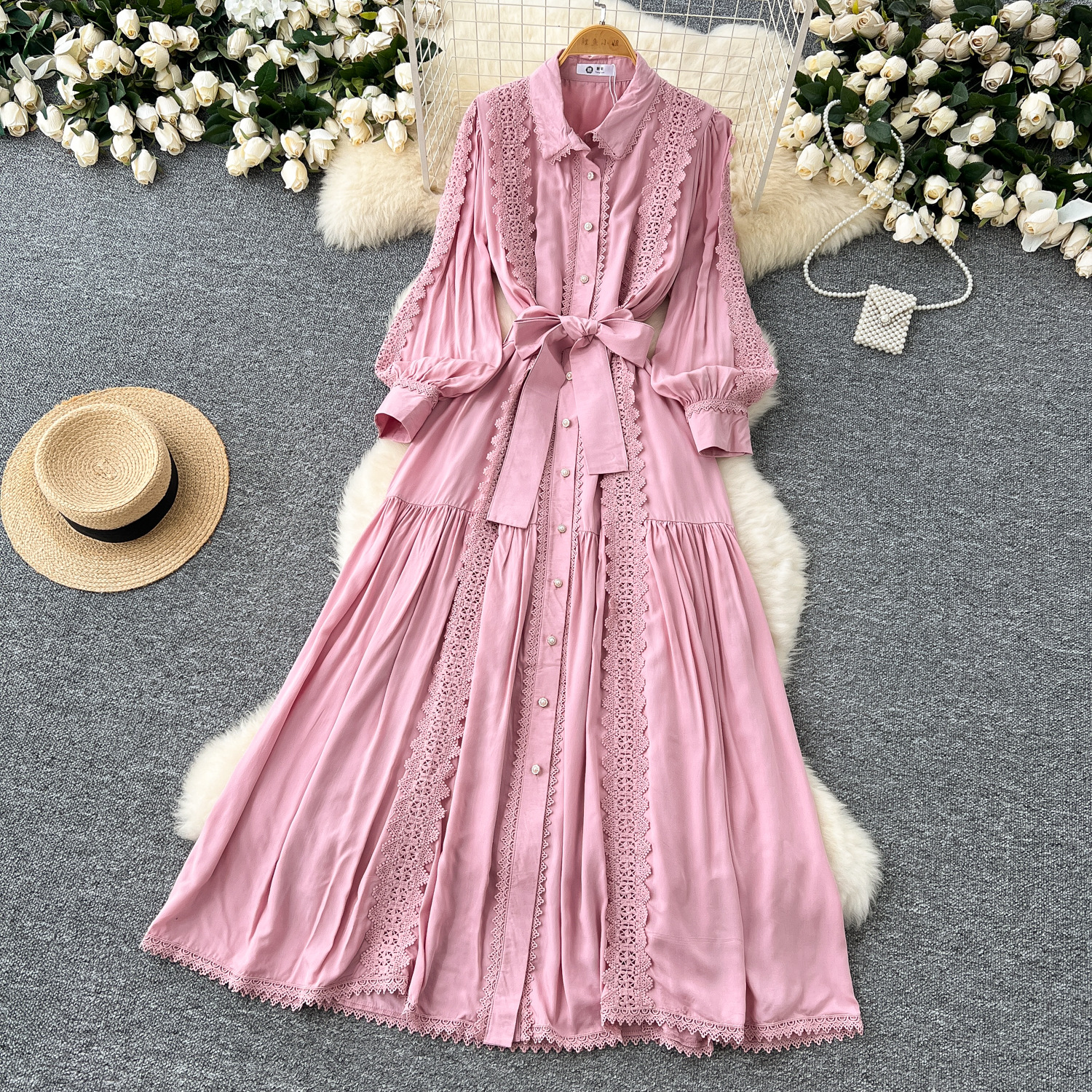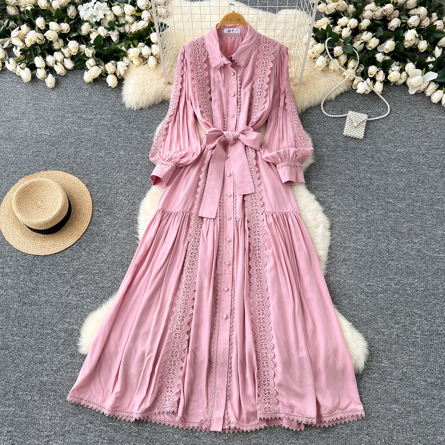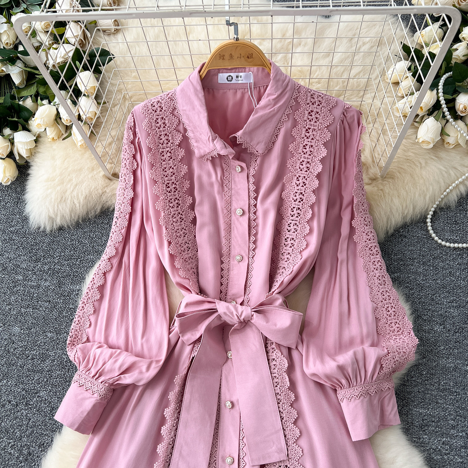 Французское элегантное платье женская осенняя леди нишевые старшее кружевное сшивание однобортное платье