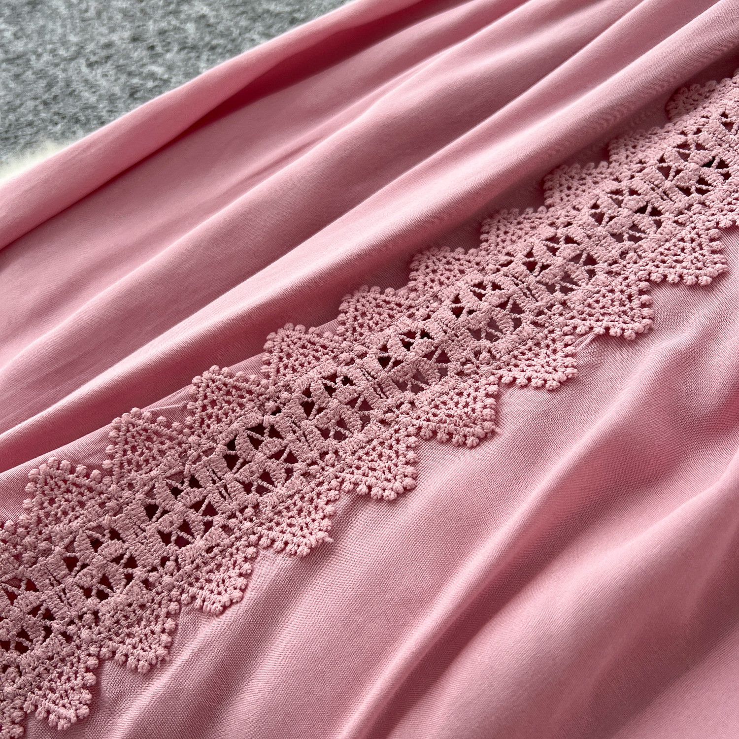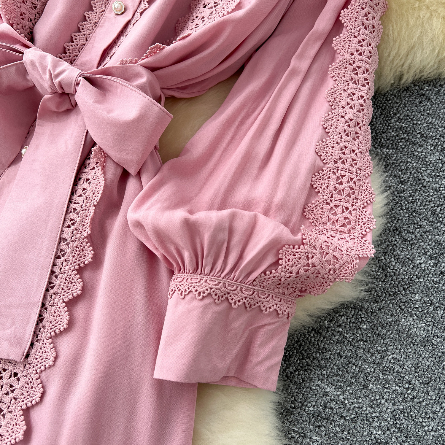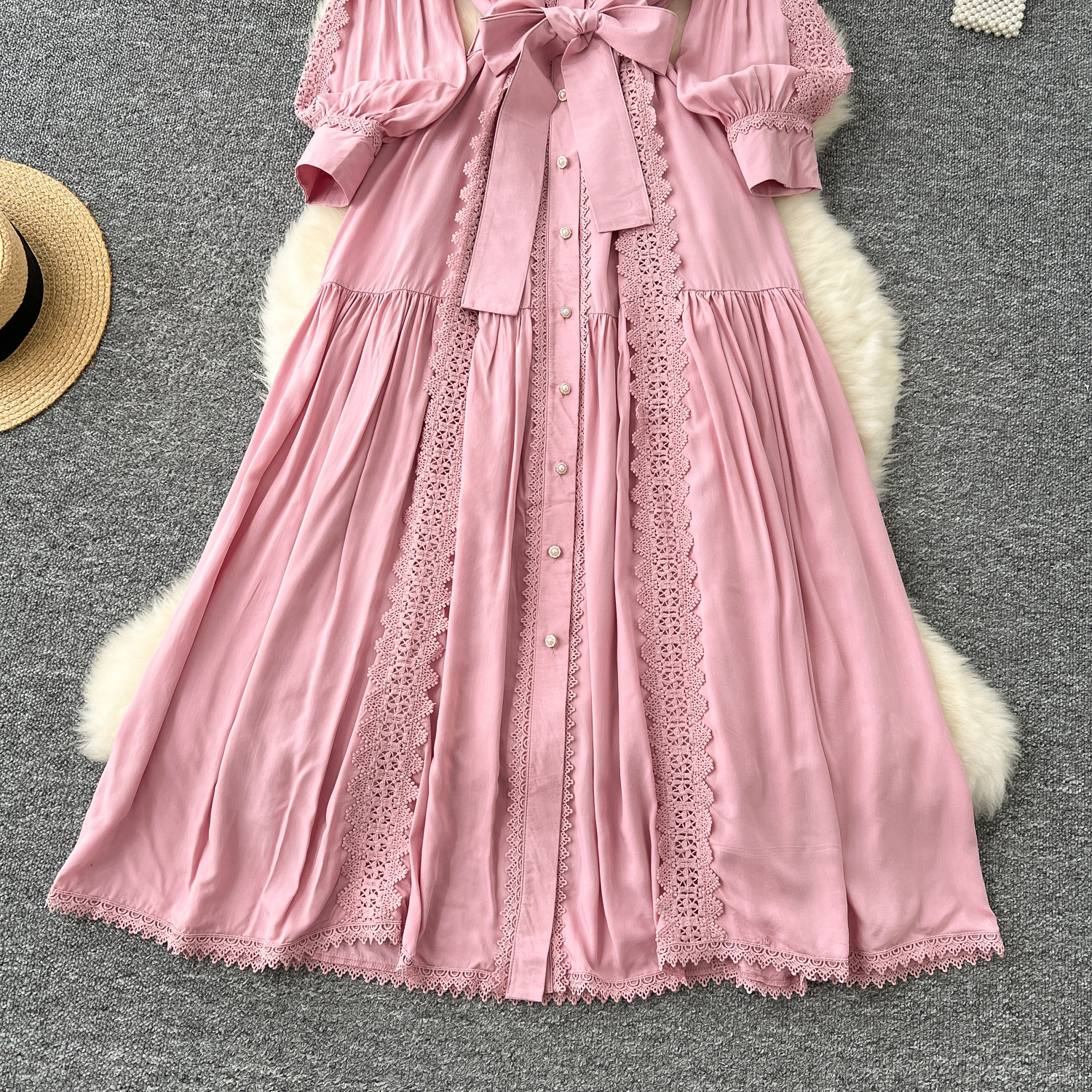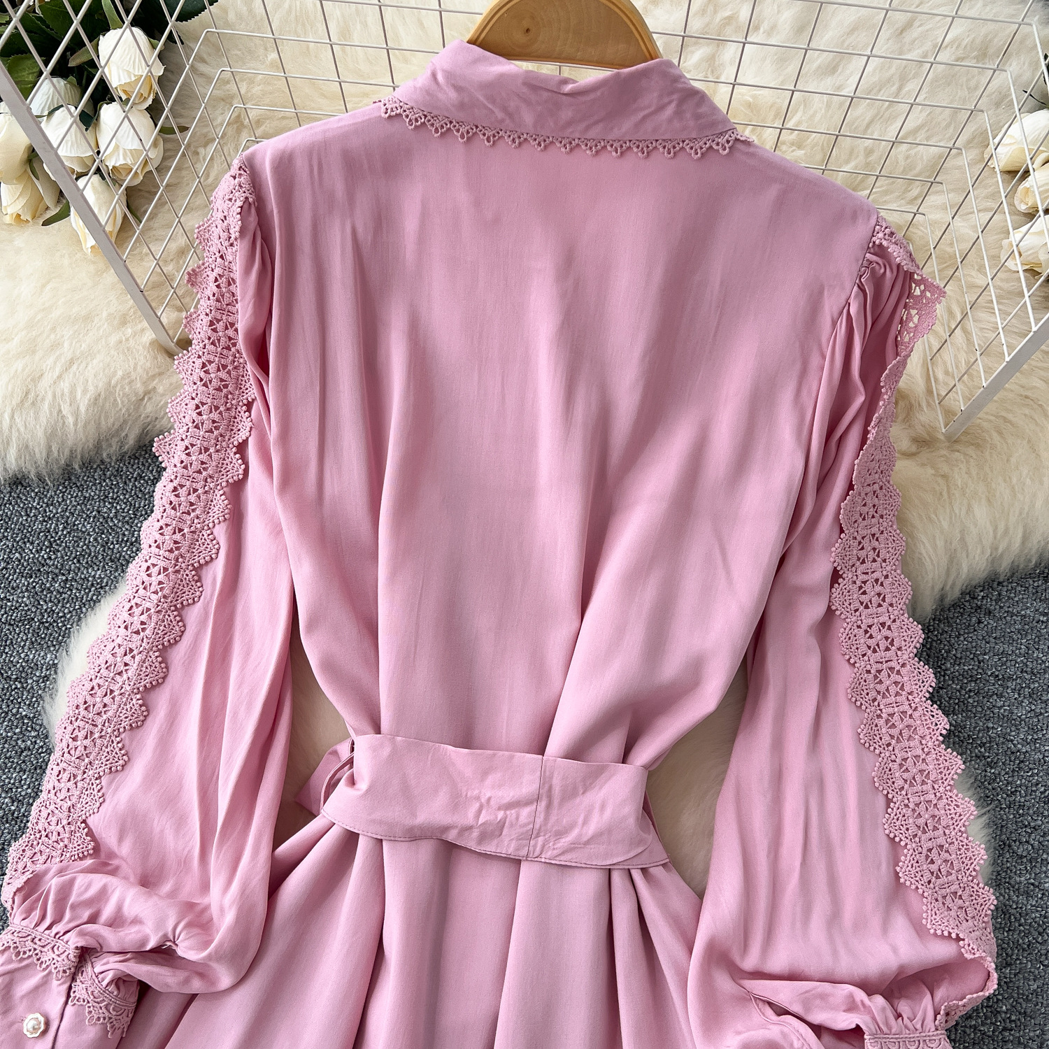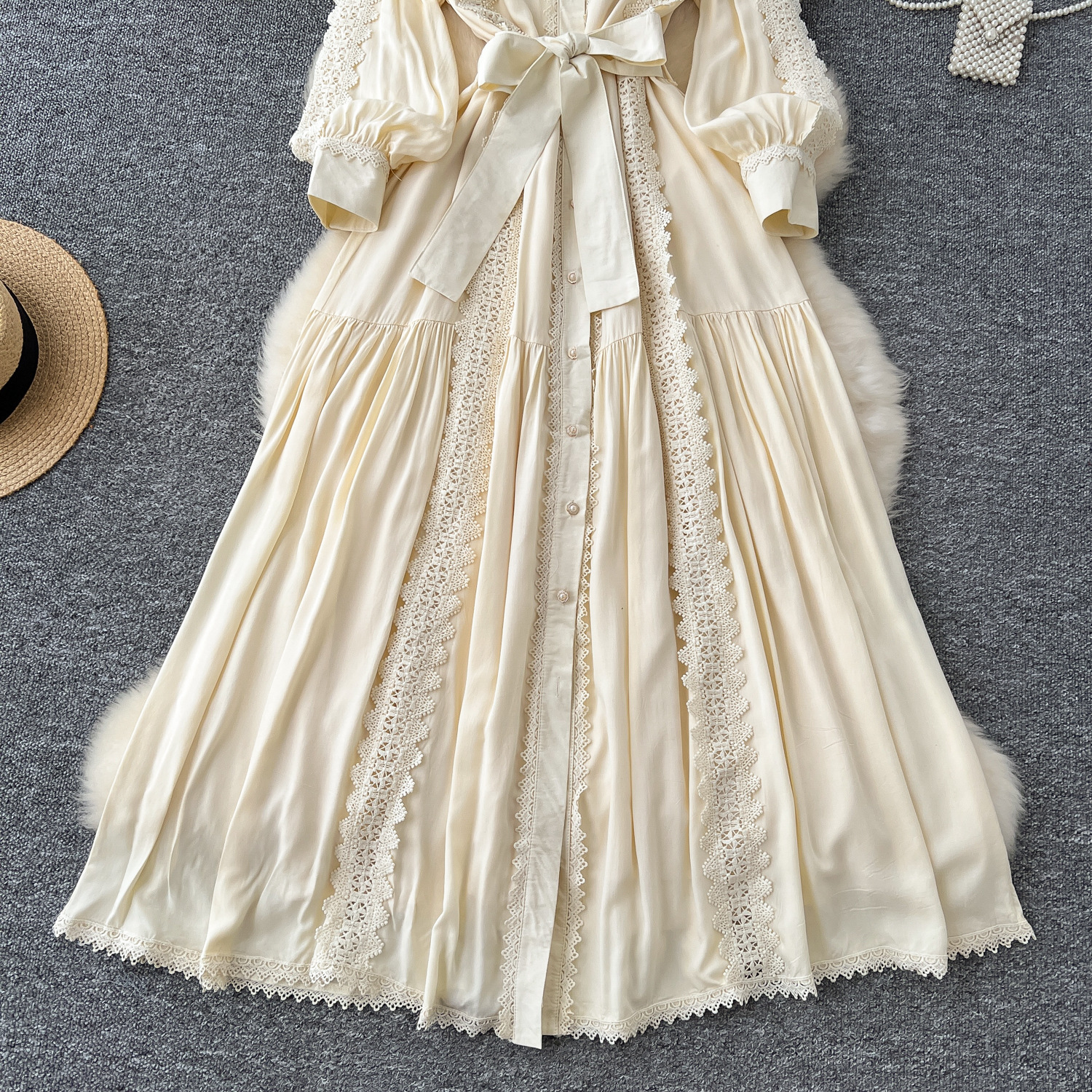 Французское элегантное платье женская осенняя леди нишевые старшее кружевное сшивание однобортное платье
