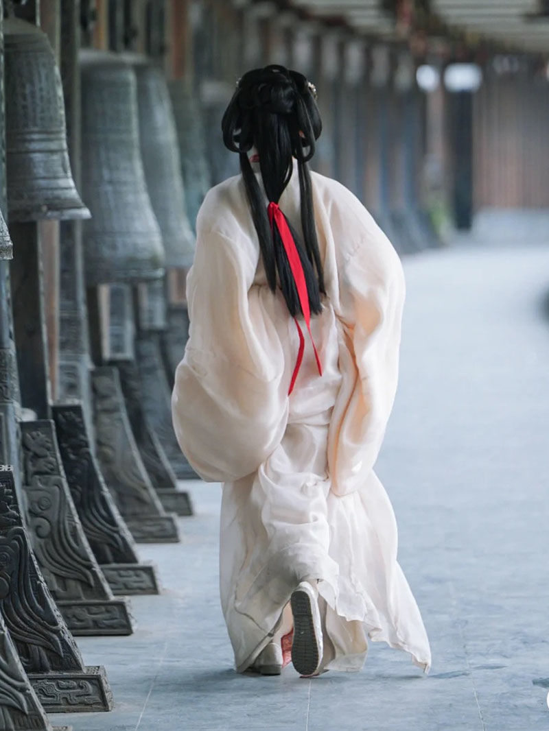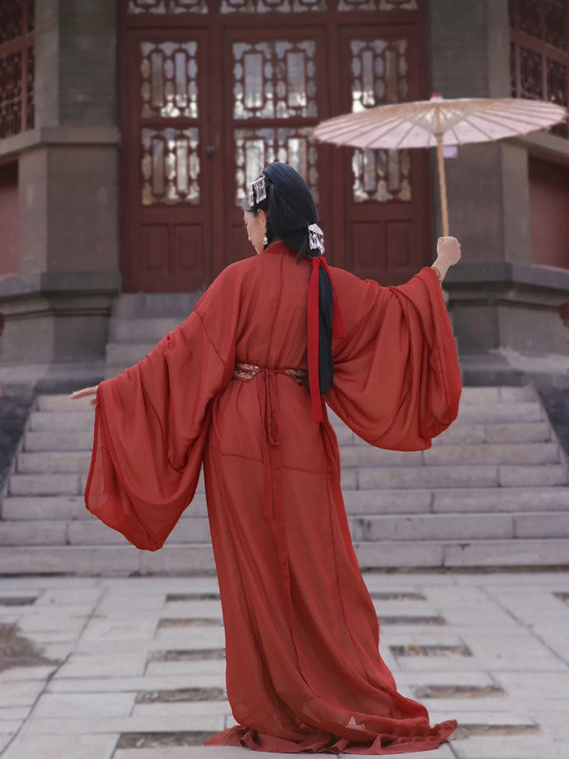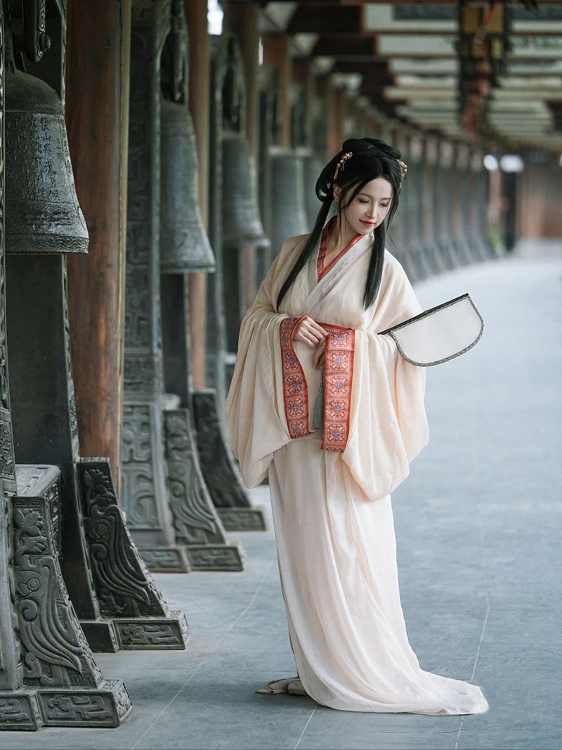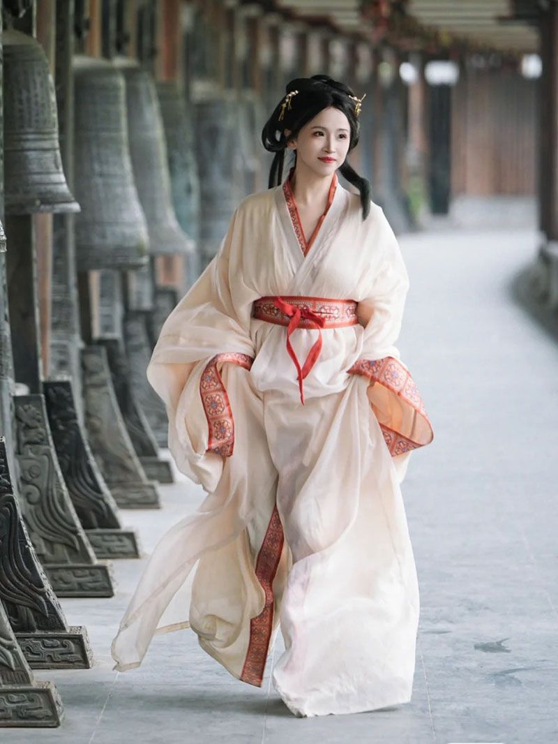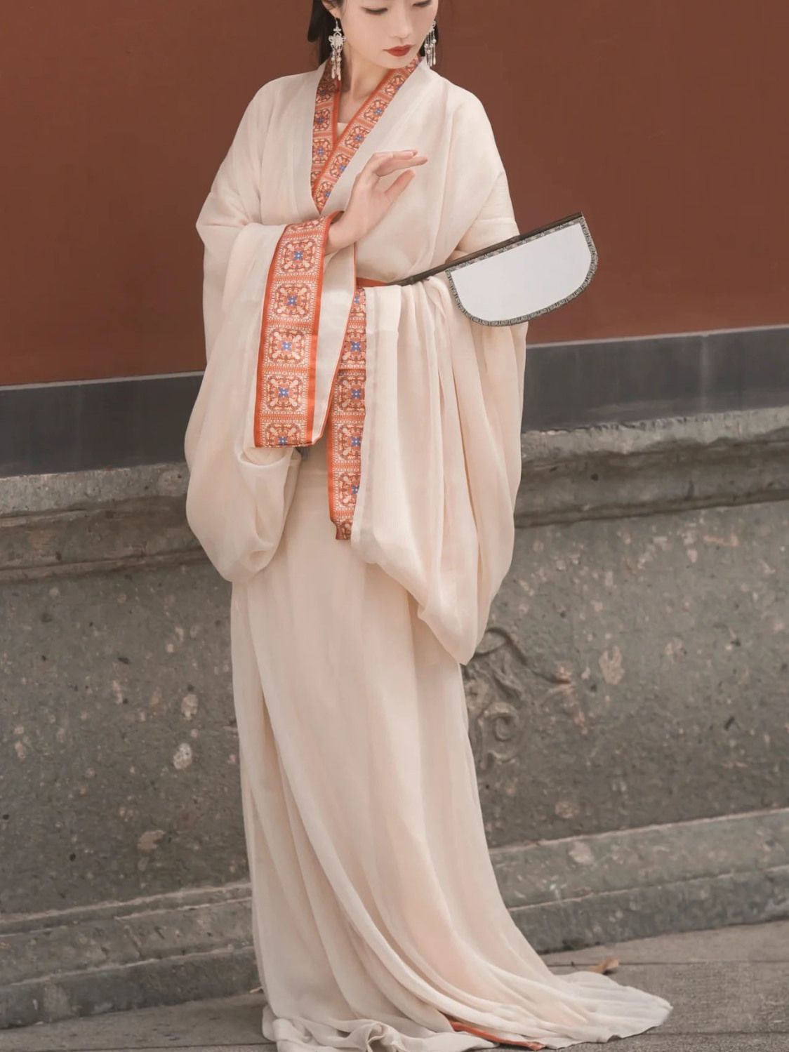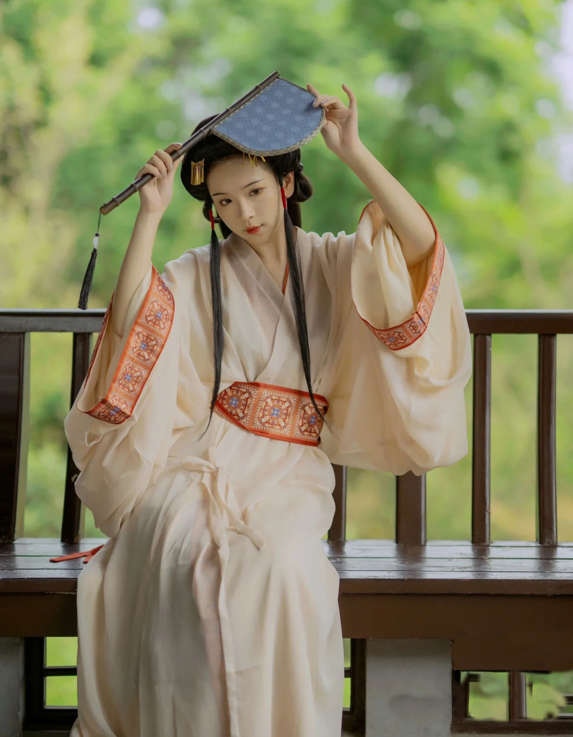 Оранжево-красная прямая юбка, цельная вещь; Прямая юбка кремового цвета, цельная; Белоснежная внутренняя прямая юбка, цельная; Оранжево-красная внешняя прямая юбка + внутренняя прямая юбка + пояс; Небелая внешняя прямая юбка + внутренняя прямая юбка + пояс