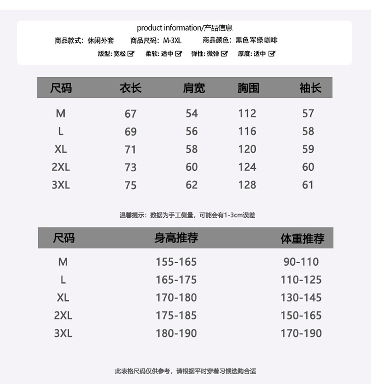 M; L; XL; 2XL; 3XL