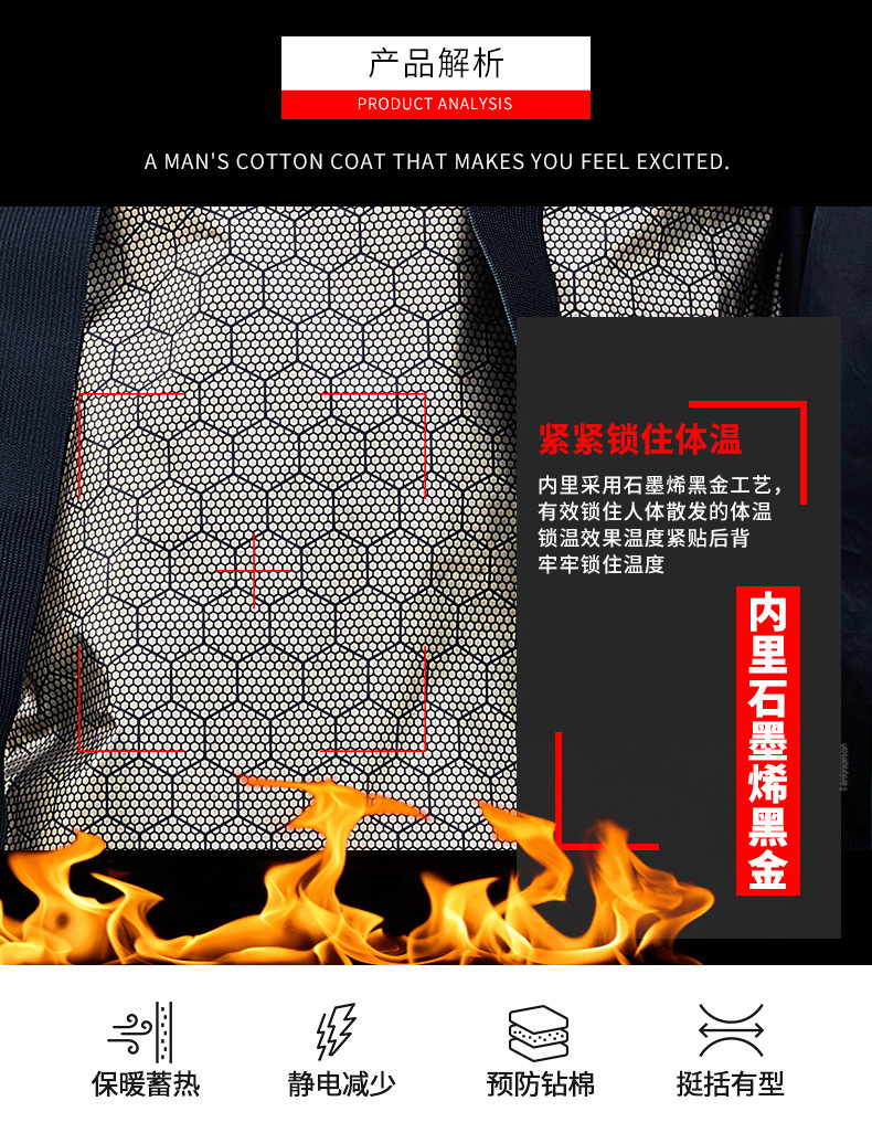Графеновая хлопчатобумажная одежда для мужчин зимняя новая утолщение теплая с капюшоном