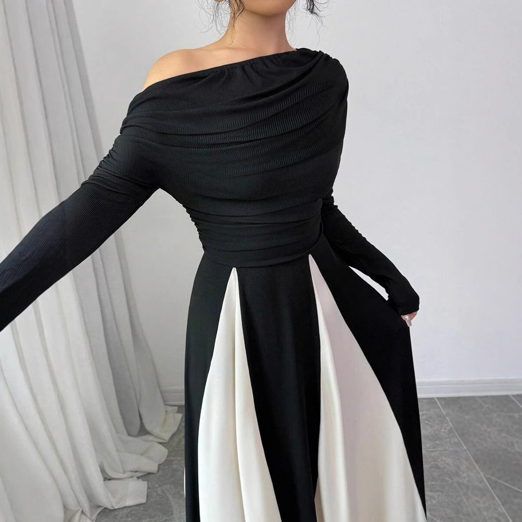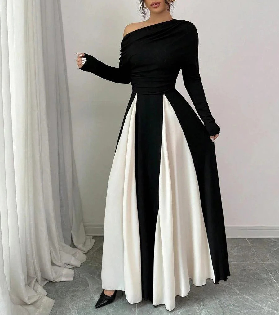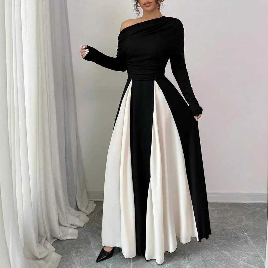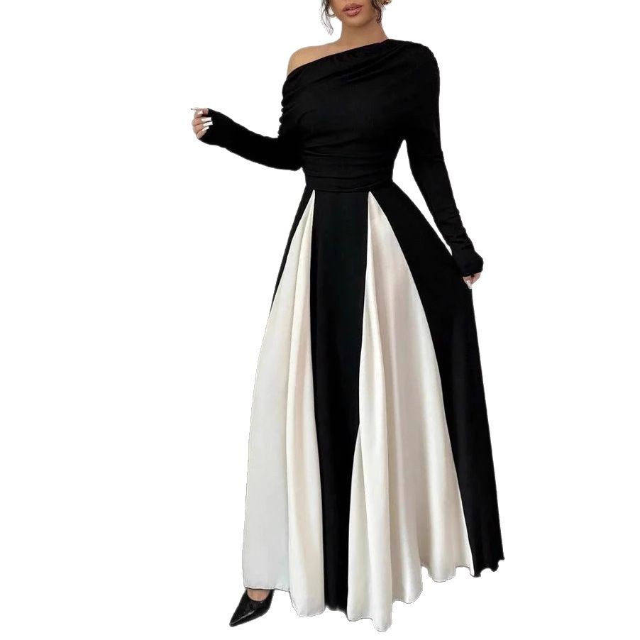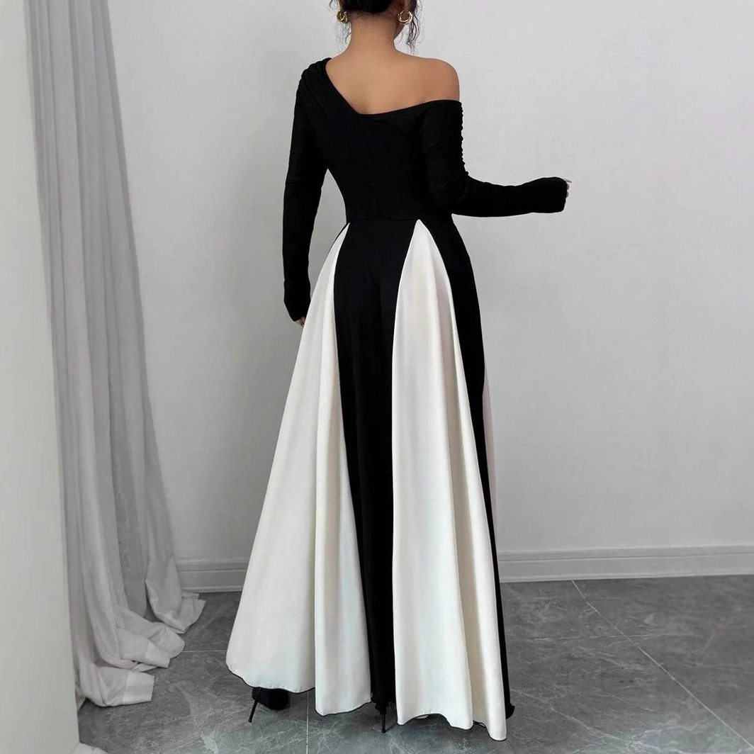 Трансграничная амазонка ужин вечеринка Женское вечернее платье облегающее A-образное платье с большой юбкой с длинными рукавами и круглым вырезом