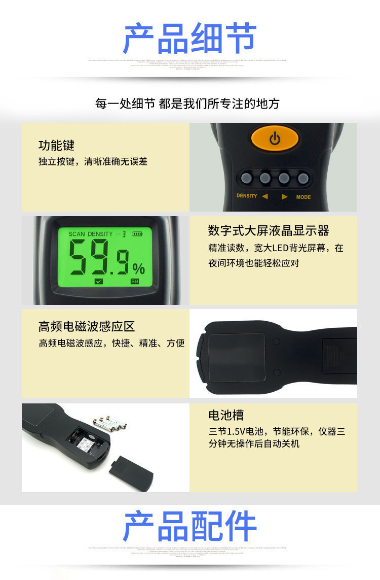 Бесконтактный измеритель влажности древесины AS981 + 3 батарейки 1,5 В