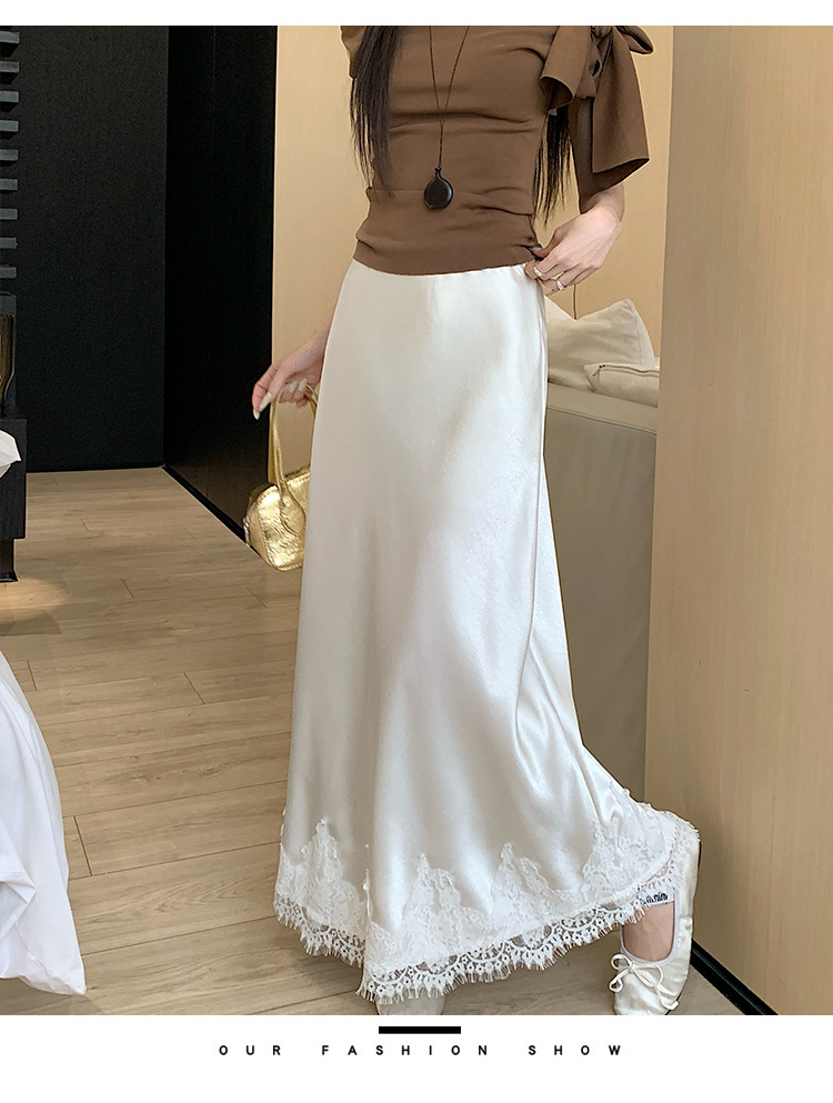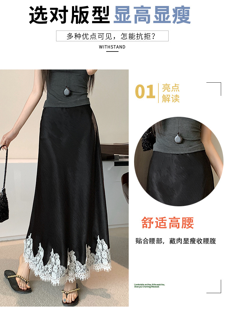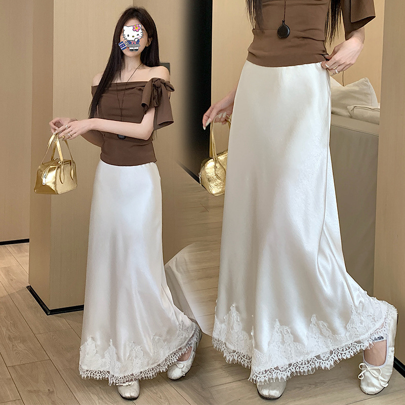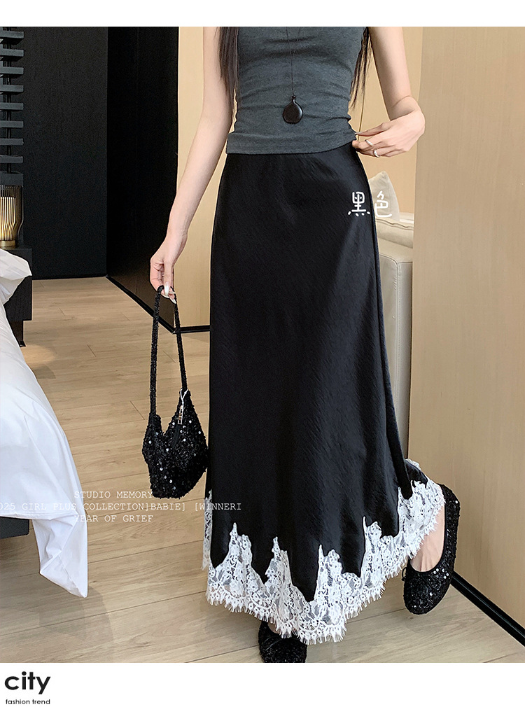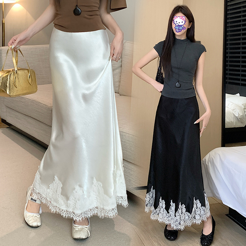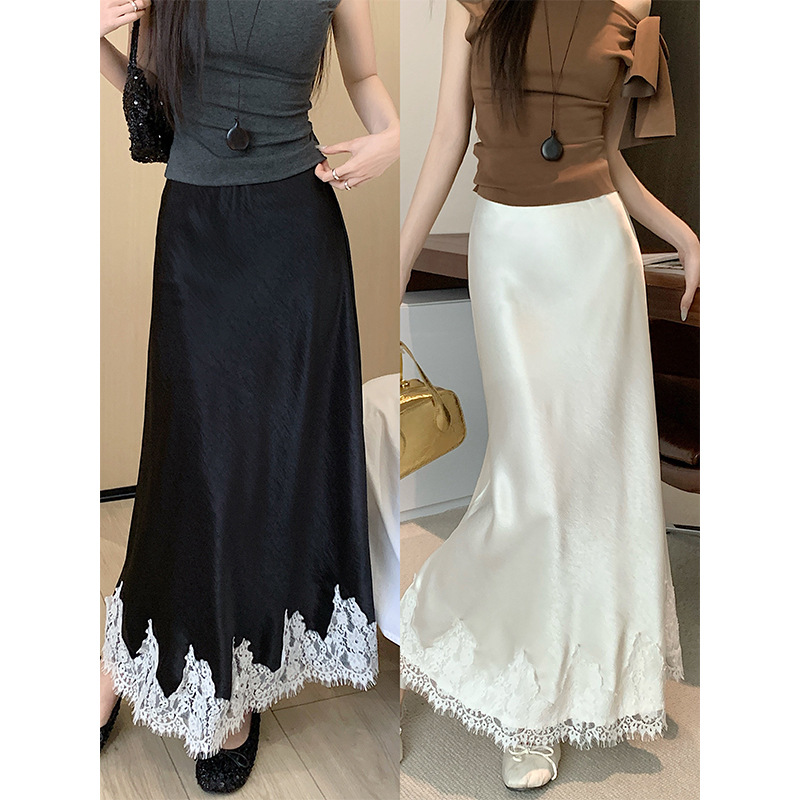 Рекордная стрельба кружевная атласная юбка с уксусной кислотой и бюстом женская весна и лето 2025 года