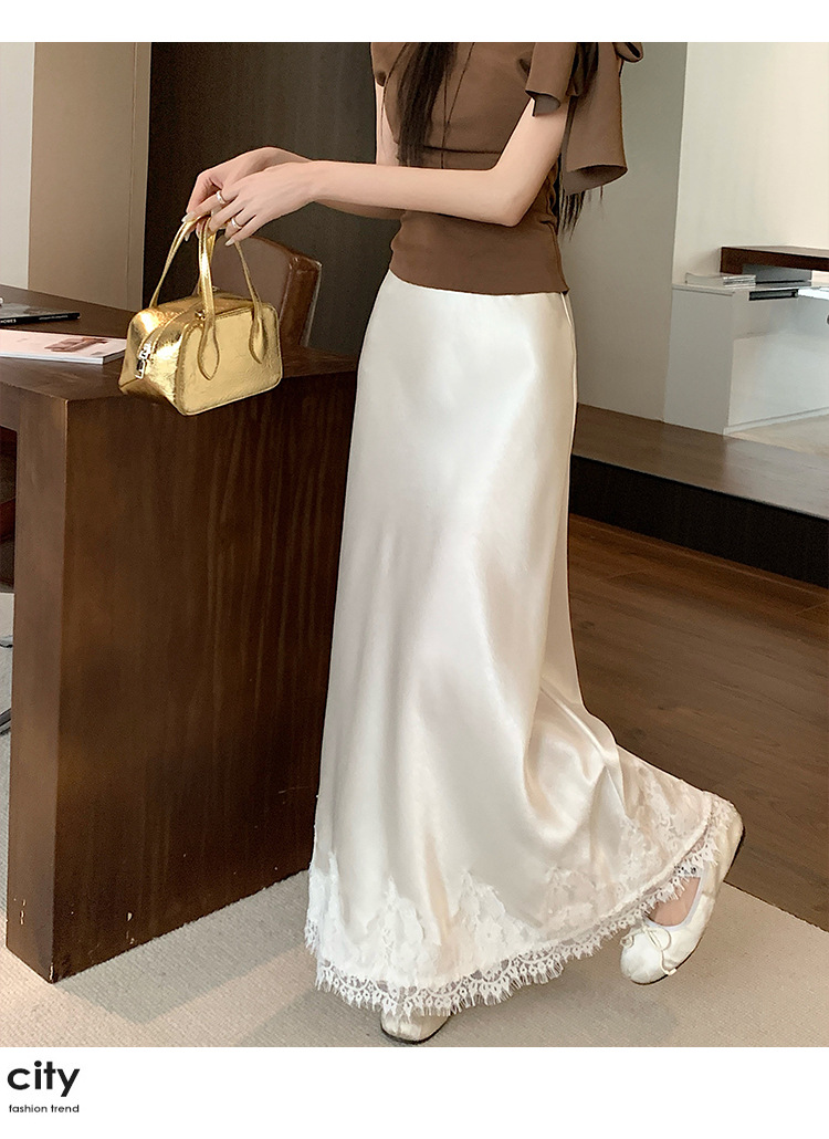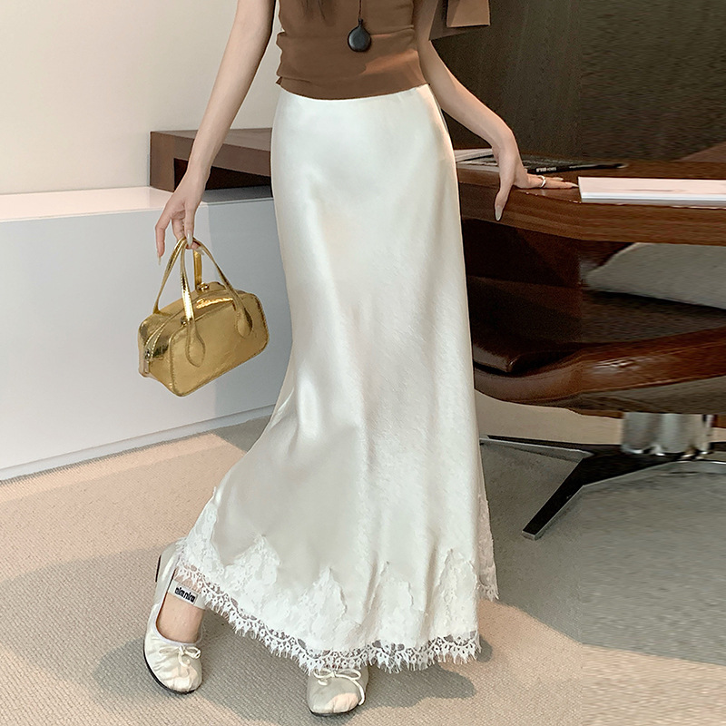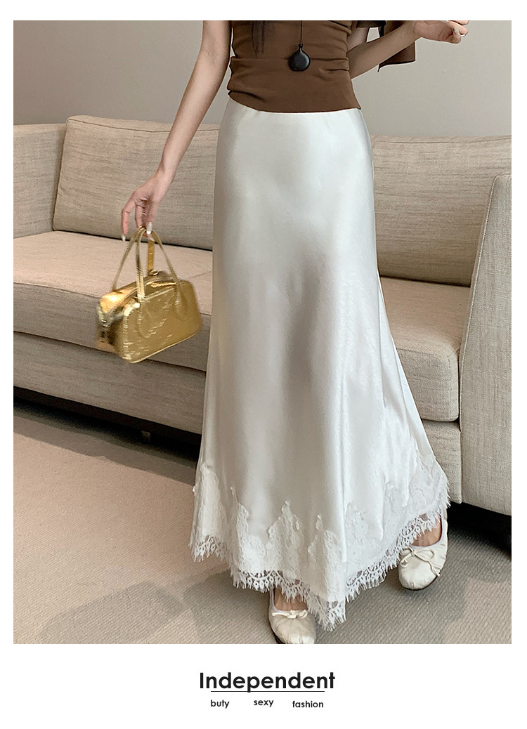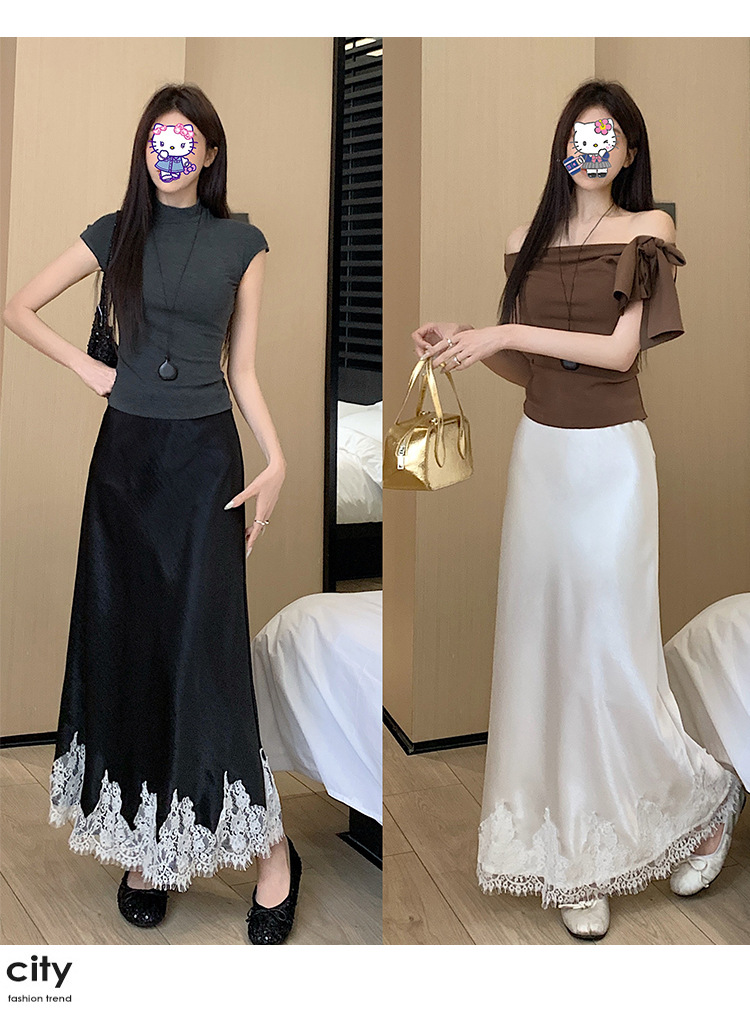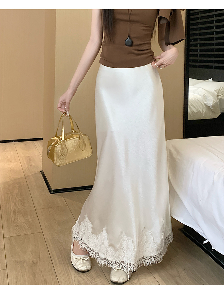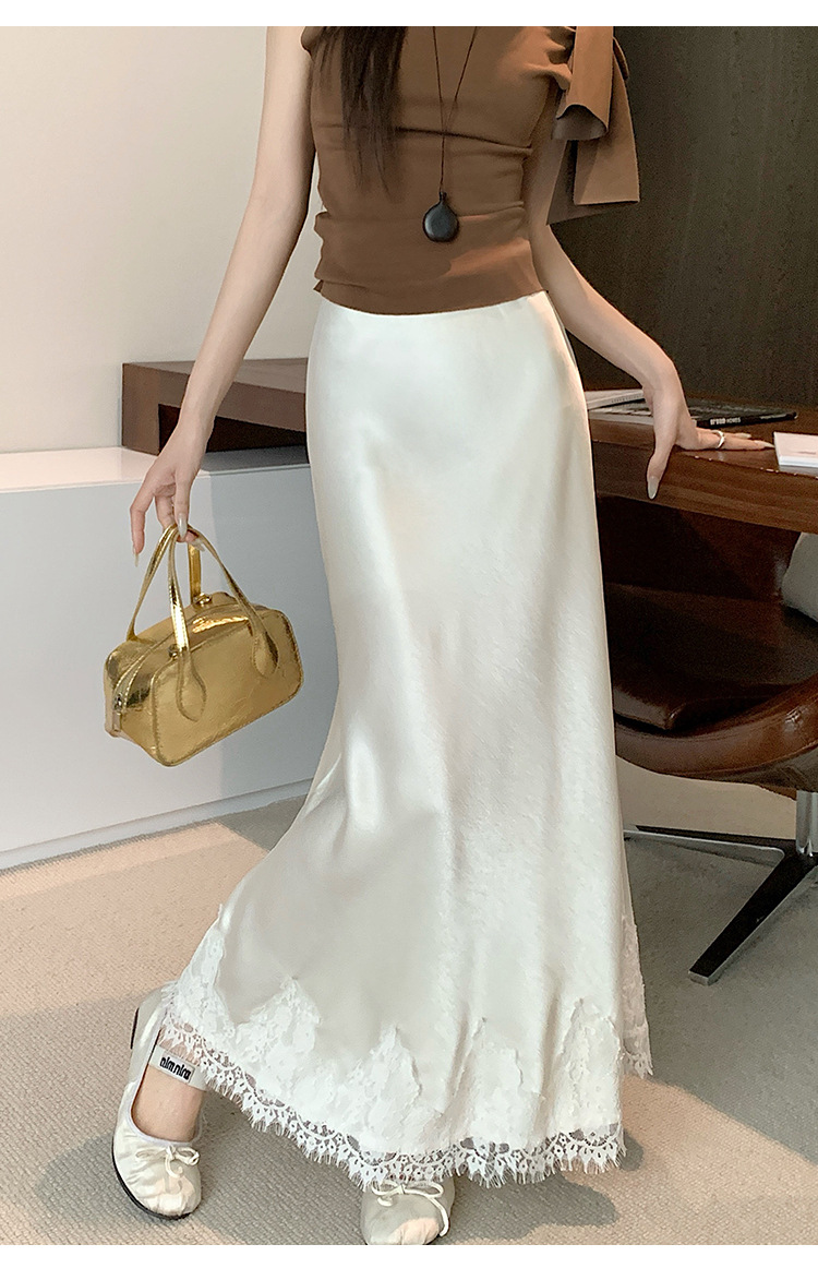 Рекордная стрельба кружевная атласная юбка с уксусной кислотой и бюстом женская весна и лето 2025 года