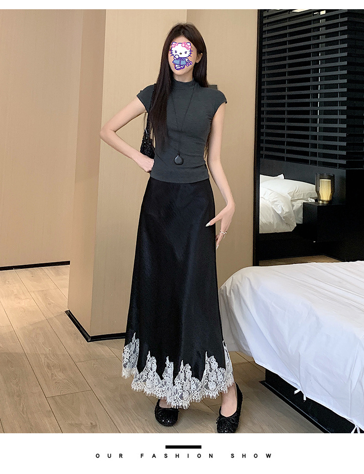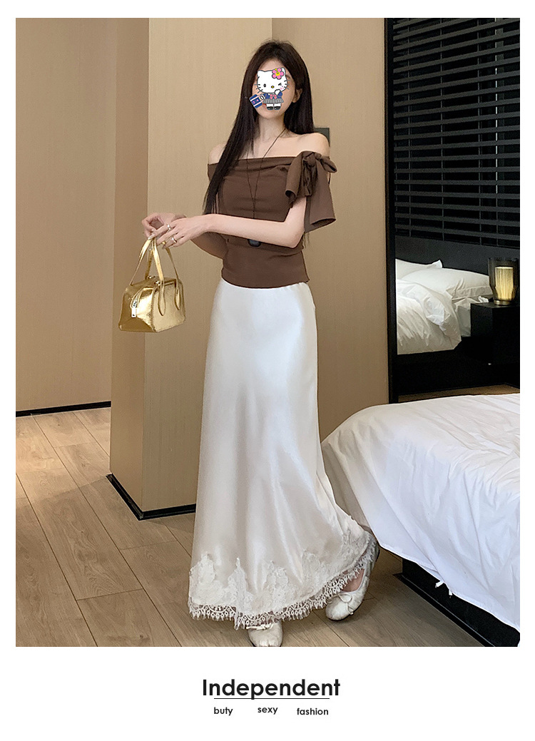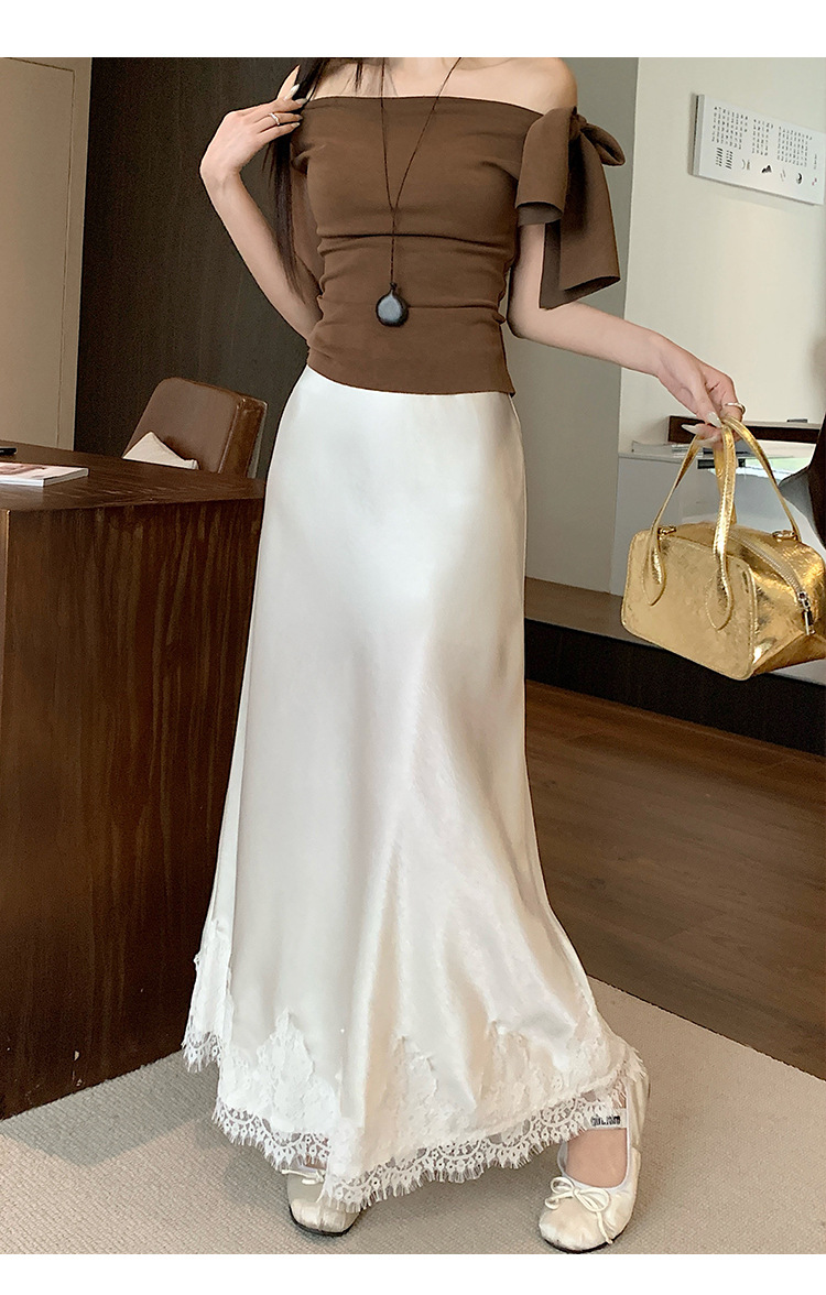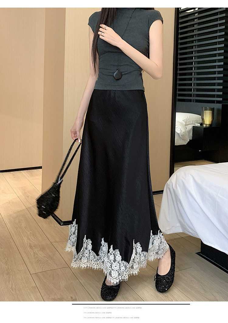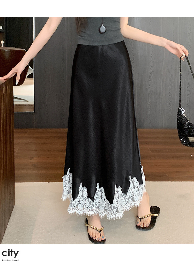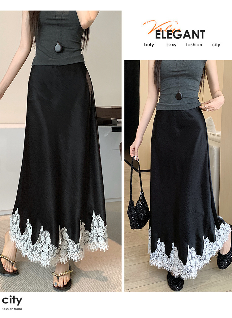 Рекордная стрельба кружевная атласная юбка с уксусной кислотой и бюстом женская весна и лето 2025 года