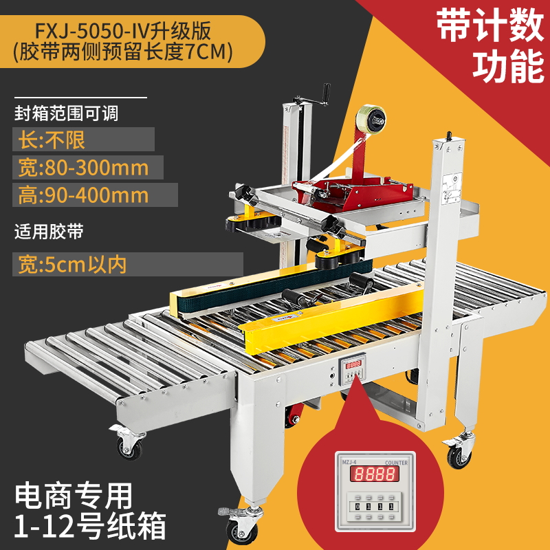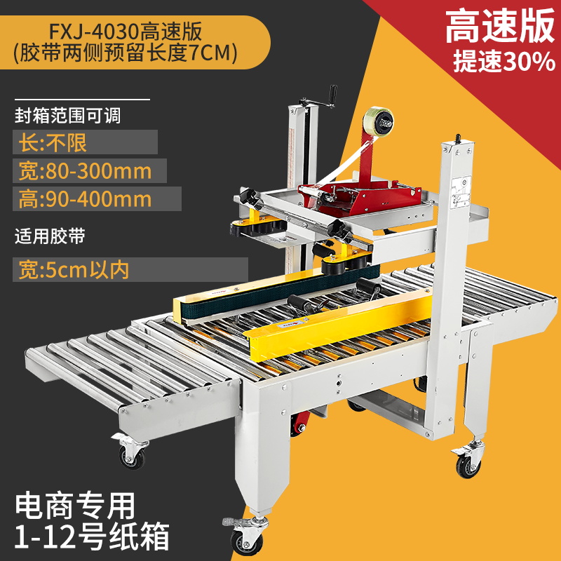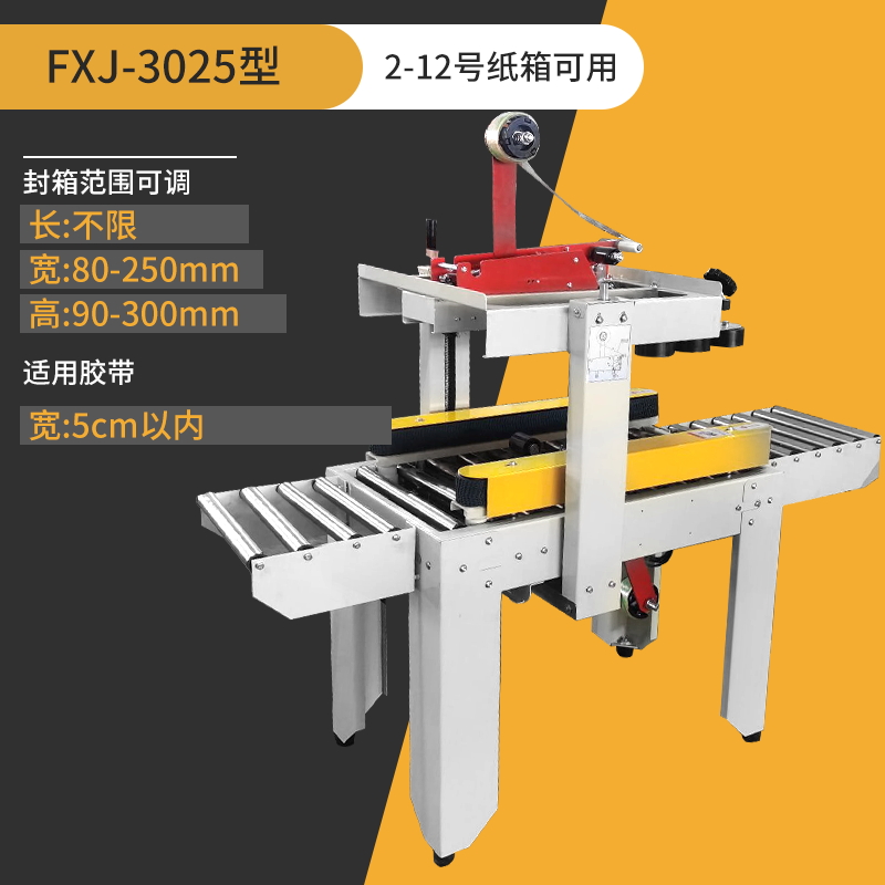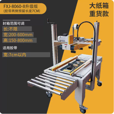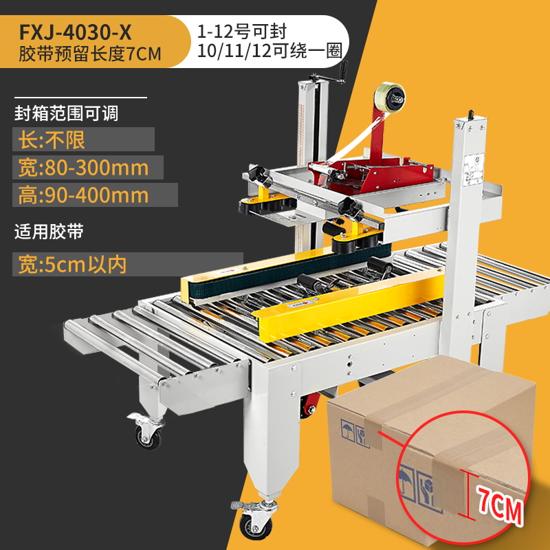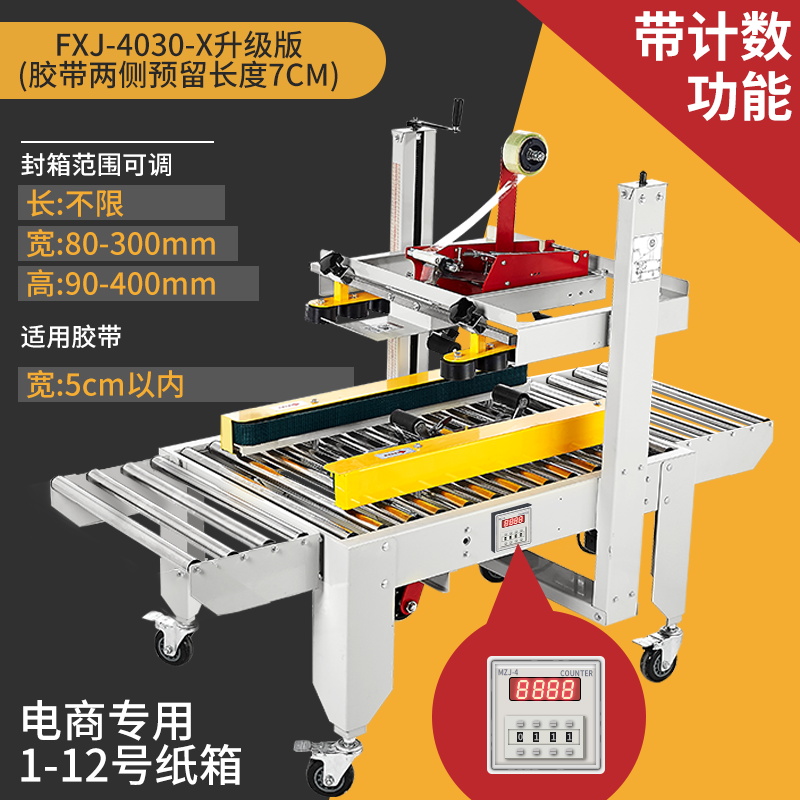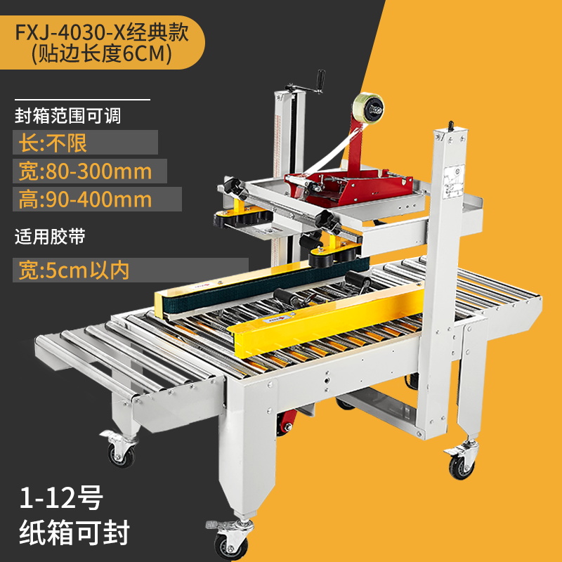 Упаковочная машина 2020 года (доступна для коробок 5-12); Тип 3025 (доступен в картонных коробках № 2-12); Классическая модель 4030-X (коробки 1-12 можно запечатать); Модернизированная версия удлиненной ленточной головки 4030-X (длина ленты 7 см, можно обматывать по кругу в коробках по 10-12 шт.); Высокоскоростная версия 4030 (скорость двигателя увеличена на 30%); 4030-X обновленная версия со счетчиком; Высокоскоростная версия 4030 со счетчиком (модернизированная скорость двигателя увеличена на 30%); Доступны ящики с номерами 1–12 (10 11 12 по кругу).; Увеличенный и расширенный (можно запечатать до 50 см в ширину и 50 см в высоту); FJX-6050II [Большой картонный груз]; Высокоскоростная версия 5050-IV, длина ленты 7cm (может запечатывать ширину и высоту до 50x50 см).; FJX-5050II [№. 2 ножевой ленты длиной 7cm ]; Карманный нож 5050 с ремнем высотой 75.; FXJ—5050 машина для запечатывания картонных коробок с левым и правым верхним приводом; Модернизированная версия большой окантовки длиной 10 см (коробки 1-6); В наличии ящик для самолета №13 (можно запечатать шириной 8см и высотой 4см); Универсальная машина для запечатывания и кодирования; Половина комплекта машины для поперечной запечатки (можно модернизировать до машины для поперечной запечатки с помощью обычной машины для запечатывания); Тип FXC-5050E (полностью автоматическая регулировка ширины и высоты); Высокоскоростная экспресс-машина с одной наклейкой (кроме запечатывающей машины); FXJ—5050Z (автоматическая складная коробка); Высокоскоростная версия экспресс-этикетировочной машины + высокоскоростная версия машины для запечатывания картонных коробок; Комбинация перекрестного запечатывания (может запечатывать коробки № 12); Машина для запечатывания угловых кромок FXJ-555H; Движение запечатывающей машины; Машина для запечатывания картонных коробок 6060 (максимальная ширина запечатывания 60 см и высота 60 см); Машина для запечатывания картонных коробок 7070 (максимальная ширина запечатывания 70 см и высота 70 см); 4030 Картонная машина с неправильным перемещением слотов (минимальная высота запечатывания 4cm коробок); Упаковочная машина для верхнего и нижнего привода 8060 (четыре привода могут запечатывать тяжелые грузы)