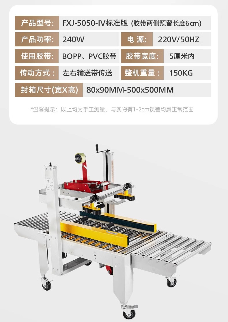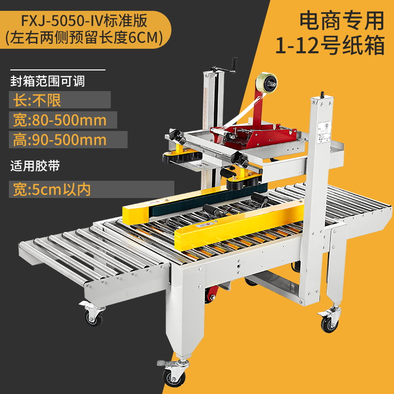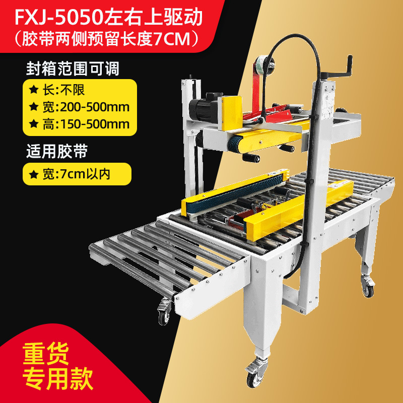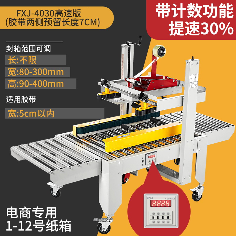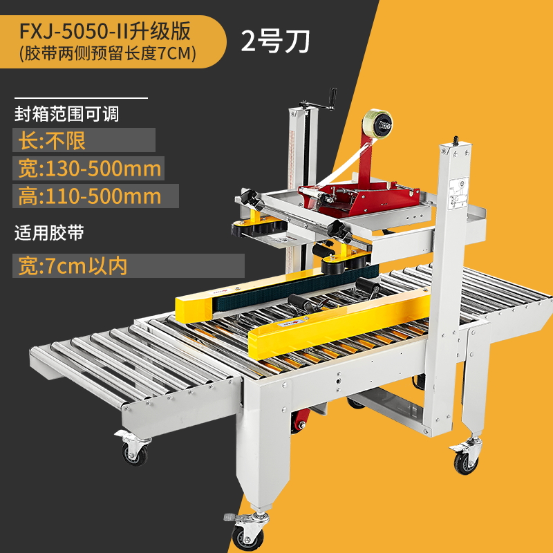 Упаковочная машина 2020 года (доступна для коробок 5-12); Тип 3025 (доступен в картонных коробках № 2-12); Классическая модель 4030-X (коробки 1-12 можно запечатать); Модернизированная версия удлиненной ленточной головки 4030-X (длина ленты 7 см, можно обматывать по кругу в коробках по 10-12 шт.); Высокоскоростная версия 4030 (скорость двигателя увеличена на 30%); 4030-X обновленная версия со счетчиком; Высокоскоростная версия 4030 со счетчиком (модернизированная скорость двигателя увеличена на 30%); Доступны ящики с номерами 1–12 (10 11 12 по кругу).; Увеличенный и расширенный (можно запечатать до 50 см в ширину и 50 см в высоту); FJX-6050II [Большой картонный груз]; Высокоскоростная версия 5050-IV, длина ленты 7cm (может запечатывать ширину и высоту до 50x50 см).; FJX-5050II [№. 2 ножевой ленты длиной 7cm ]; Карманный нож 5050 с ремнем высотой 75.; FXJ—5050 машина для запечатывания картонных коробок с левым и правым верхним приводом; Модернизированная версия большой окантовки длиной 10 см (коробки 1-6); В наличии ящик для самолета №13 (можно запечатать шириной 8см и высотой 4см); Универсальная машина для запечатывания и кодирования; Половина комплекта машины для поперечной запечатки (можно модернизировать до машины для поперечной запечатки с помощью обычной машины для запечатывания); Тип FXC-5050E (полностью автоматическая регулировка ширины и высоты); Высокоскоростная экспресс-машина с одной наклейкой (кроме запечатывающей машины); FXJ—5050Z (автоматическая складная коробка); Высокоскоростная версия экспресс-этикетировочной машины + высокоскоростная версия машины для запечатывания картонных коробок; Комбинация перекрестного запечатывания (может запечатывать коробки № 12); Машина для запечатывания угловых кромок FXJ-555H; Движение запечатывающей машины; Машина для запечатывания картонных коробок 6060 (максимальная ширина запечатывания 60 см и высота 60 см); Машина для запечатывания картонных коробок 7070 (максимальная ширина запечатывания 70 см и высота 70 см); 4030 Картонная машина с неправильным перемещением слотов (минимальная высота запечатывания 4cm коробок); Упаковочная машина для верхнего и нижнего привода 8060 (четыре привода могут запечатывать тяжелые грузы)
