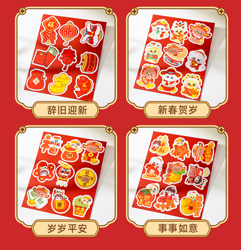 Все идет хорошо (9 шт/лист); Удачный и процветающий (9 шт/лист); Новогодние поздравления (9 шт/лист); С Новым годом (9 шт/лист)