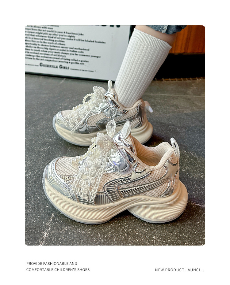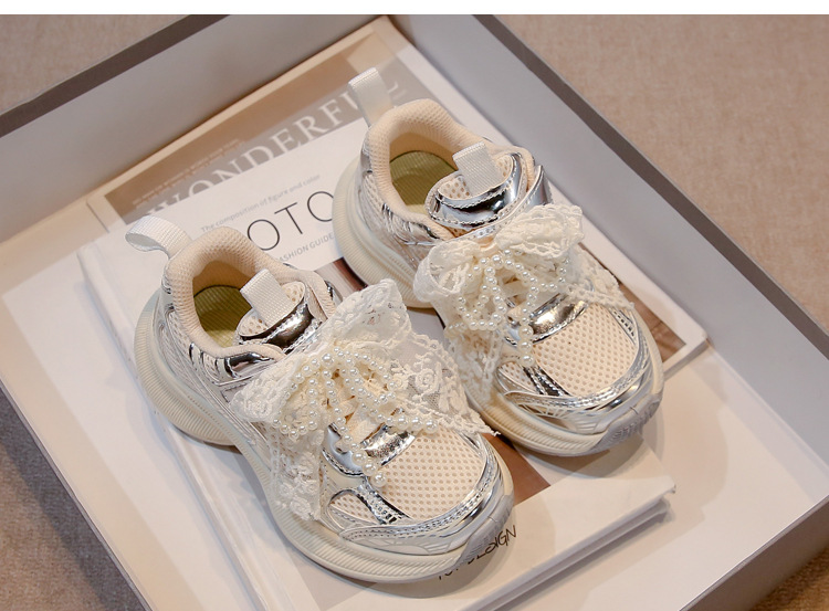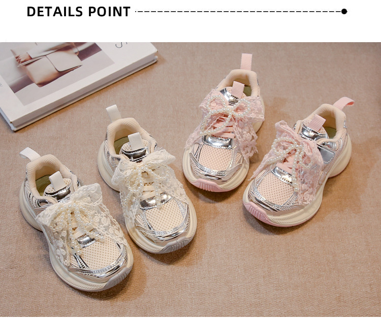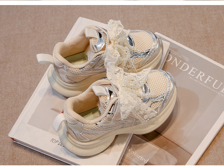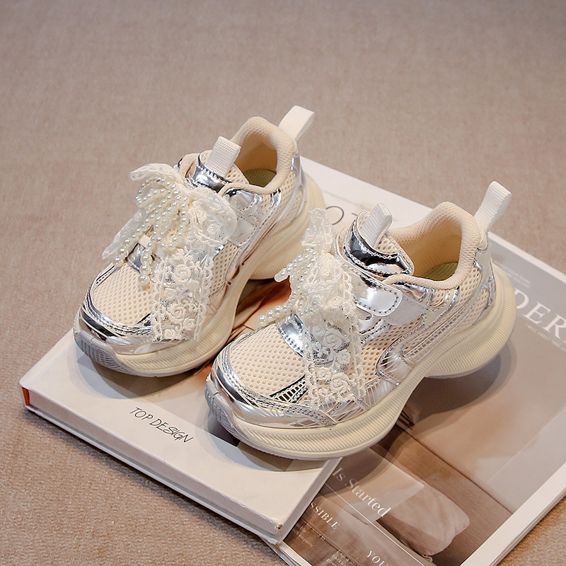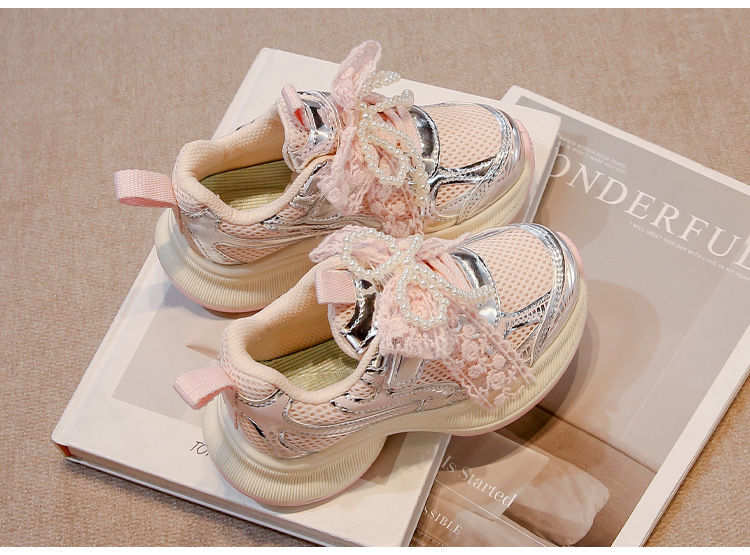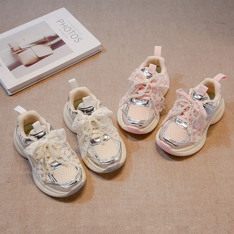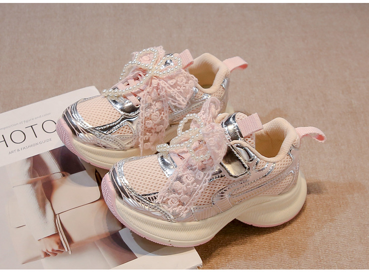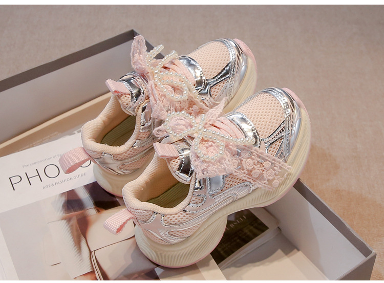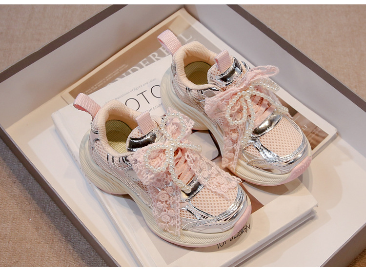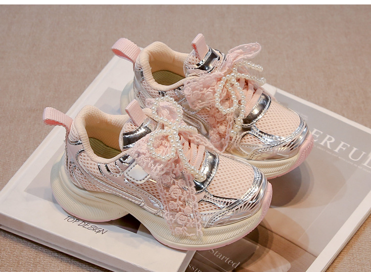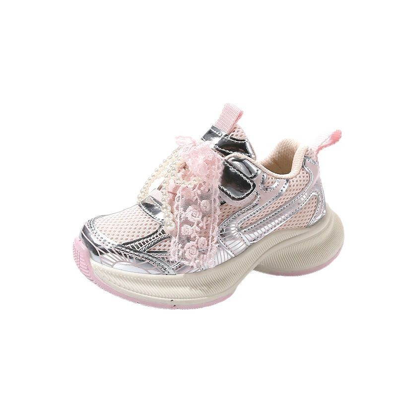 Спортивная обувь для девочек 2025 весна и осень новая корейская версия жемчужная обувь с бантом для детей сетчатая повседневная обувь для бега