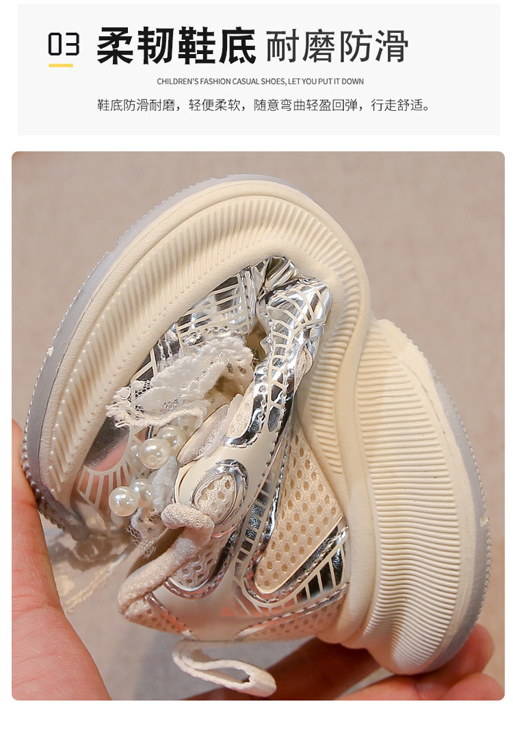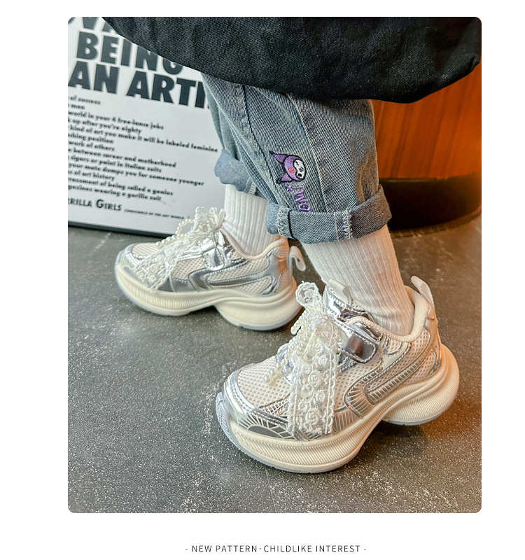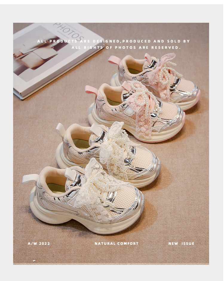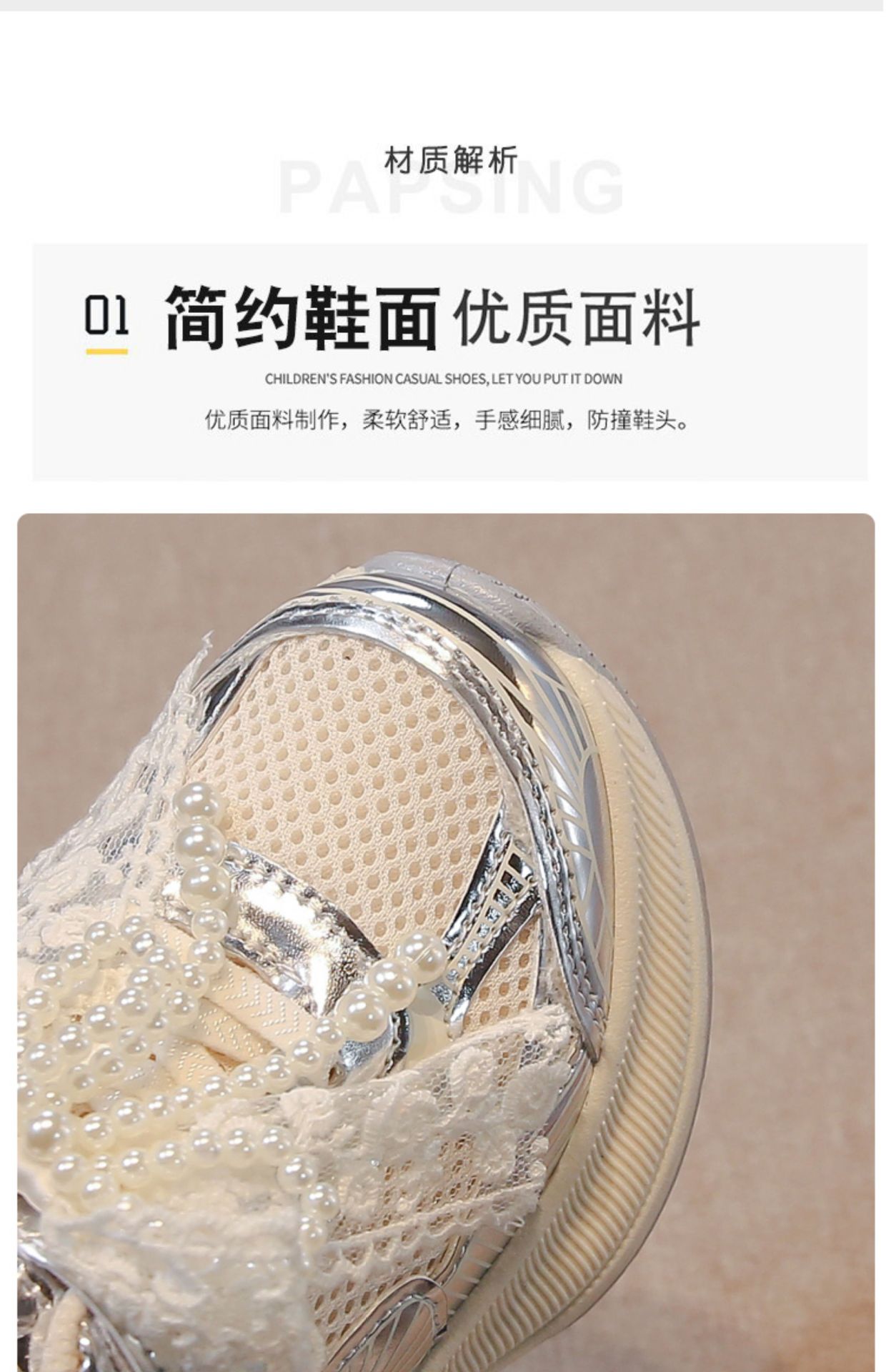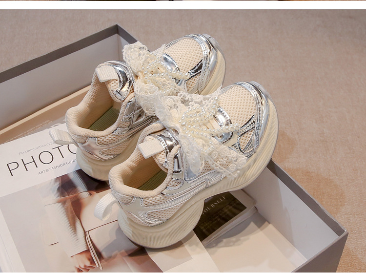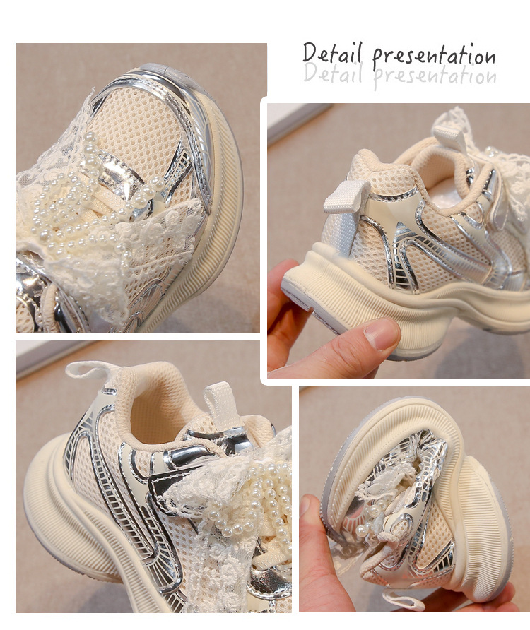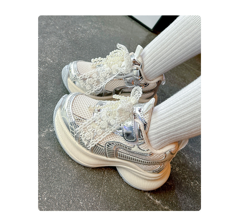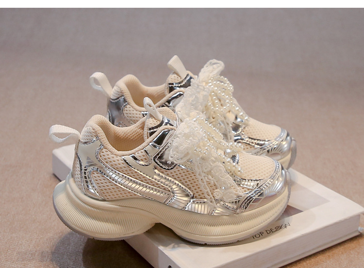 Спортивная обувь для девочек 2025 весна и осень новая корейская версия жемчужная обувь с бантом для детей сетчатая повседневная обувь для бега