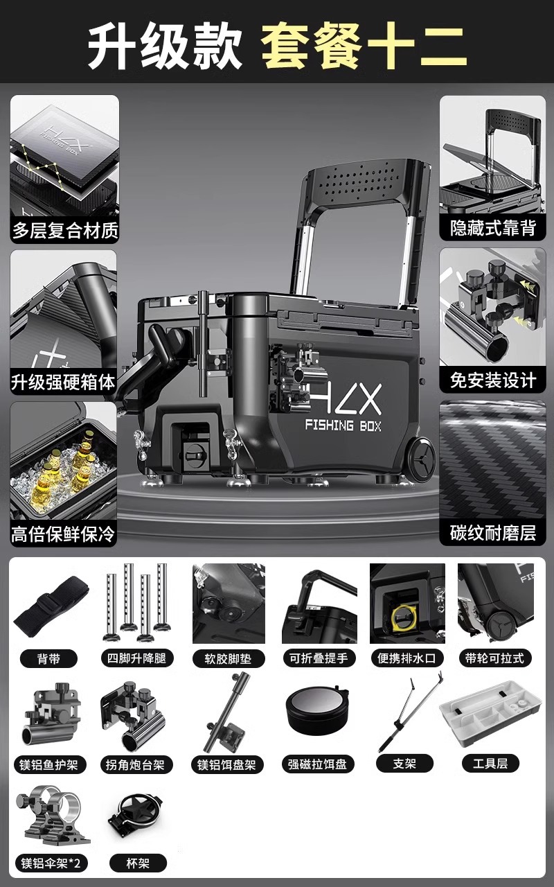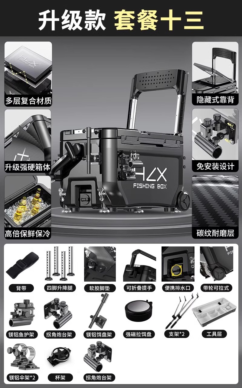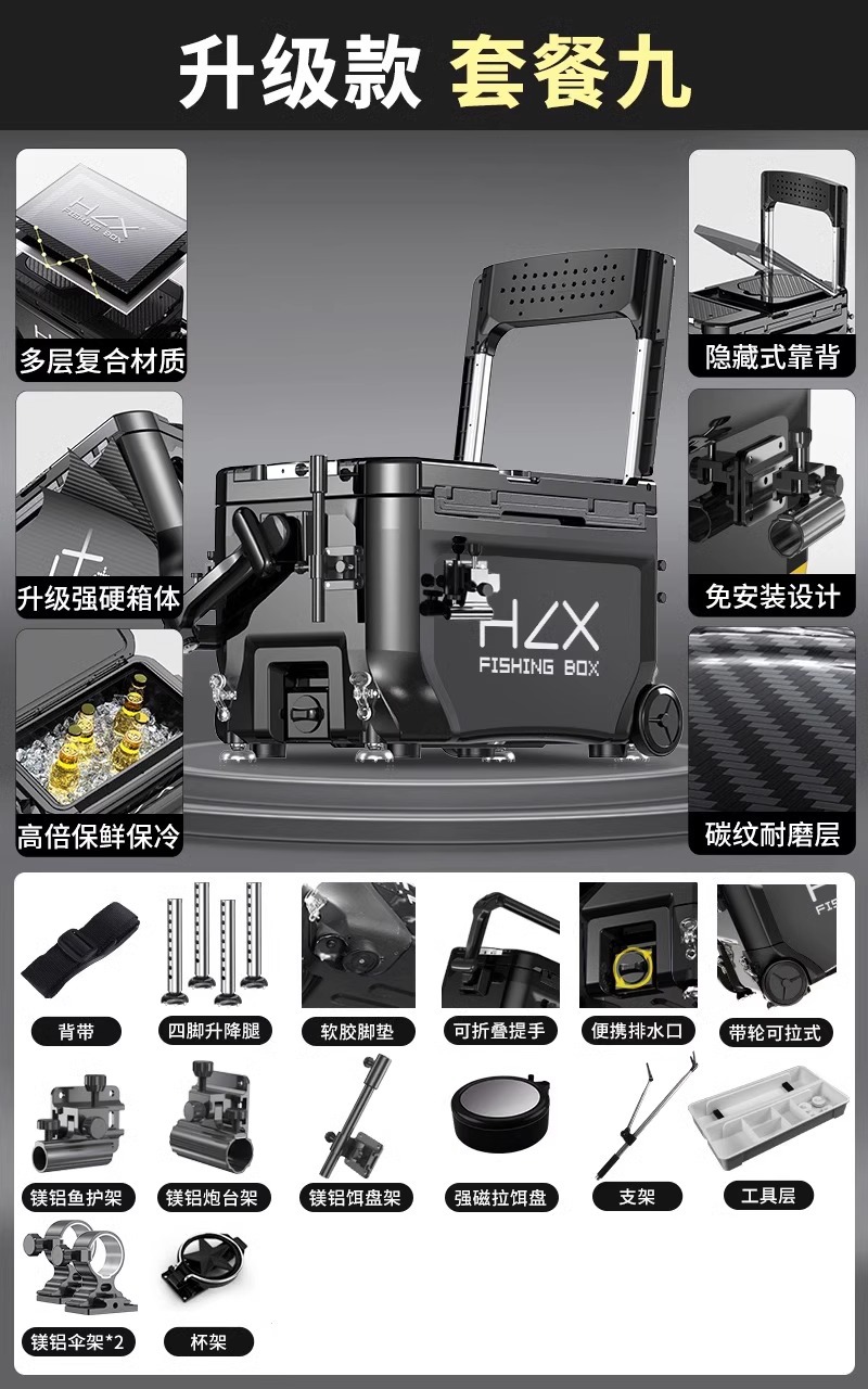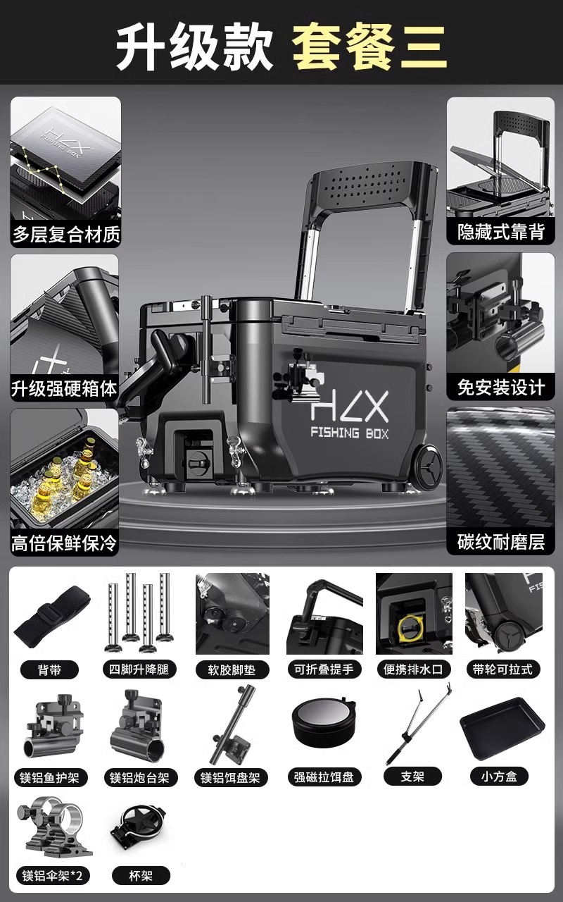 Получите наклейку на рыболовный ящик при оформлении заказа! √Пожизненная гарантия❤Молниеносная доставка❤Модернизированный композитный материал √ [Композитный углерод] черный с колесами (трехсекционный комплект из магниевого алюминия) [Композитный