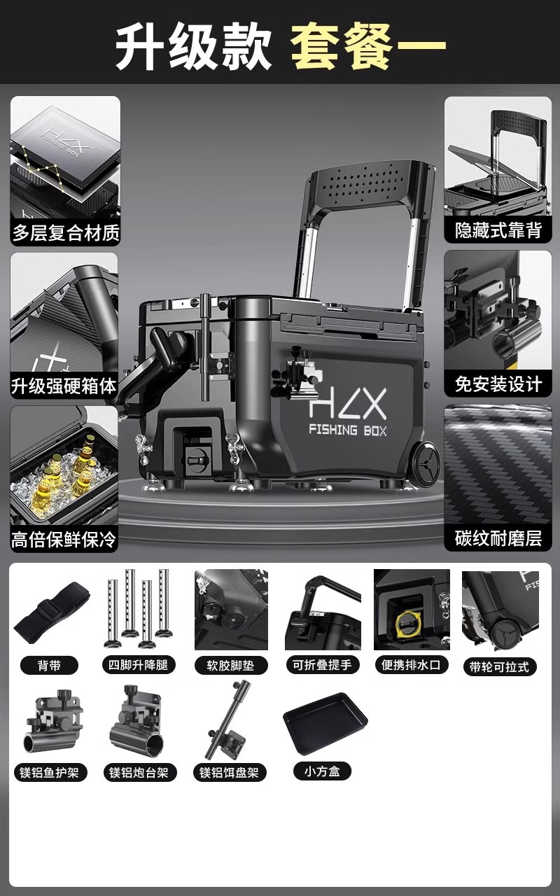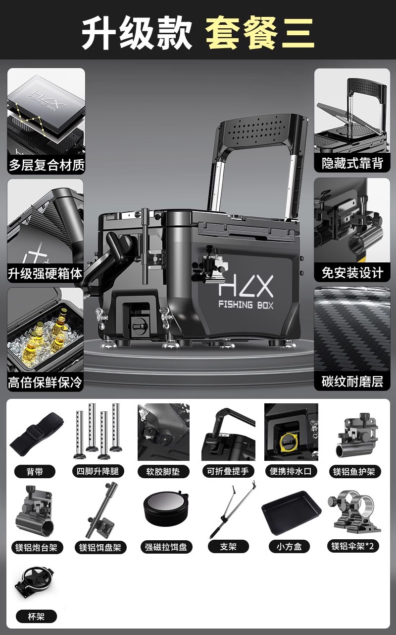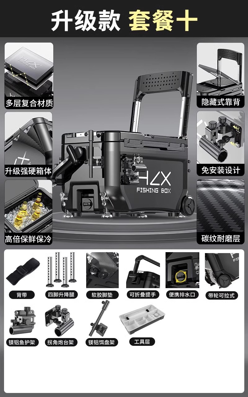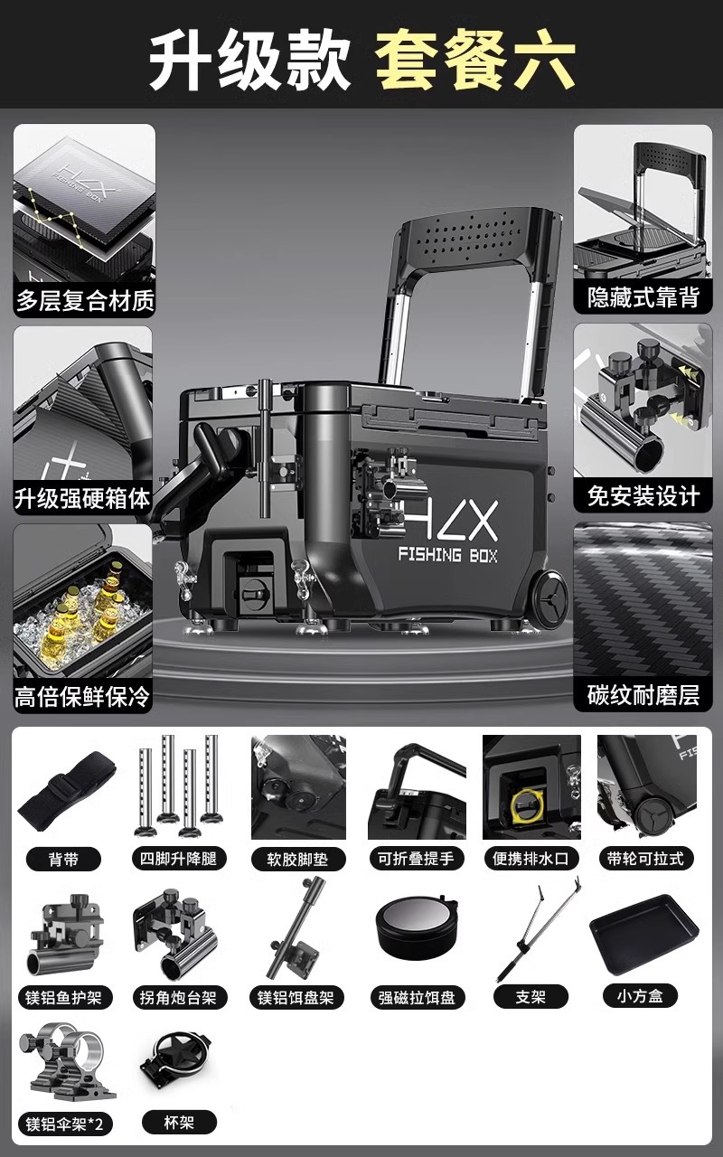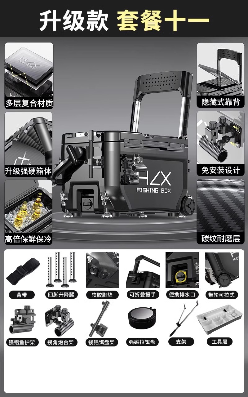 Получите наклейку на рыболовный ящик при оформлении заказа! √Пожизненная гарантия❤Молниеносная доставка❤Модернизированный композитный материал √ [Композитный углерод] черный с колесами (трехсекционный комплект из магниевого алюминия) [Композитный