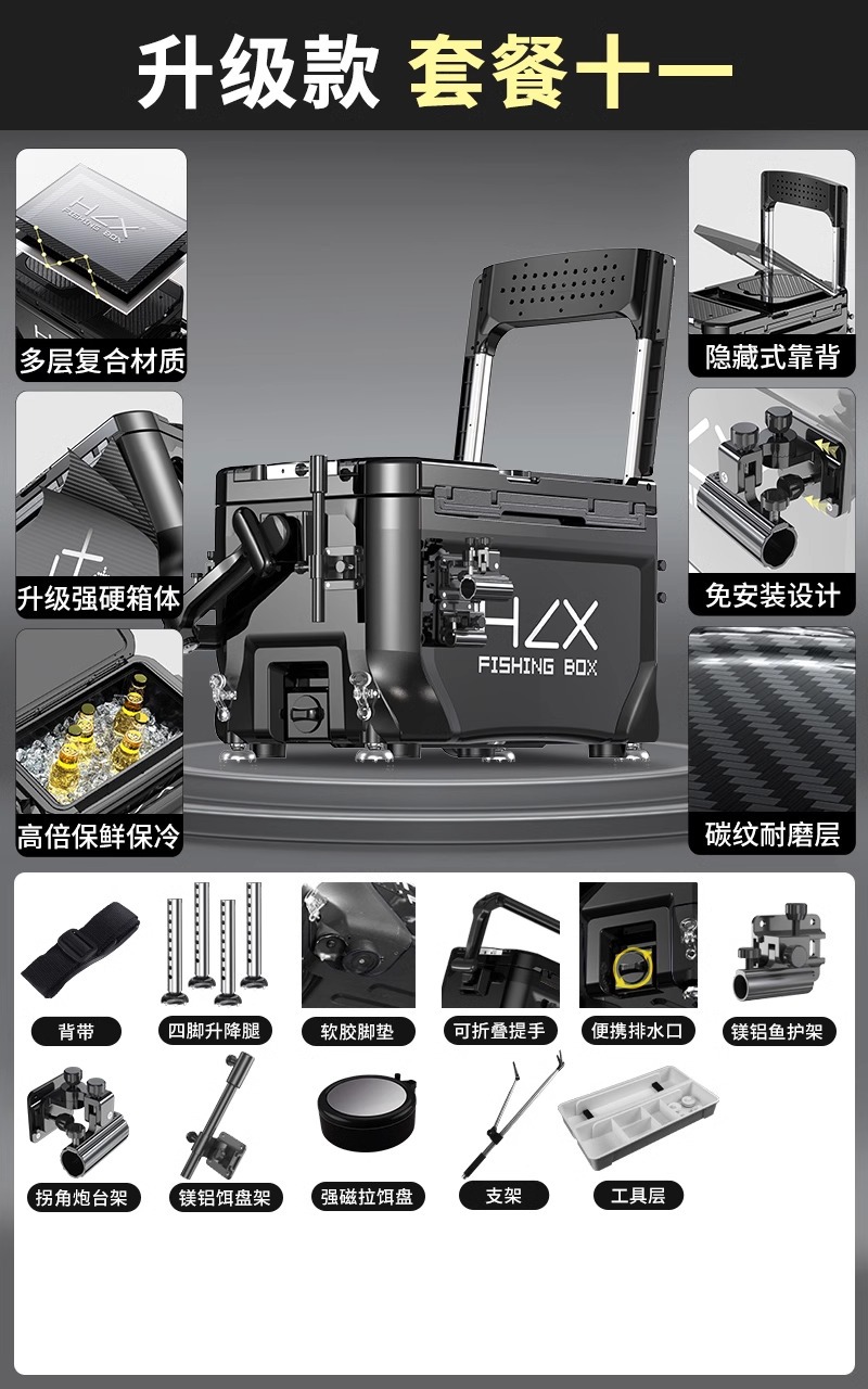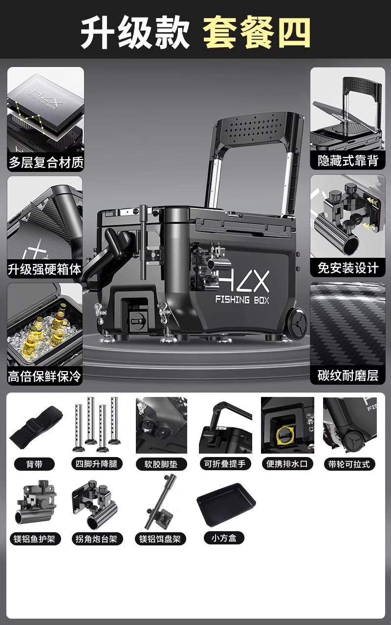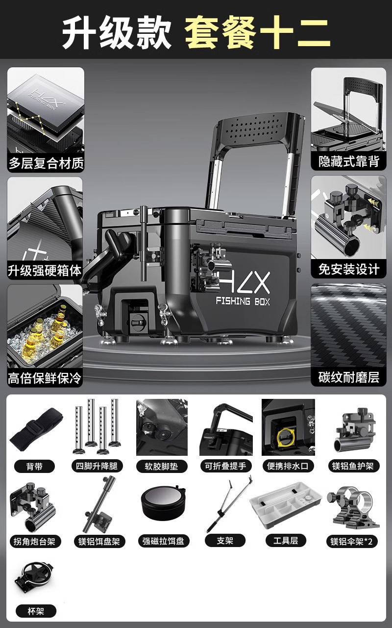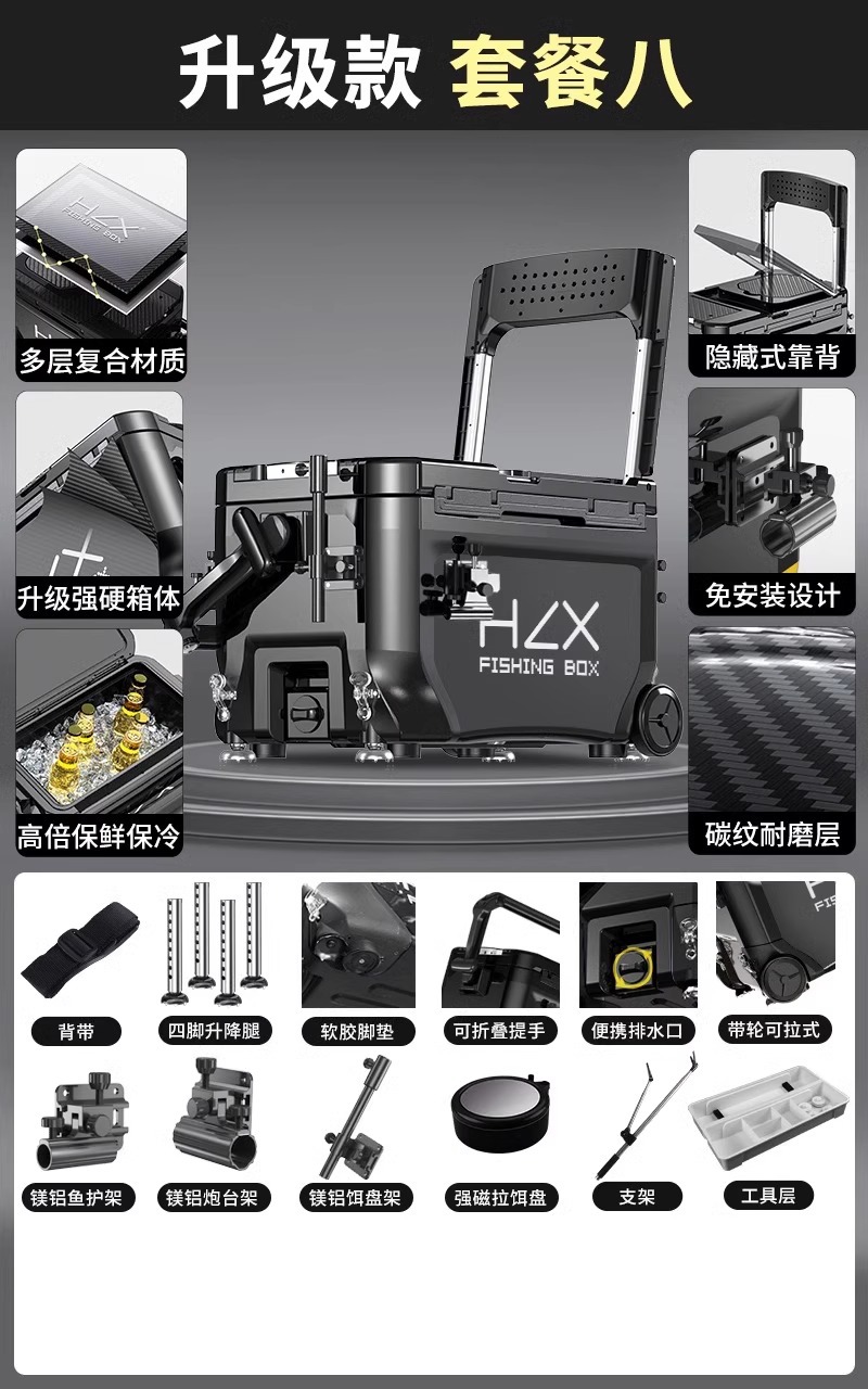 Получите наклейку на рыболовный ящик при оформлении заказа! √Пожизненная гарантия❤Молниеносная доставка❤Модернизированный композитный материал √ [Композитный углерод] черный с колесами (трехсекционный комплект из магниевого алюминия) [Композитный