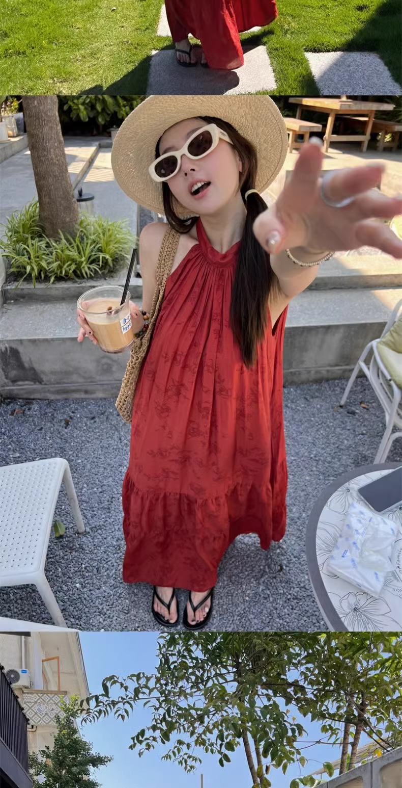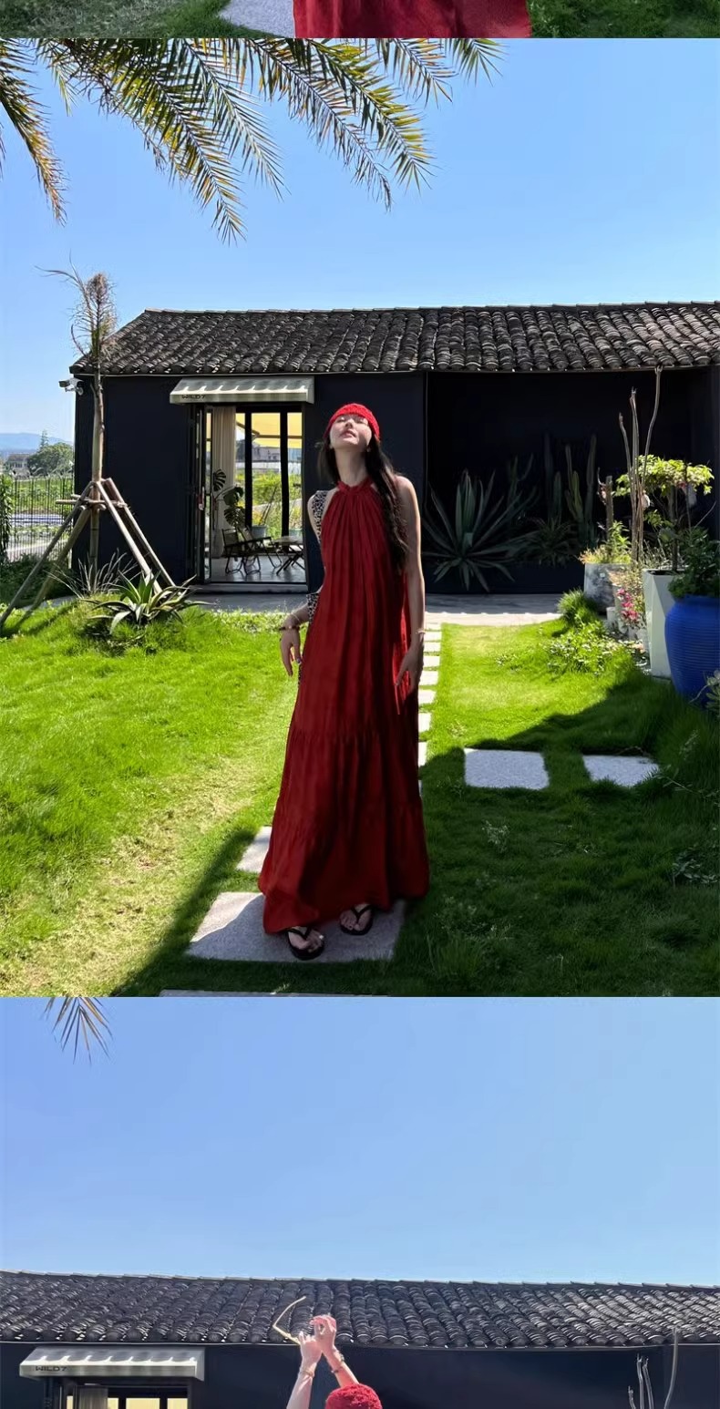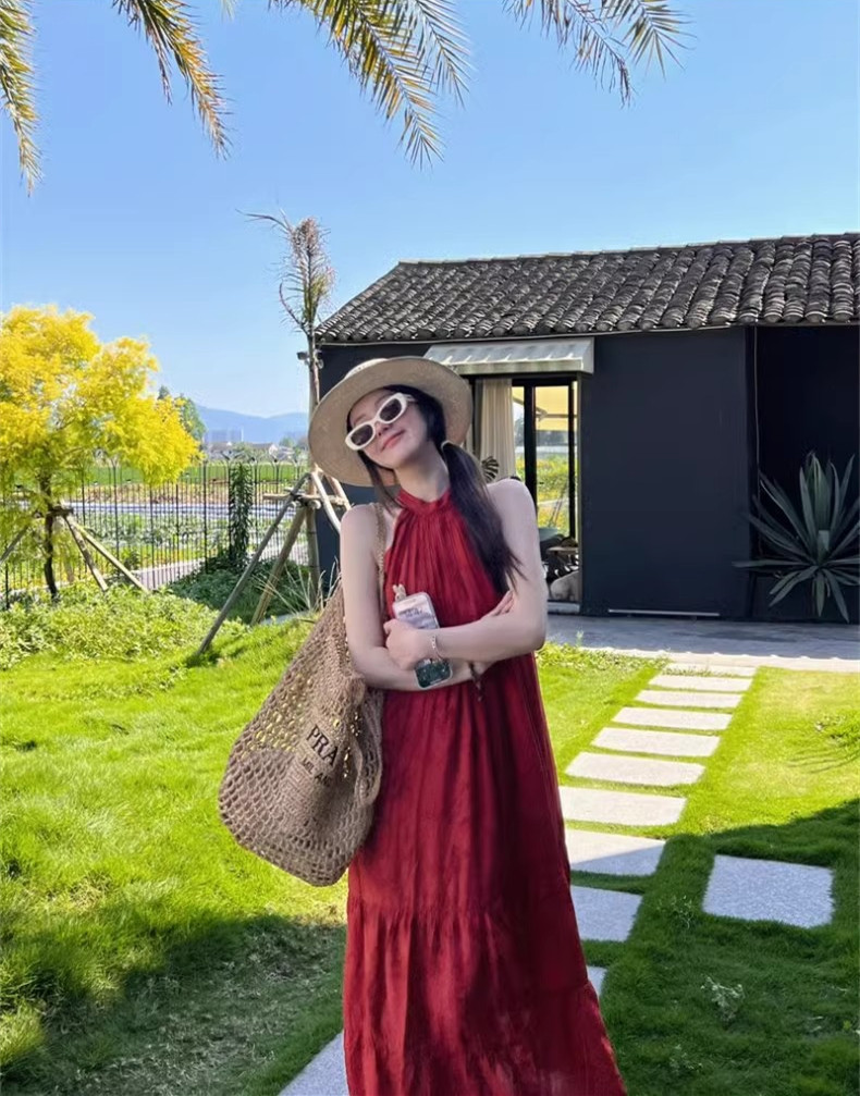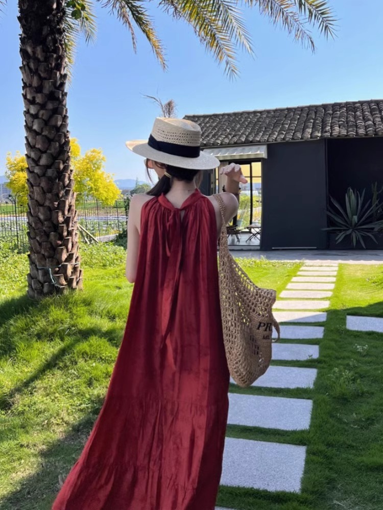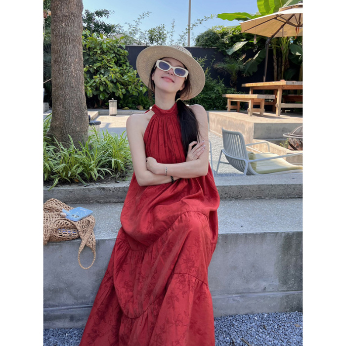 Новый китайский стиль ретро национальный стиль жаккардовый красный навесное платье женский летний пляж праздник темперамент длинная юбка