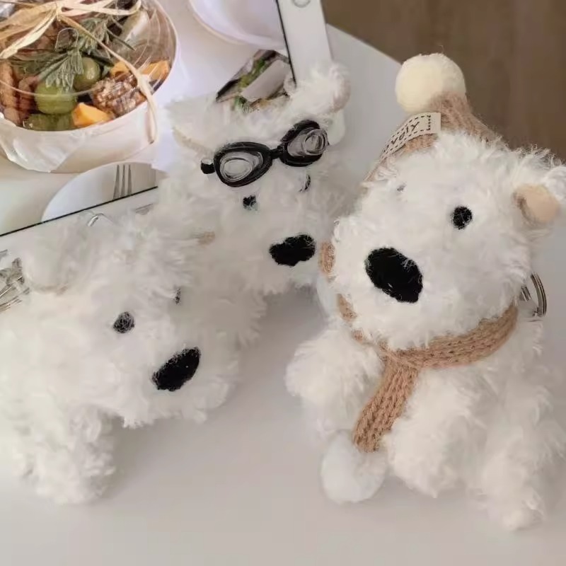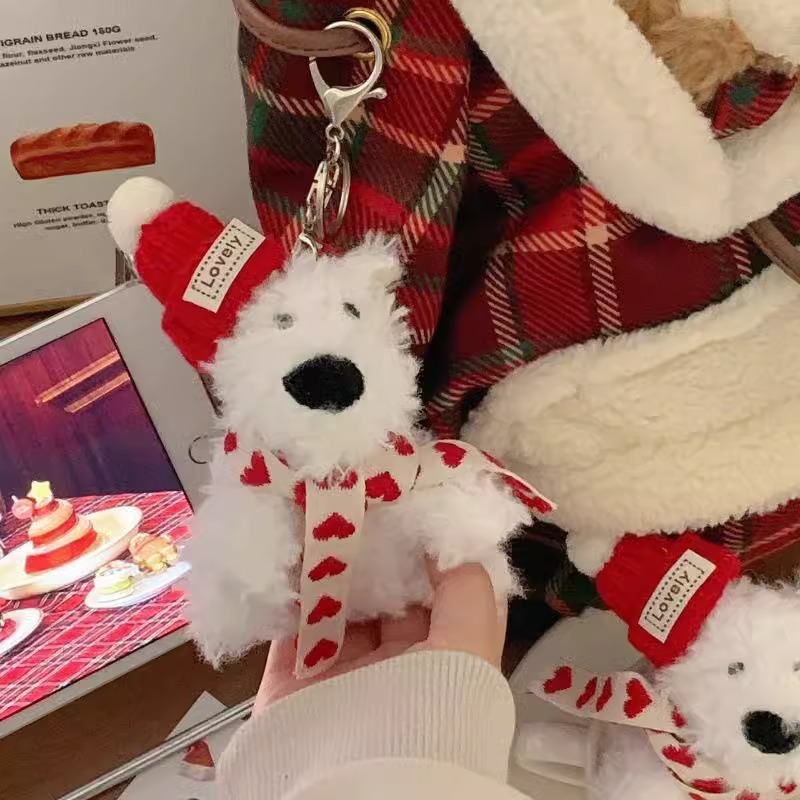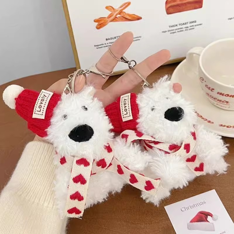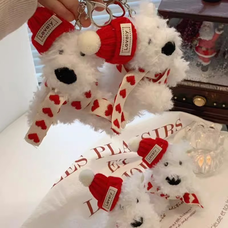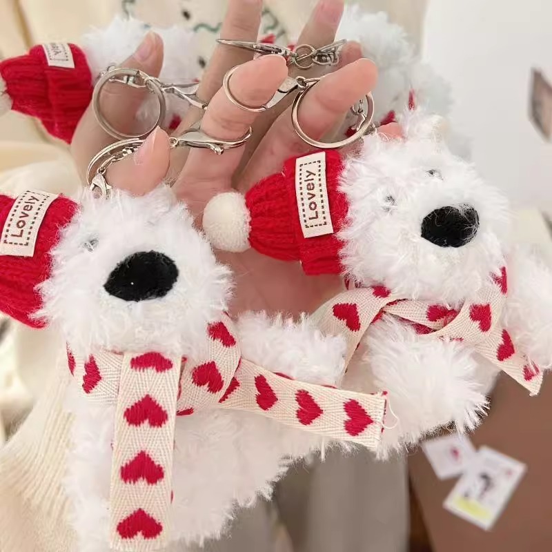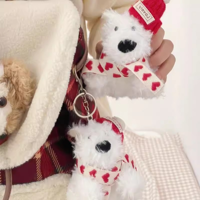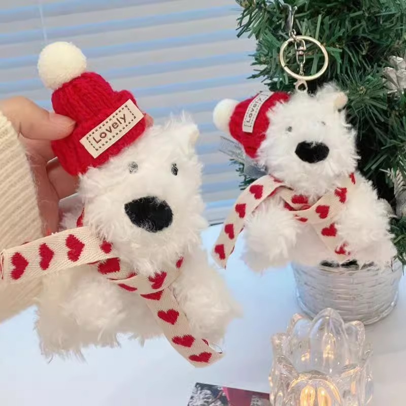 Голая собака West Highland без наряда + брелок; Шапка-шарф цвета хаки West Highland щенок + брелок; Шарф «Любовь» с красной шляпой и алфавитом, щенок West Highland + брелок; Черные очки West Highland Puppy + брелок