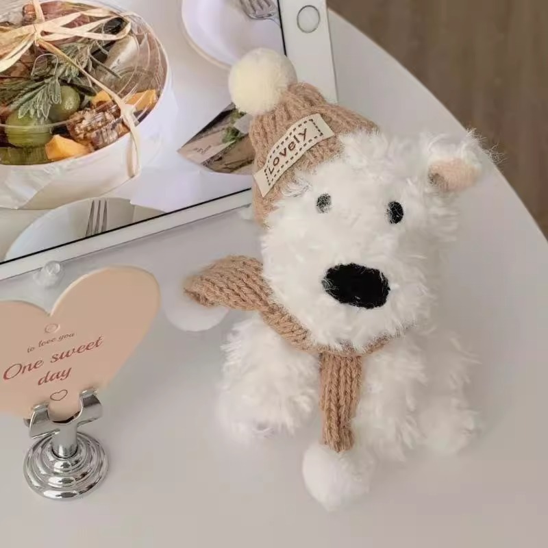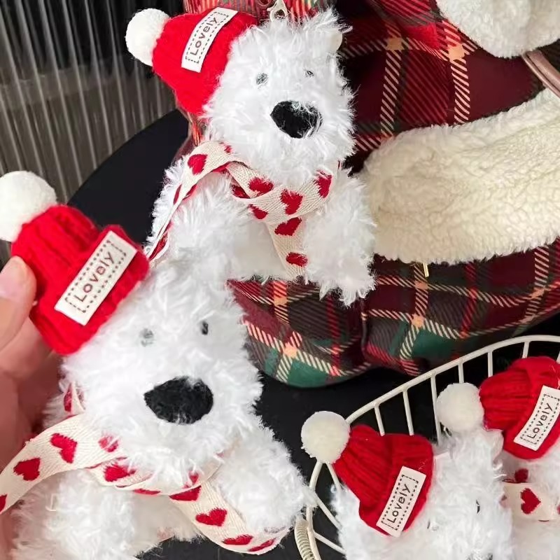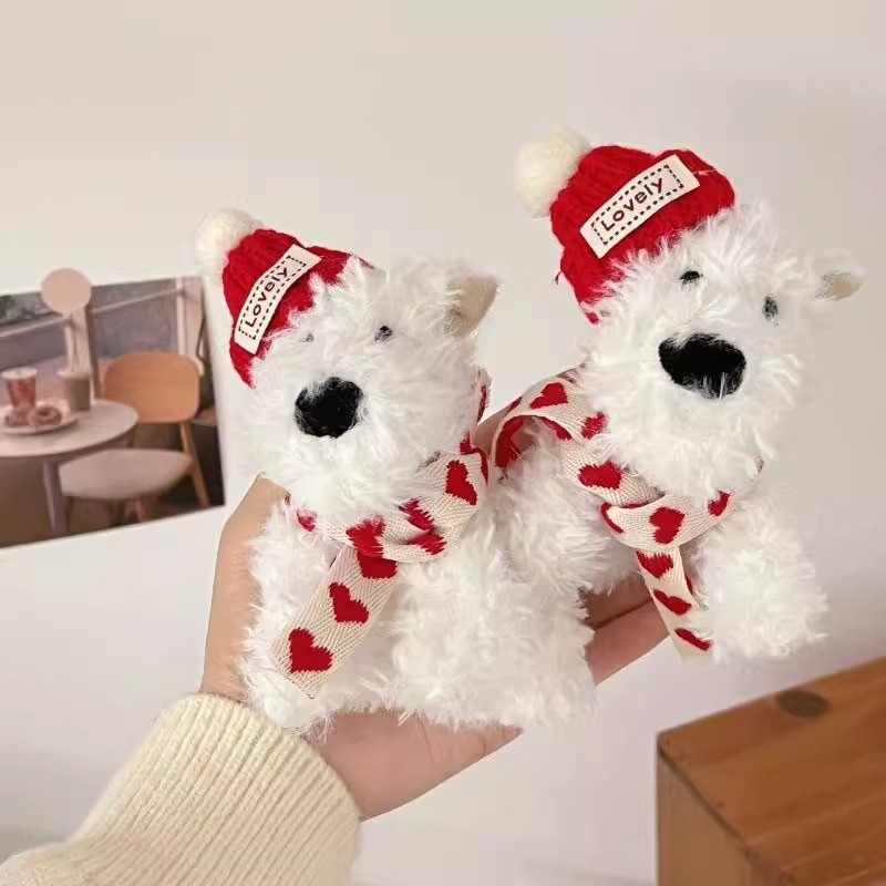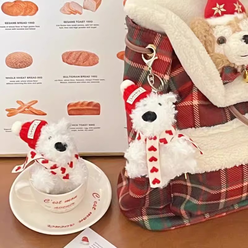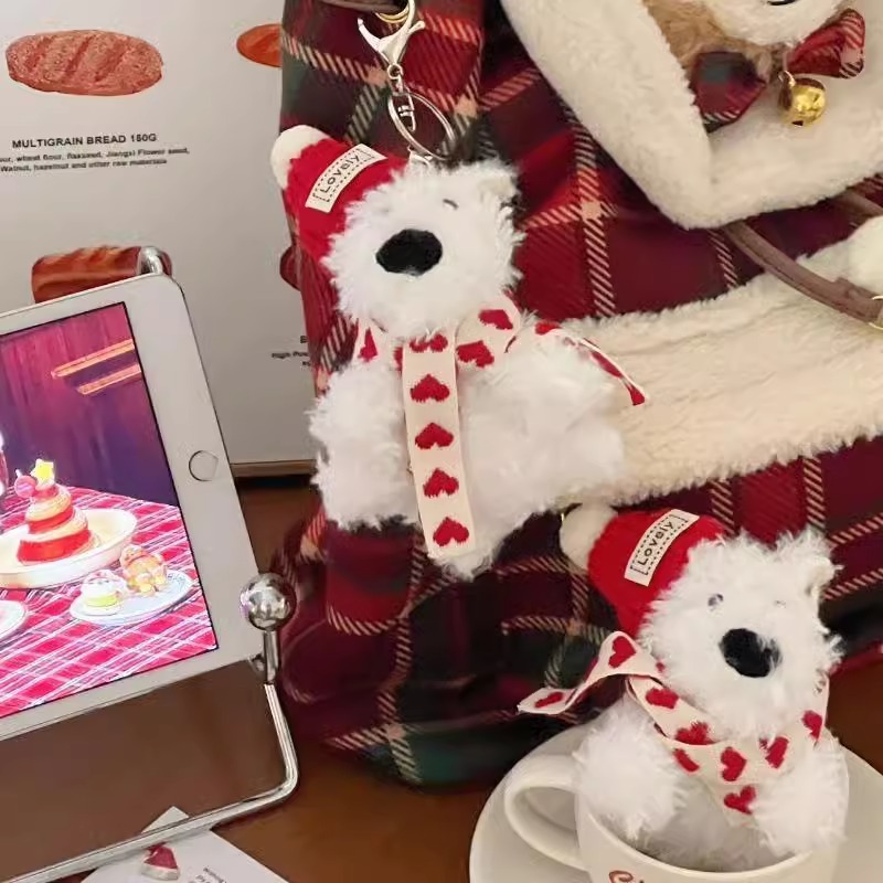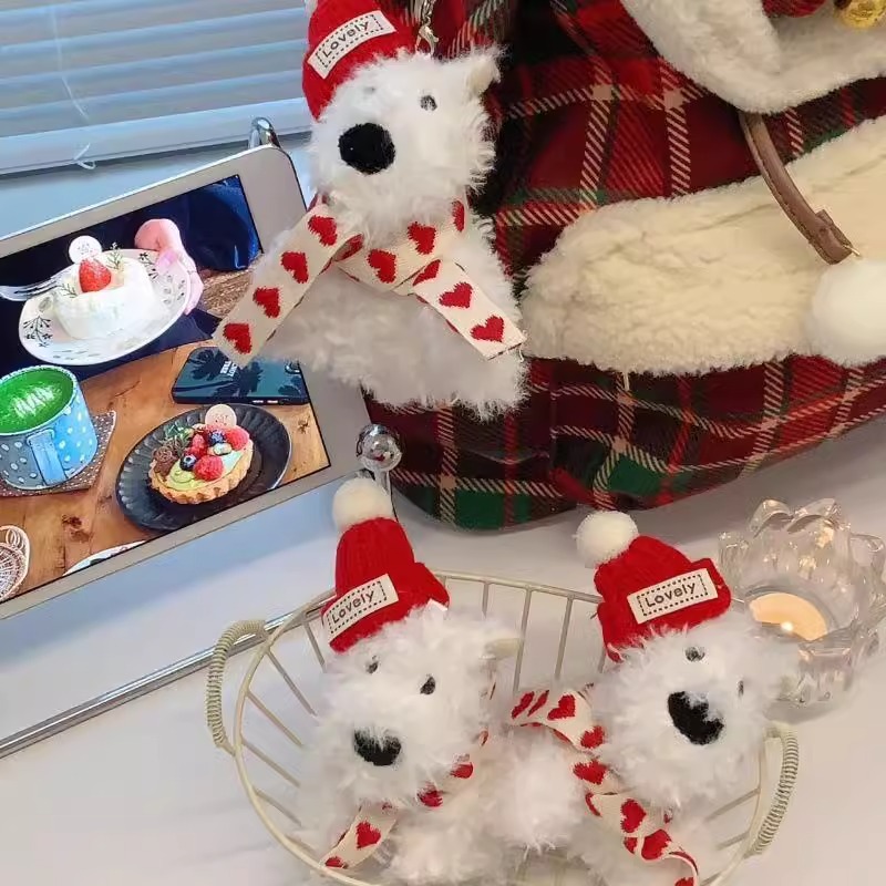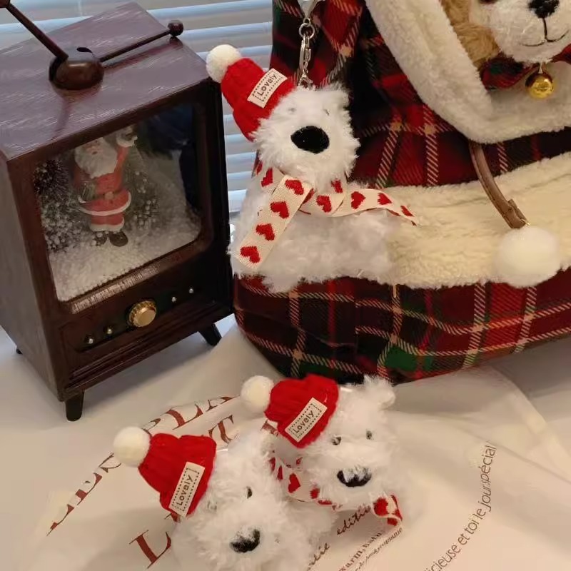 Голая собака West Highland без наряда + брелок; Шапка-шарф цвета хаки West Highland щенок + брелок; Шарф «Любовь» с красной шляпой и алфавитом, щенок West Highland + брелок; Черные очки West Highland Puppy + брелок