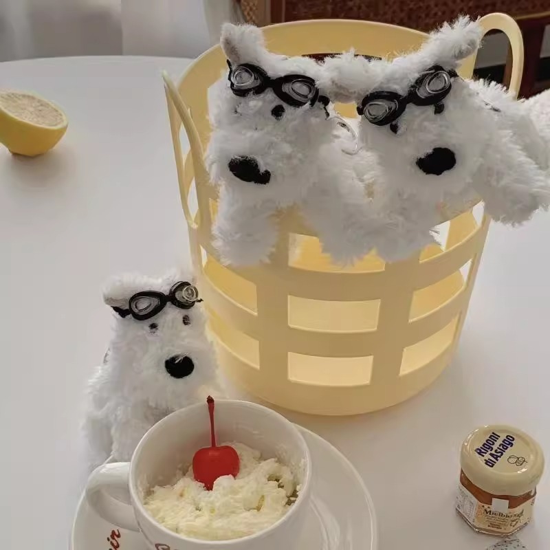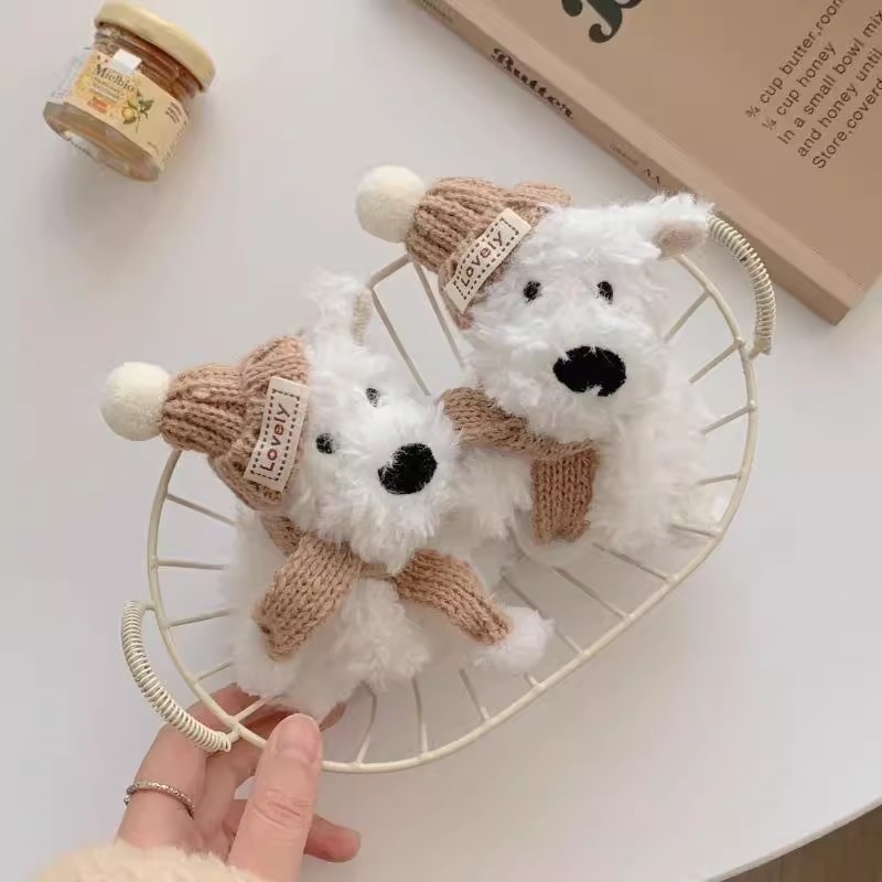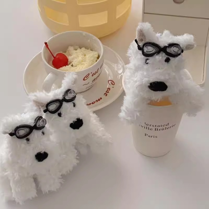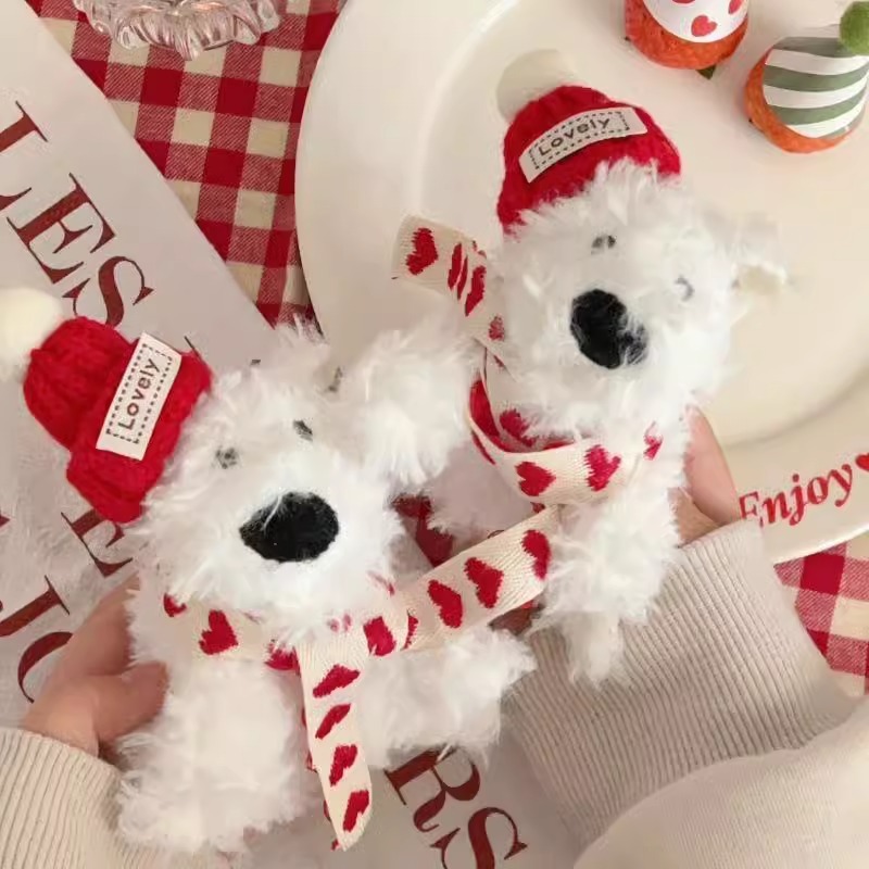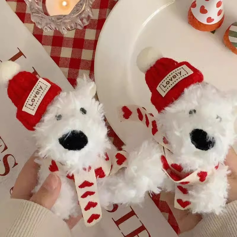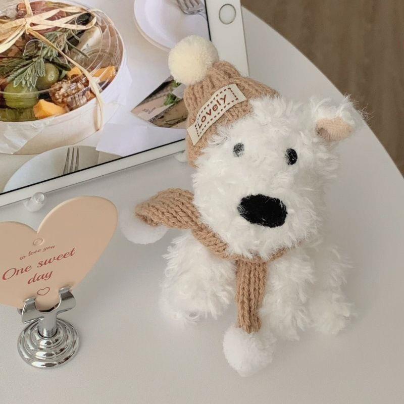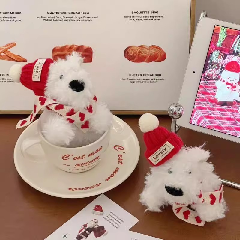 Голая собака West Highland без наряда + брелок; Шапка-шарф цвета хаки West Highland щенок + брелок; Шарф «Любовь» с красной шляпой и алфавитом, щенок West Highland + брелок; Черные очки West Highland Puppy + брелок