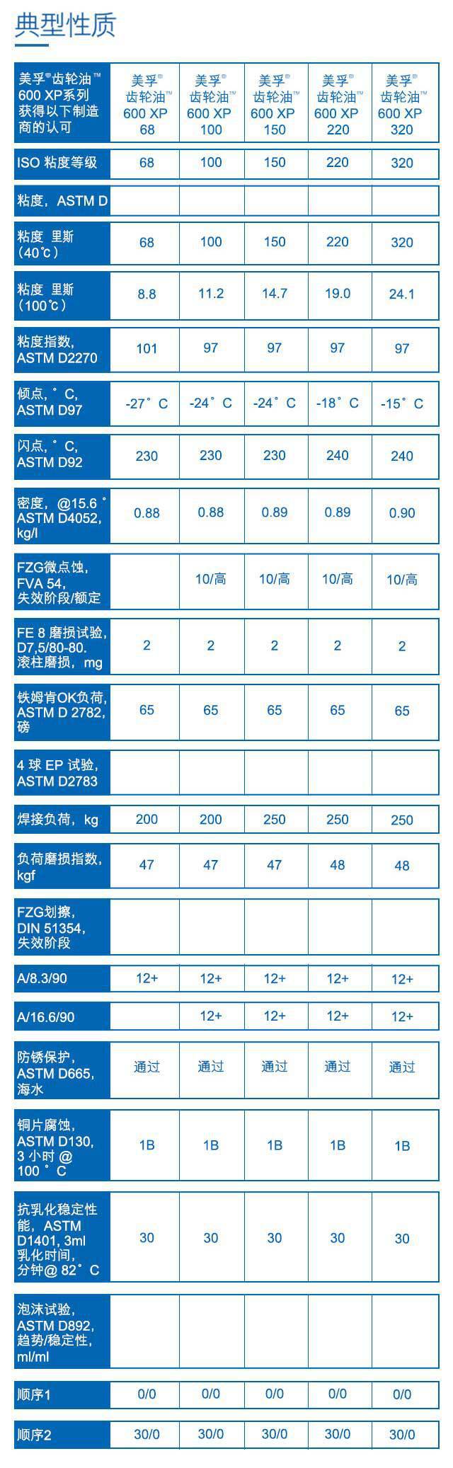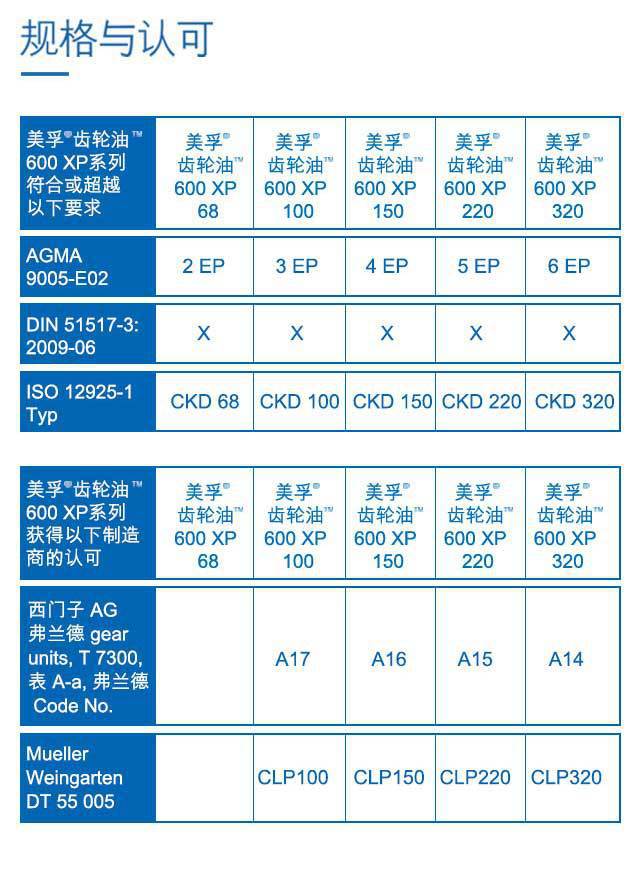 Mobilgear 600 XP 系列 获得以下制造商的认可Mobilgear 600 XP 68Mobilgear 600 XP 100Mobilgear 600 XP 150Mobilgear 600 XP 220Mobilgear 600 XP 320Mobilgear 600 XP 460Mobilgear 600 XP 680