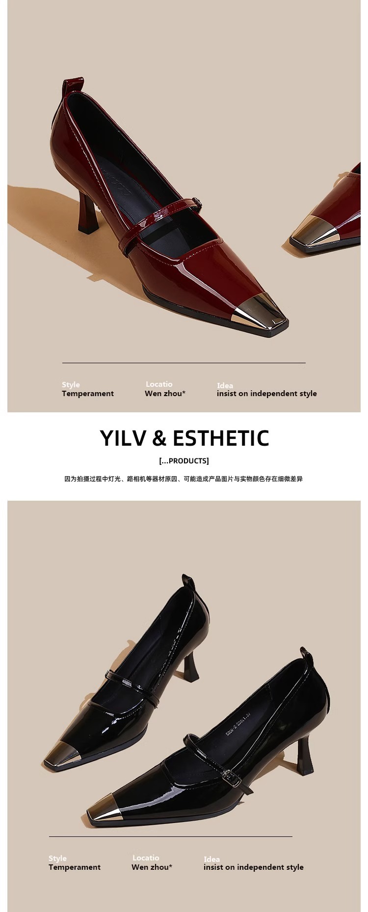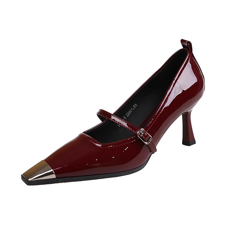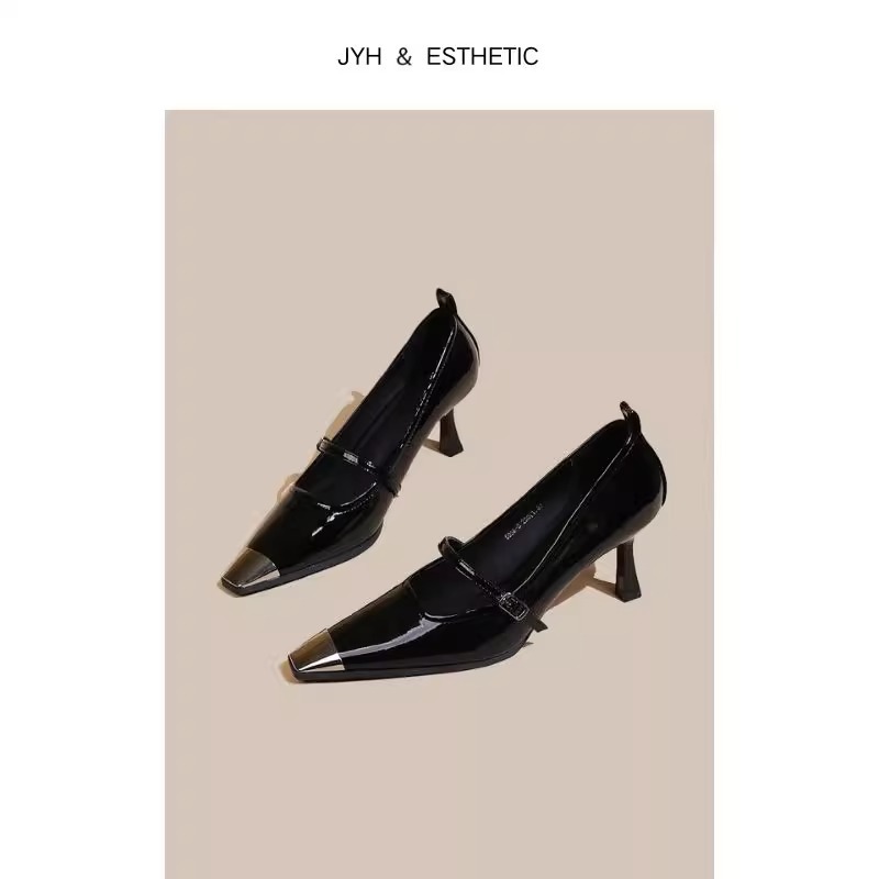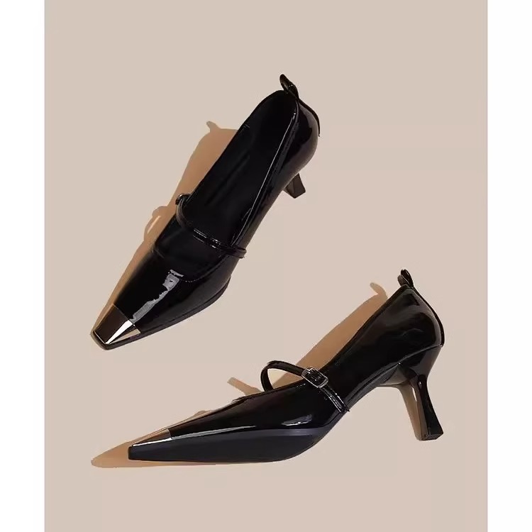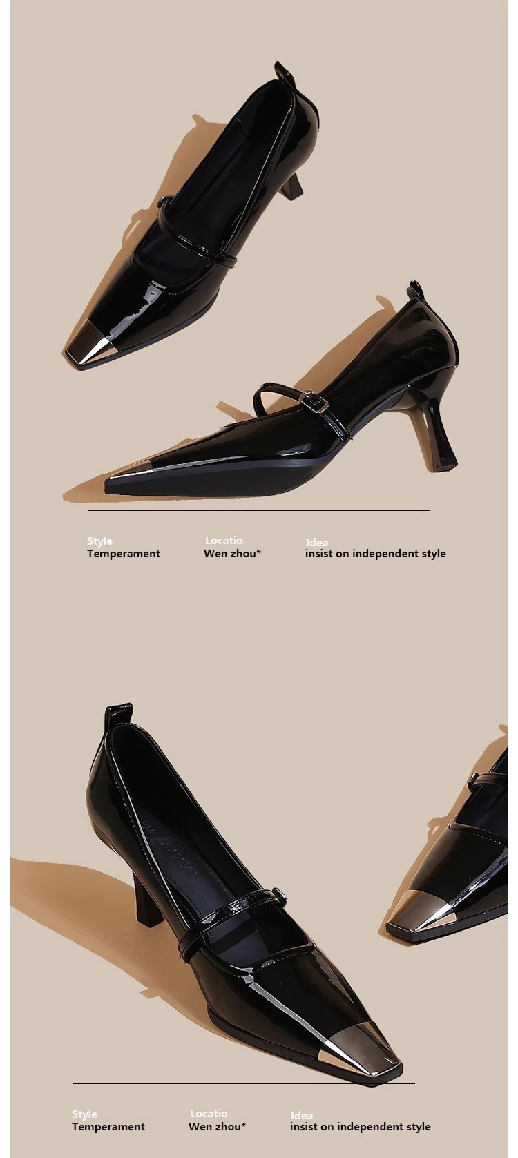 Темпераментные туфли на высоком каблуке женский 2025 весна и осень новый металлический остроконечный каблук с лакированной кожей и мелким ртом